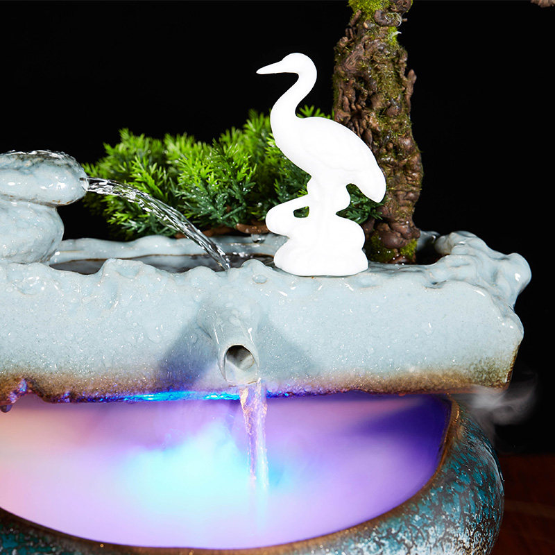 中式景观流水石槽摆件办公室桌面喷泉雾化加湿器创意禅意家居装饰