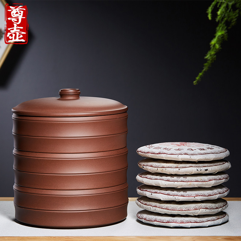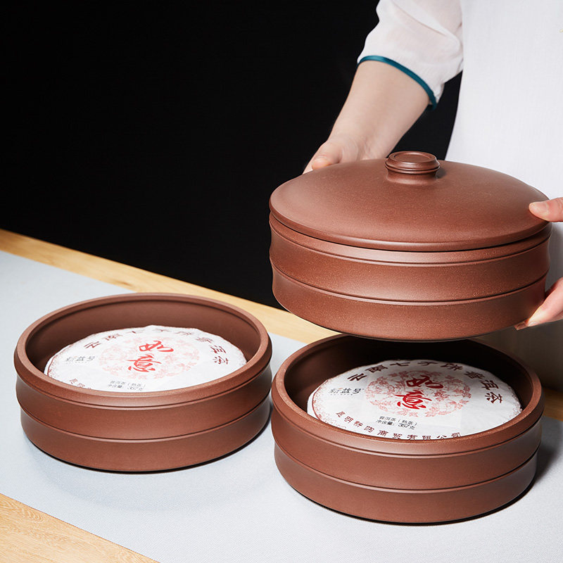 紫砂茶叶罐中式储存茶缸普洱茶饼收纳包装茶盒陶瓷密封醒茶罐