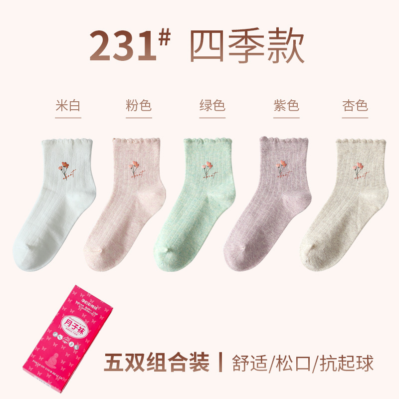 精梳棉月子袜礼盒装宽松口中筒堆堆袜子女孕妇产后四季透气棉袜女