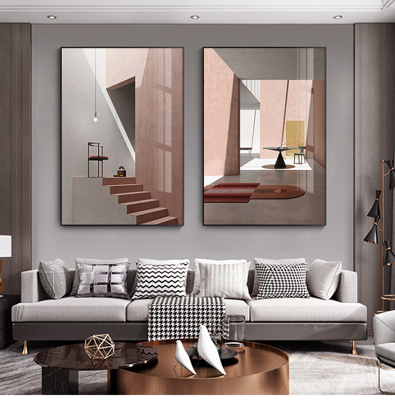 北欧建筑客厅装饰画背景墙玄关卧室挂画样板房酒店办公室晶瓷画