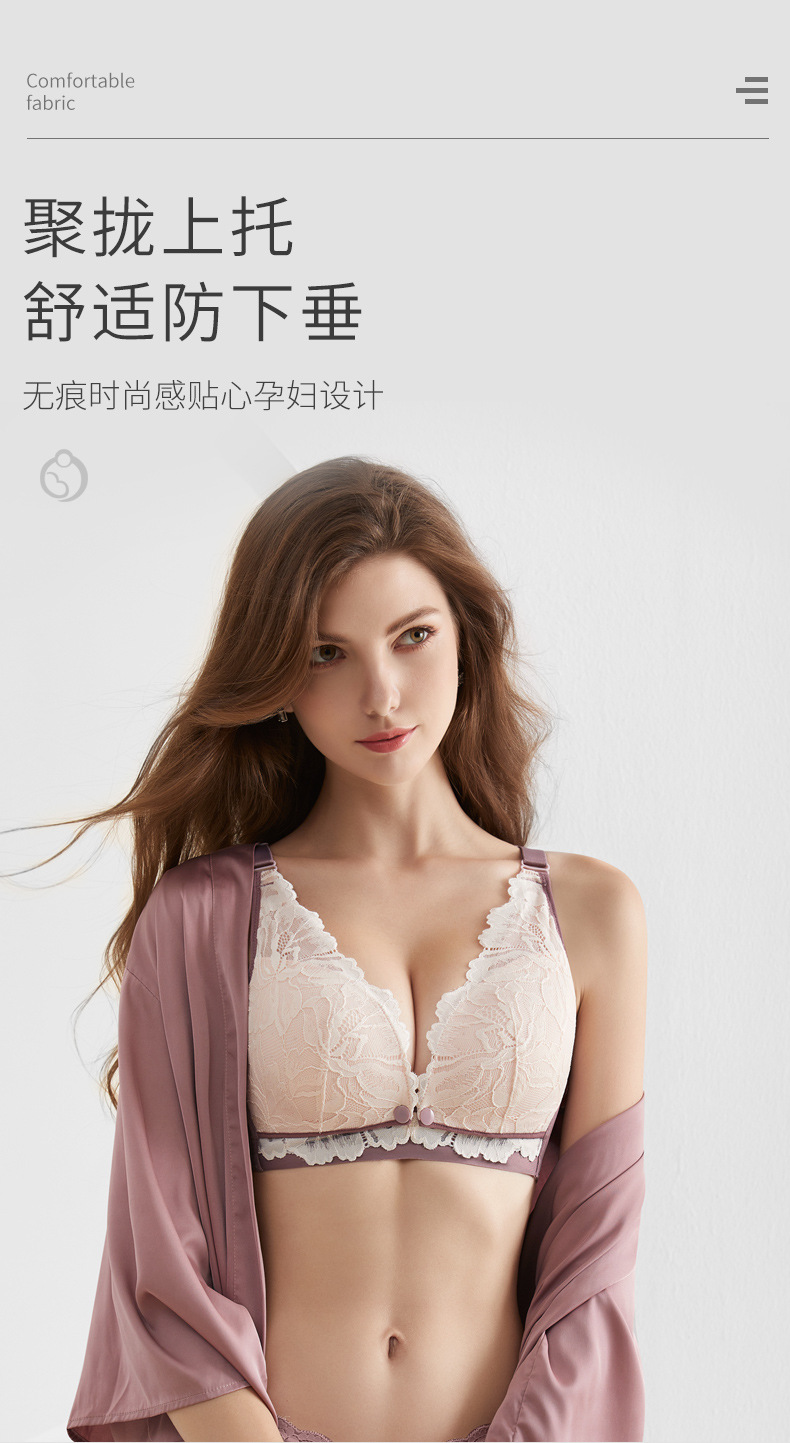 哺乳期孕妇内衣前开薄无痕胸罩纯棉内衬大码喂奶文胸怀孕期后期女