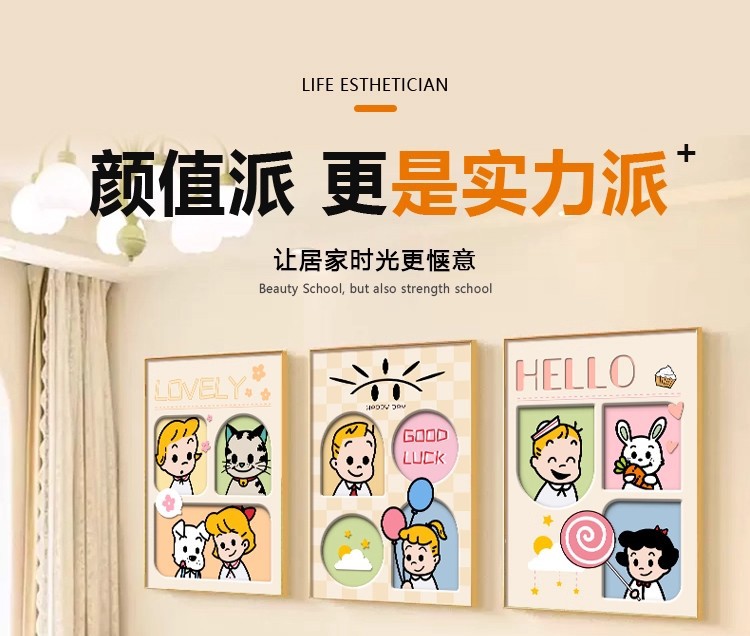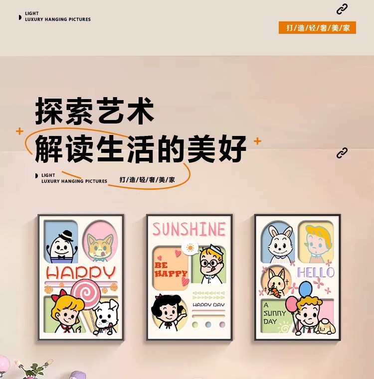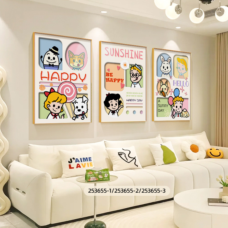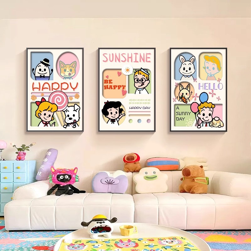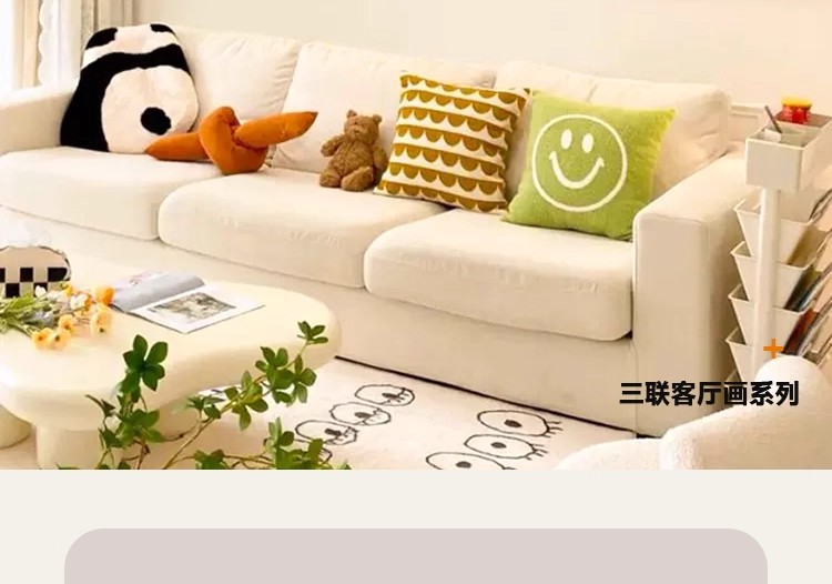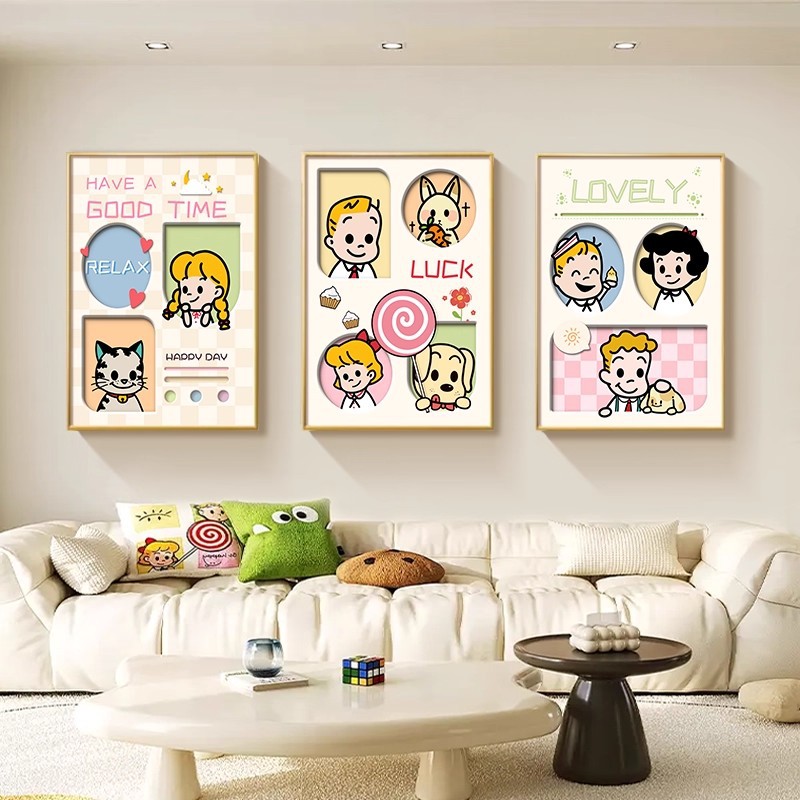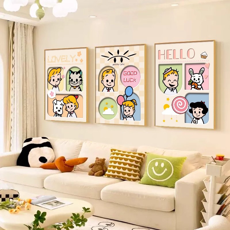 多巴胺客厅装饰画温馨奶油风壁画高级感创意沙发背景墙挂画三联画