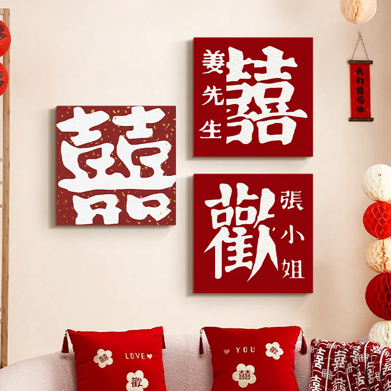 结婚囍字喜庆客厅装饰画送新人礼物备婚房布置新婚装饰床头挂画