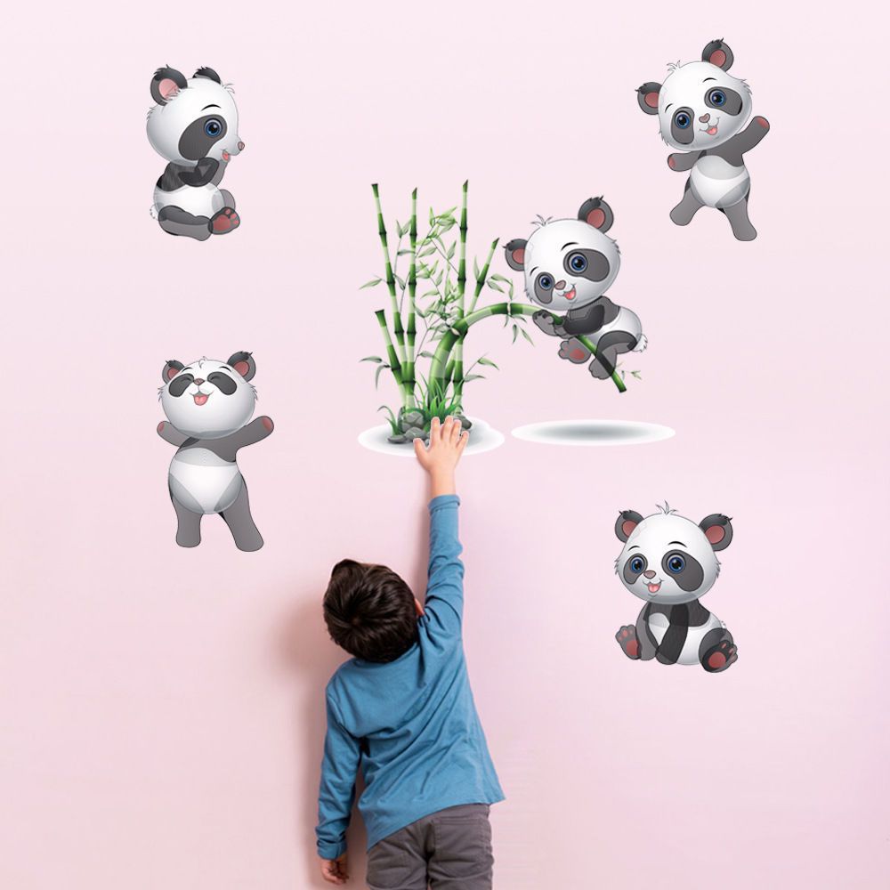3D立体墙贴纸风竹子熊猫墙贴画客厅卧室背景墙面翻新装饰壁纸自粘