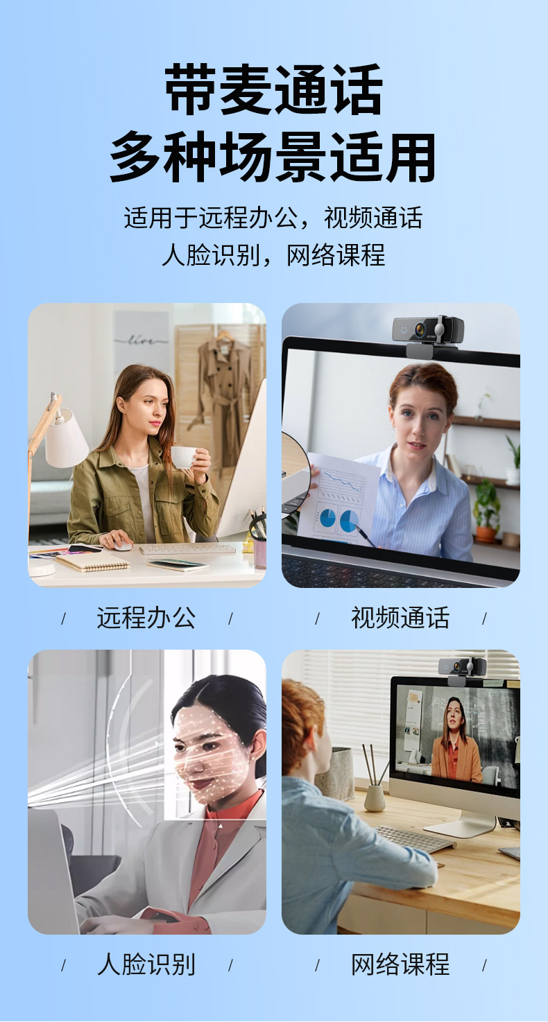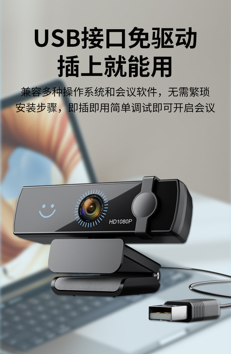 电脑摄像头高清网课教学直播会议麦克风免驱动USB电脑摄像头
