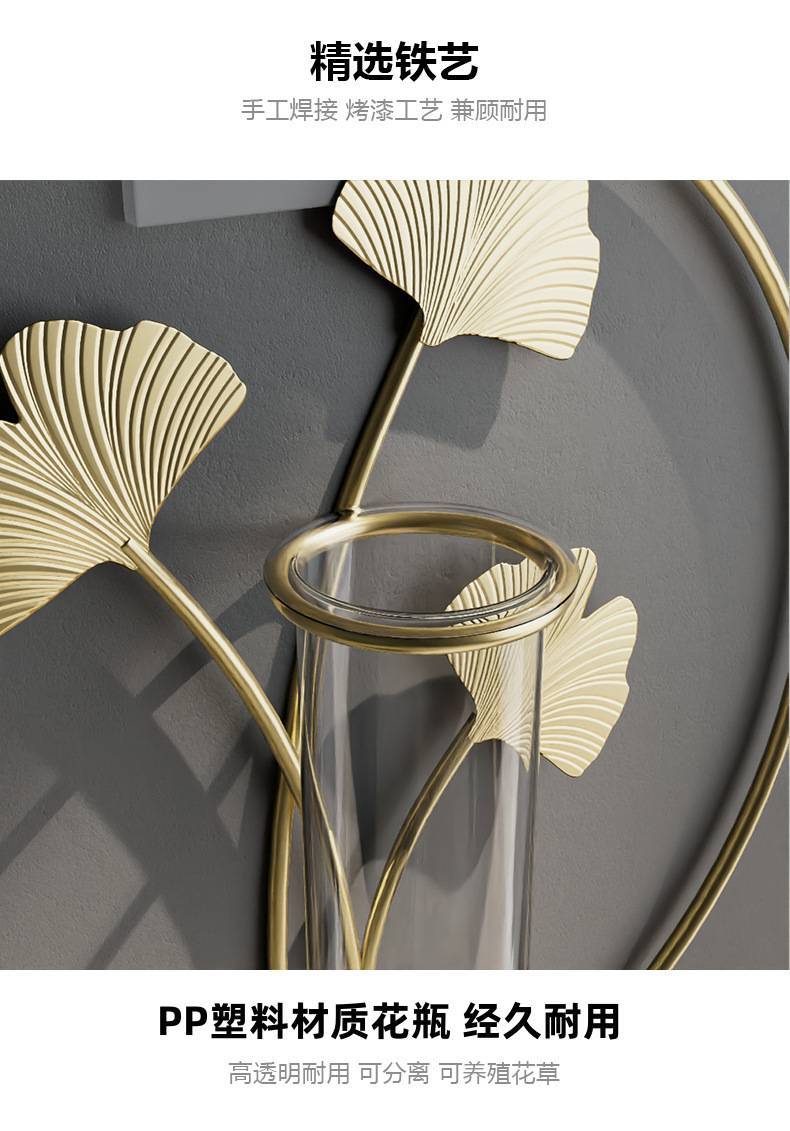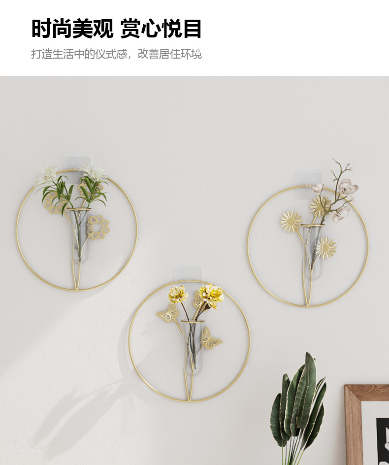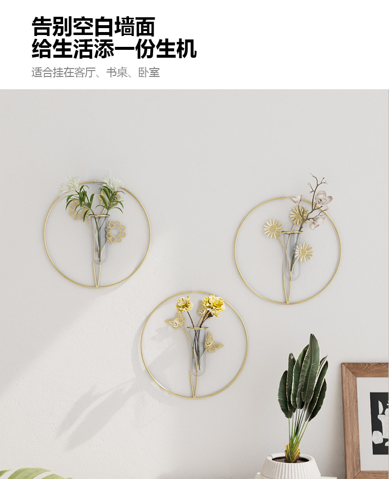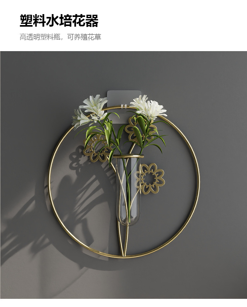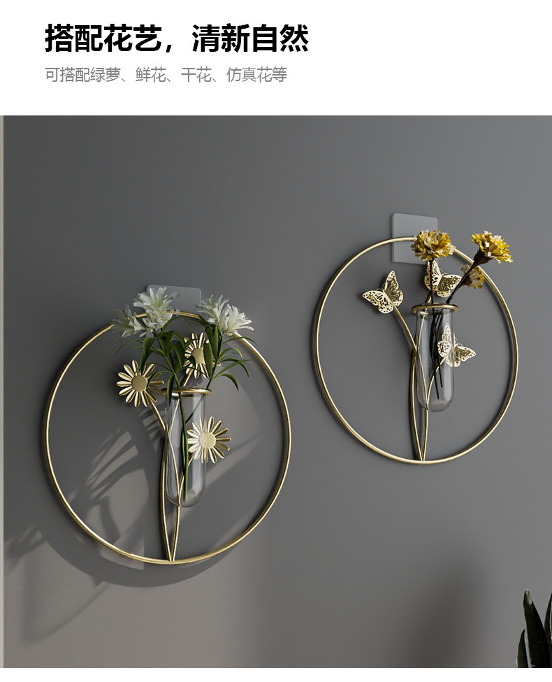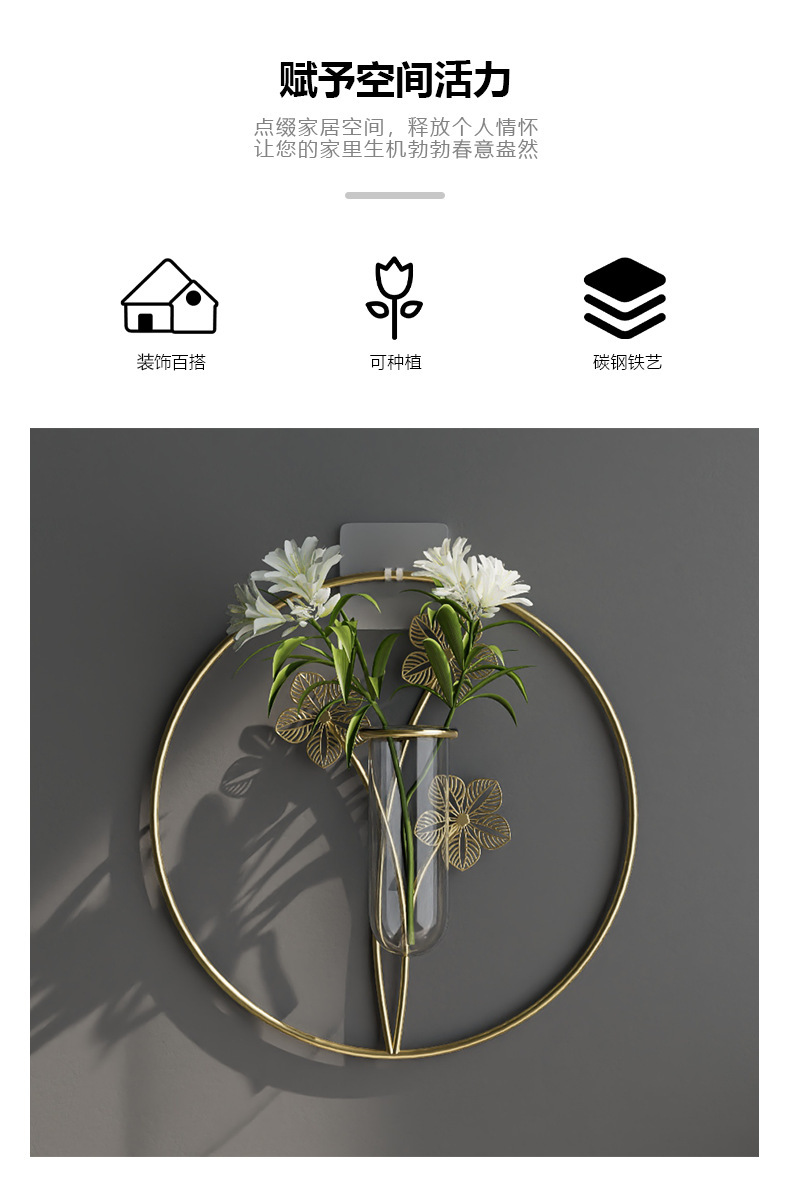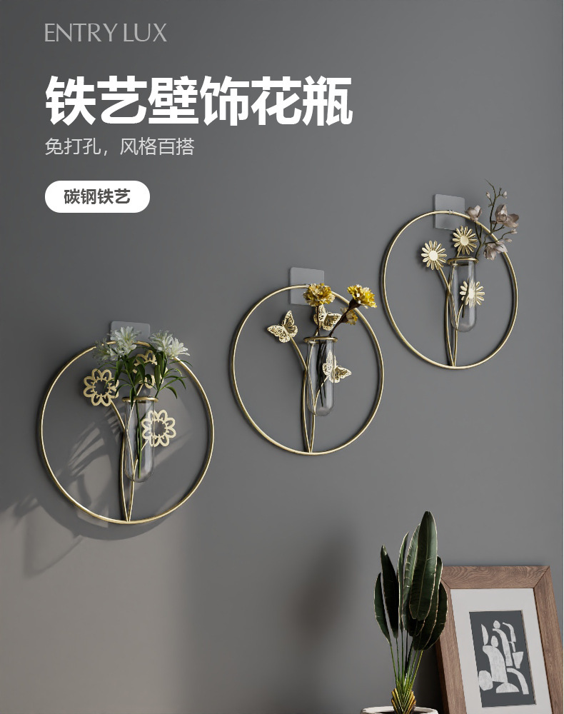 轻奢客厅装饰品高级壁饰免打孔墙面创意家居铁艺花瓶挂件装饰点缀