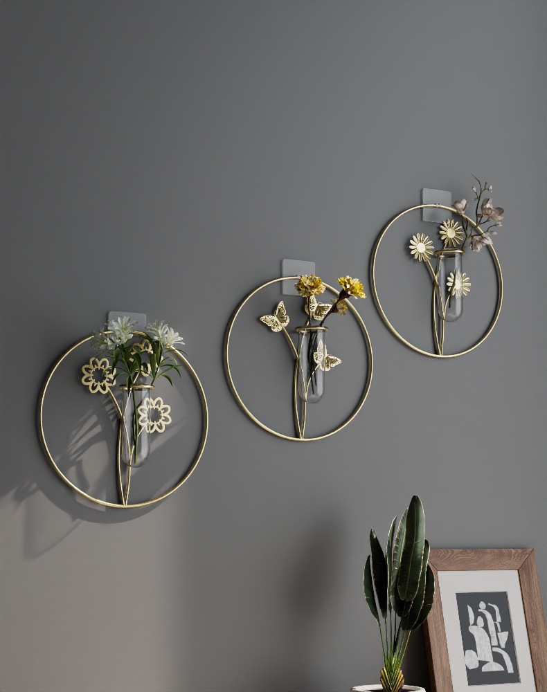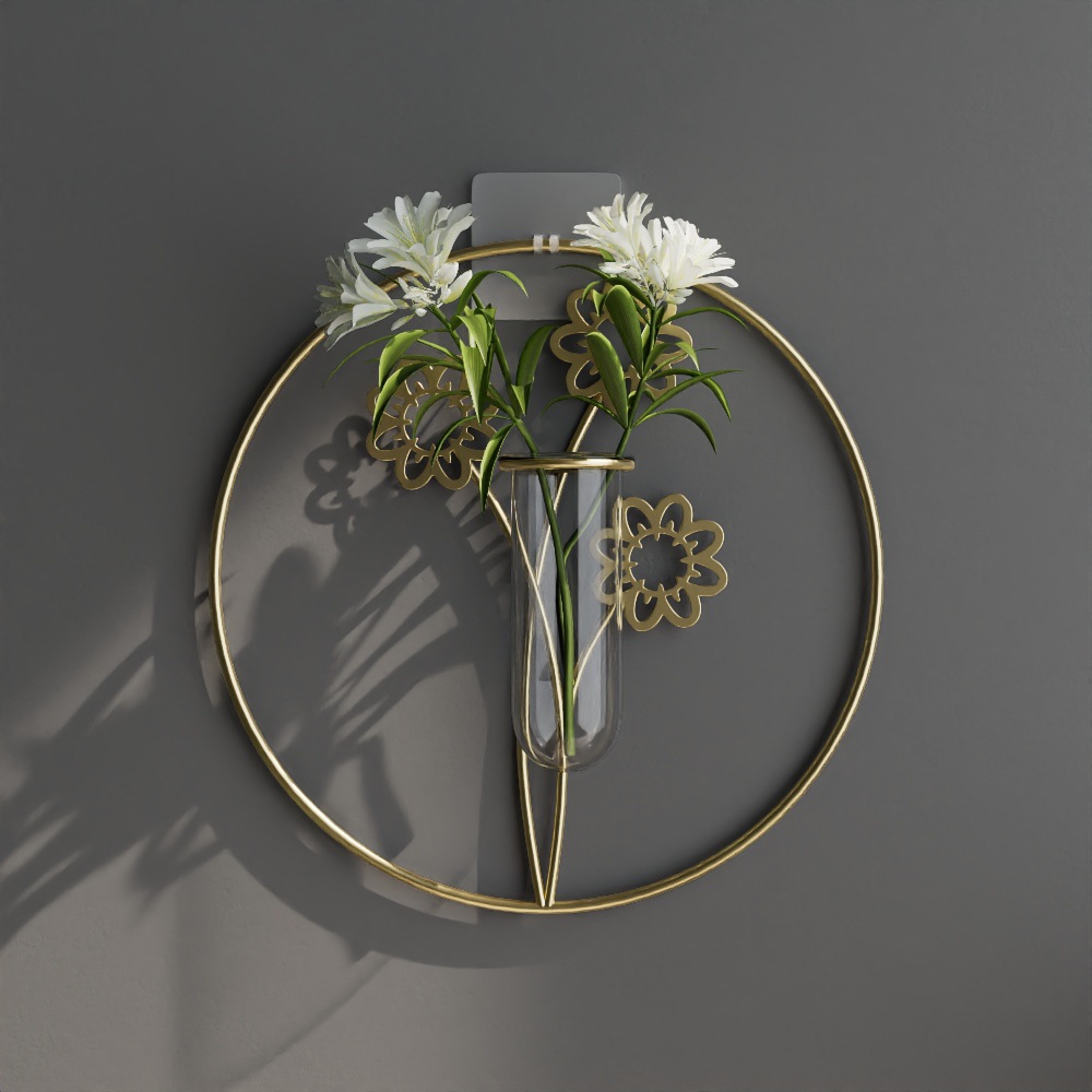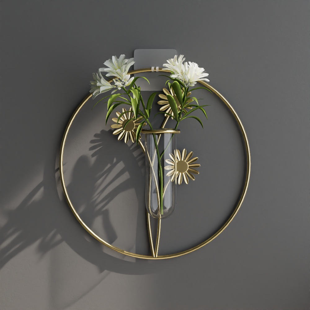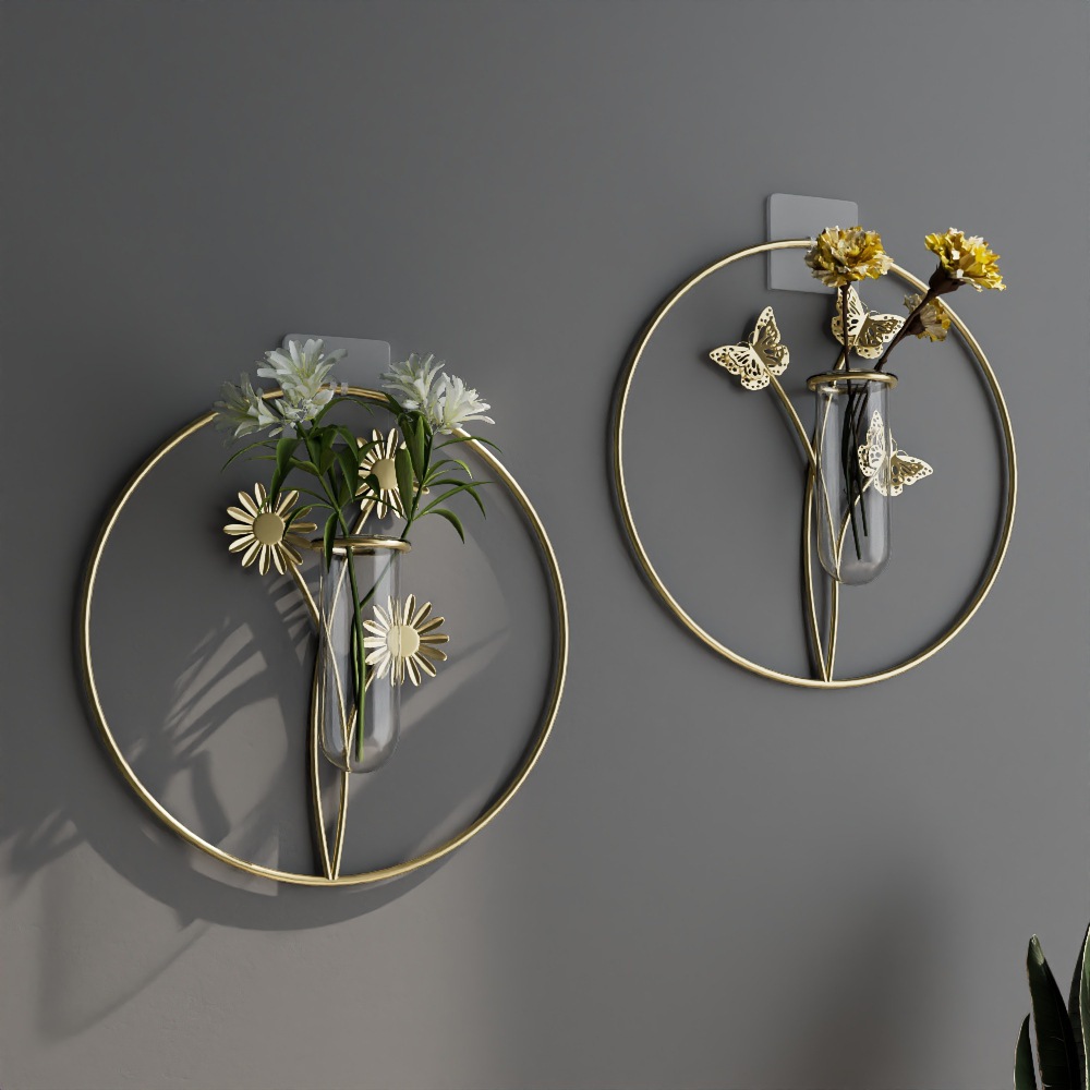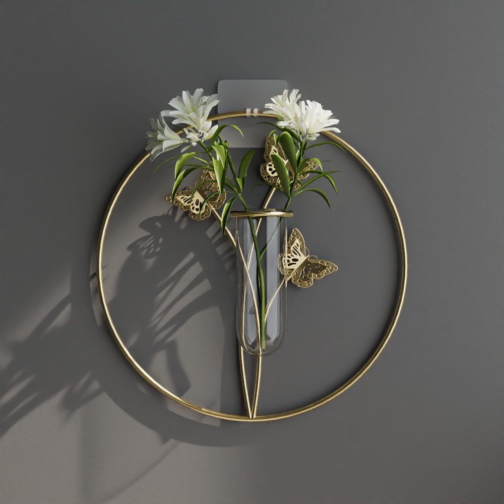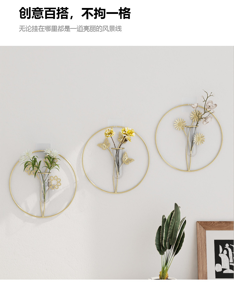 轻奢客厅装饰品高级壁饰免打孔墙面创意家居铁艺花瓶挂件装饰点缀