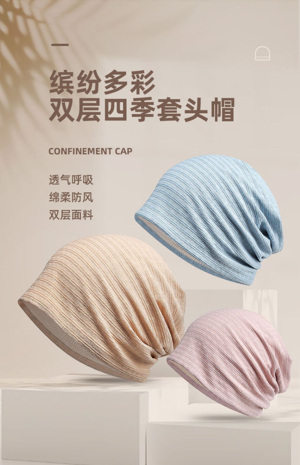 春夏季薄款包头帽子女透气光头术后防风头巾帽四季女款堆堆月子帽