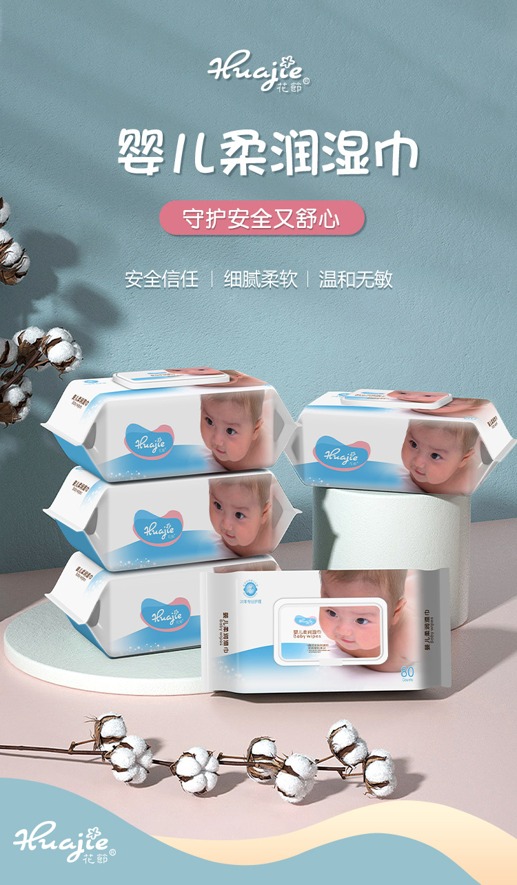 加厚婴儿湿纸巾宝宝手口湿纸巾屁屁新生儿童大包带盖湿巾80抽3包