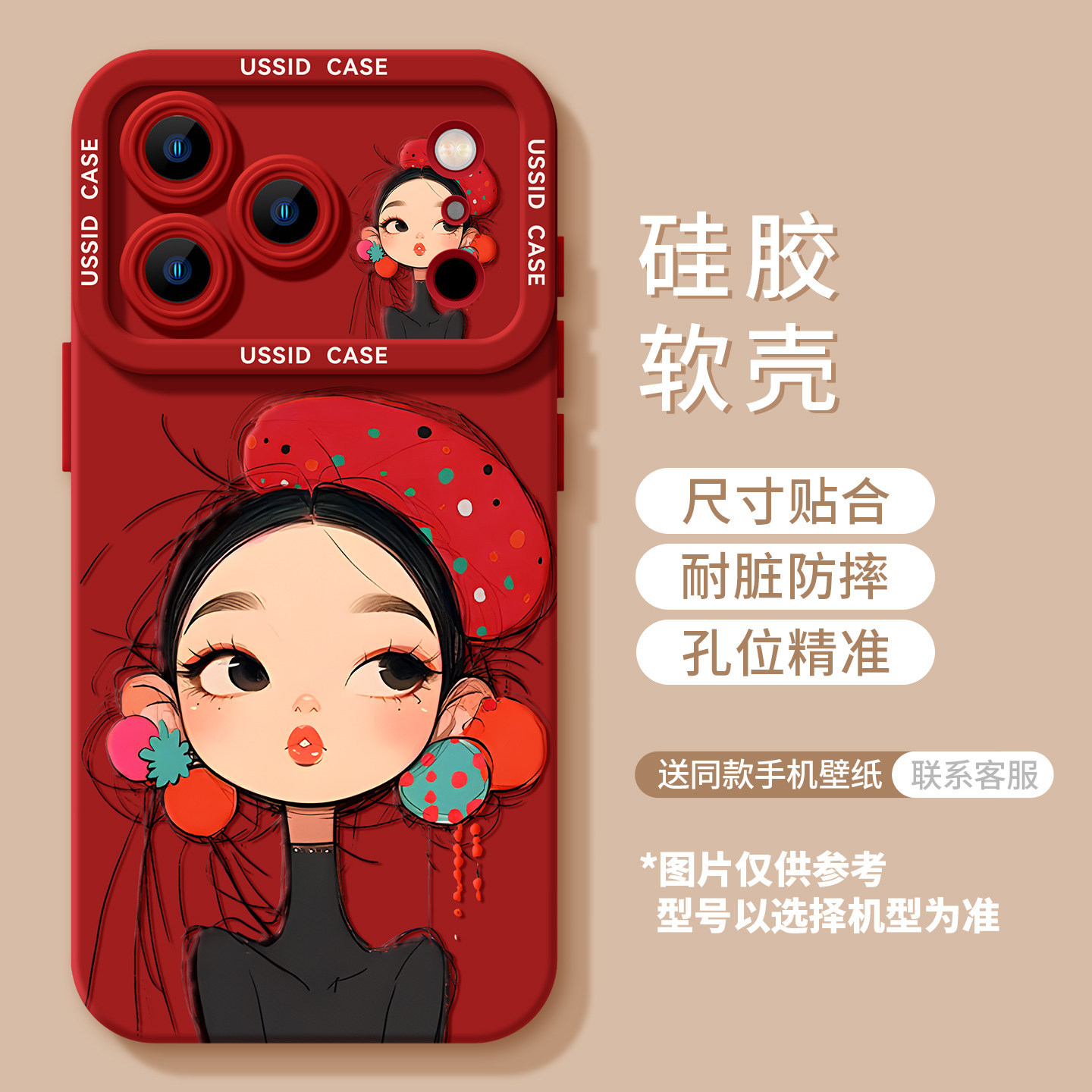 - 【贝雷帽女孩-红】硅胶软壳