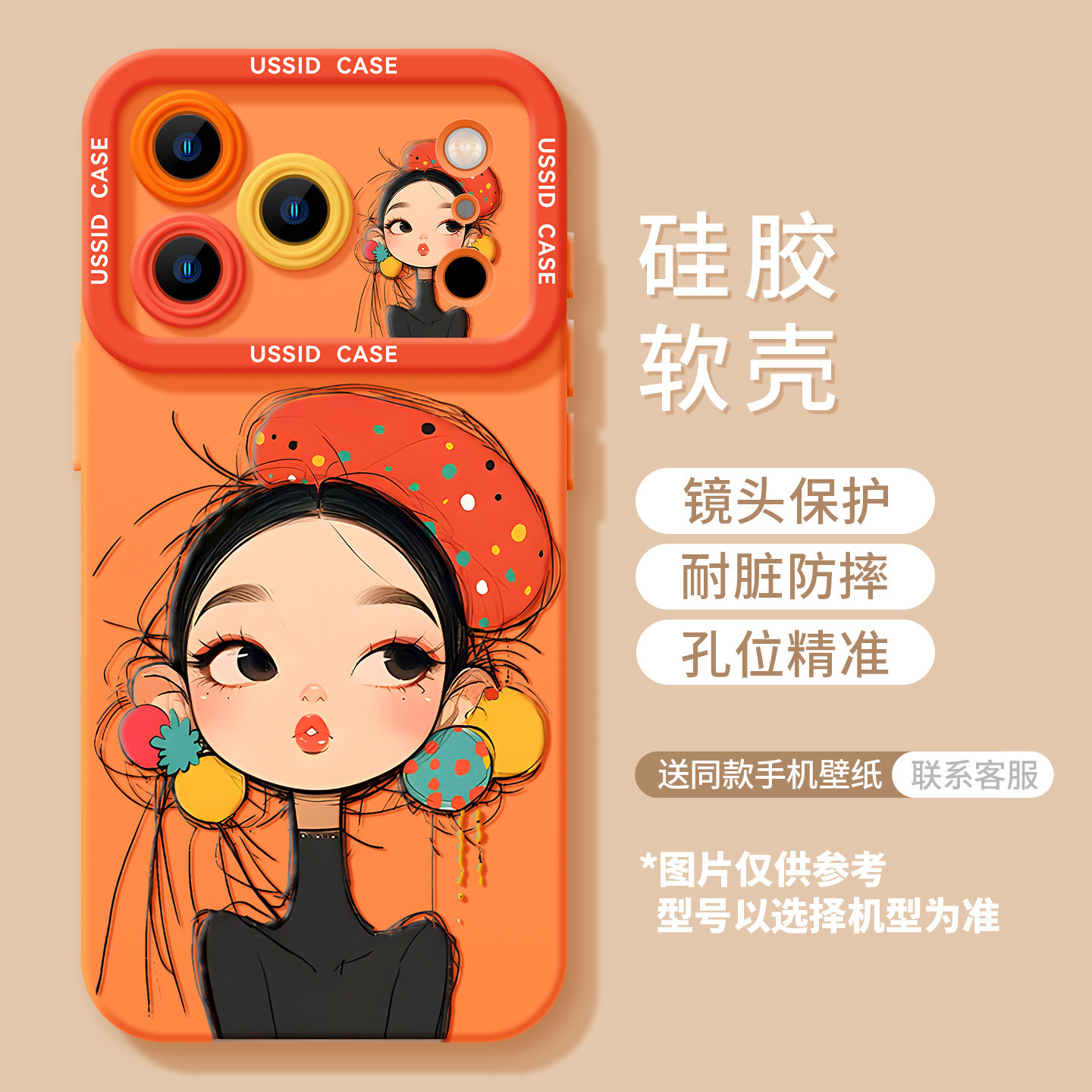 - 【贝雷帽女孩-橙】硅胶软壳