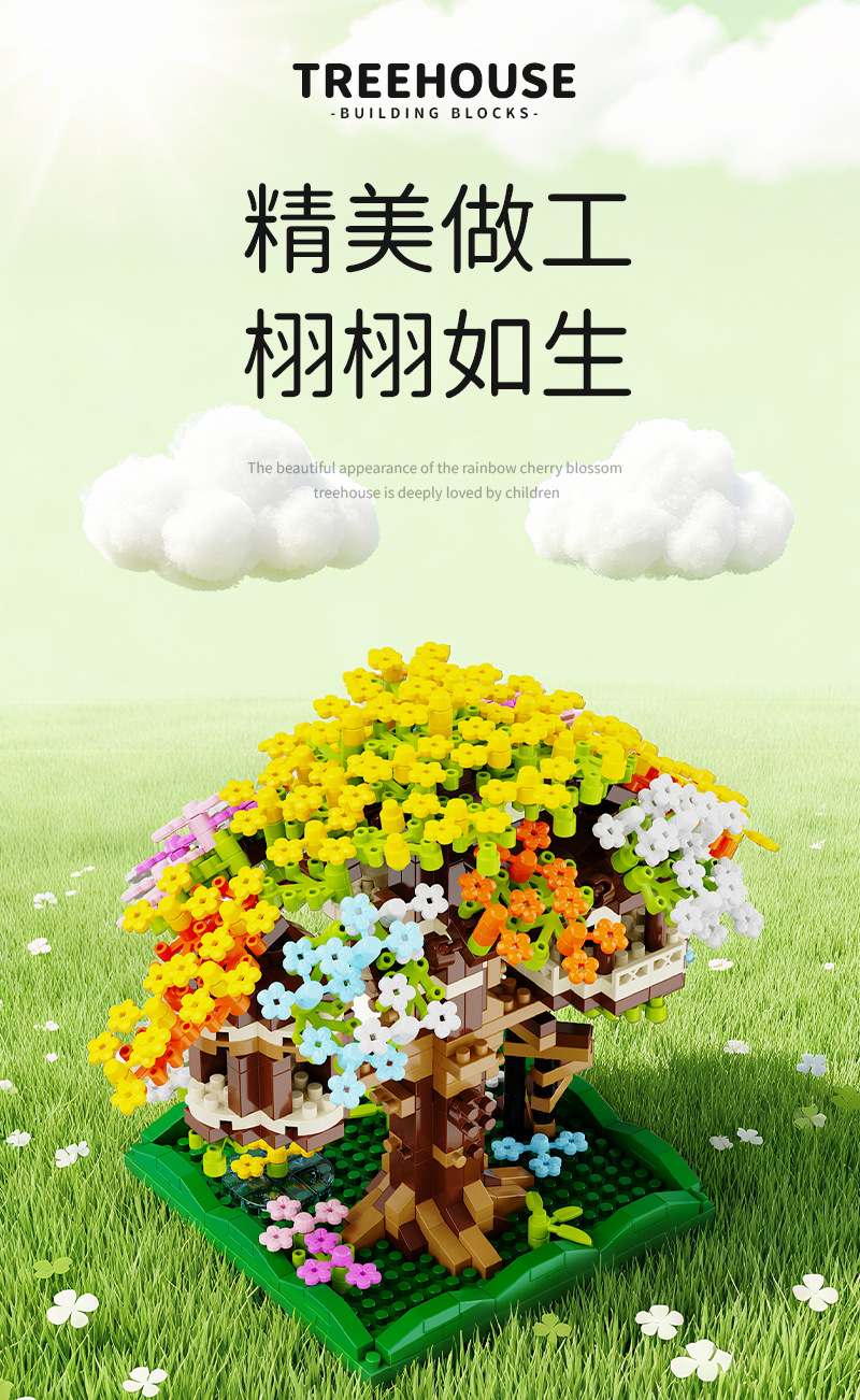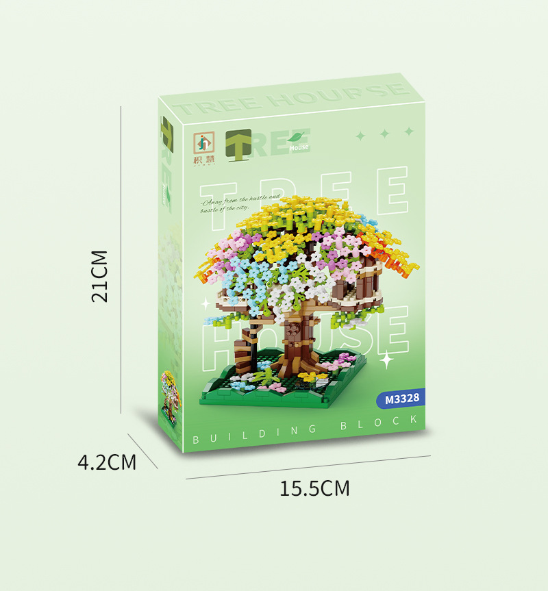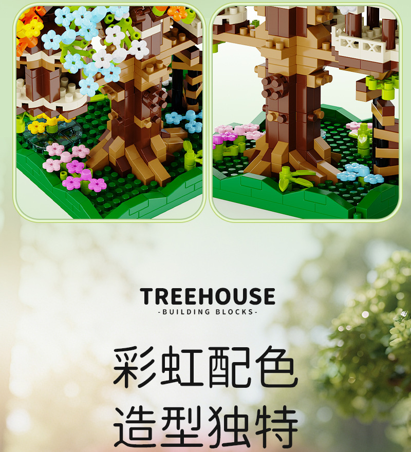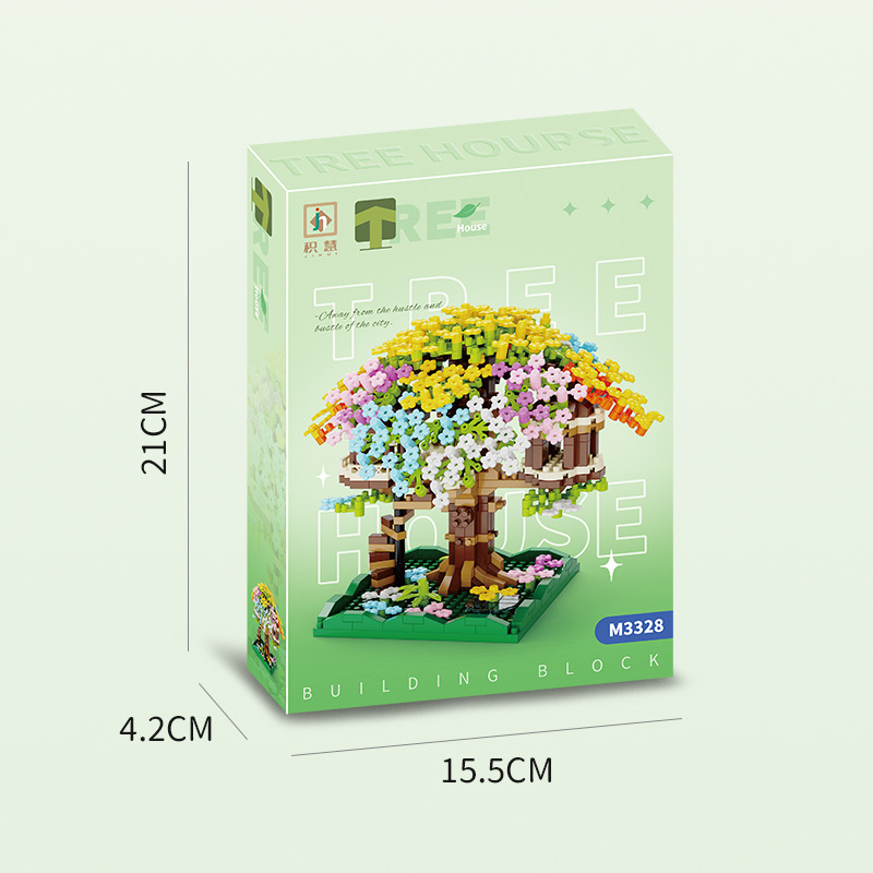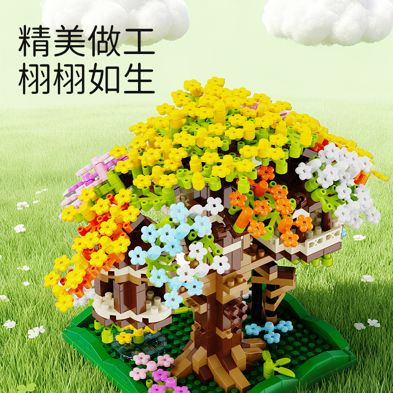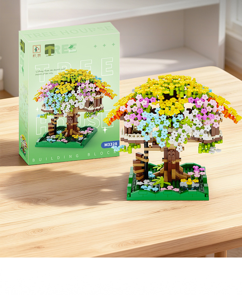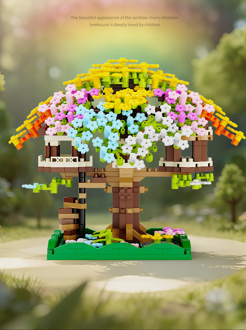 积慧M3328兼容乐高彩虹樱花树屋儿童积木拼装玩具女孩礼物男