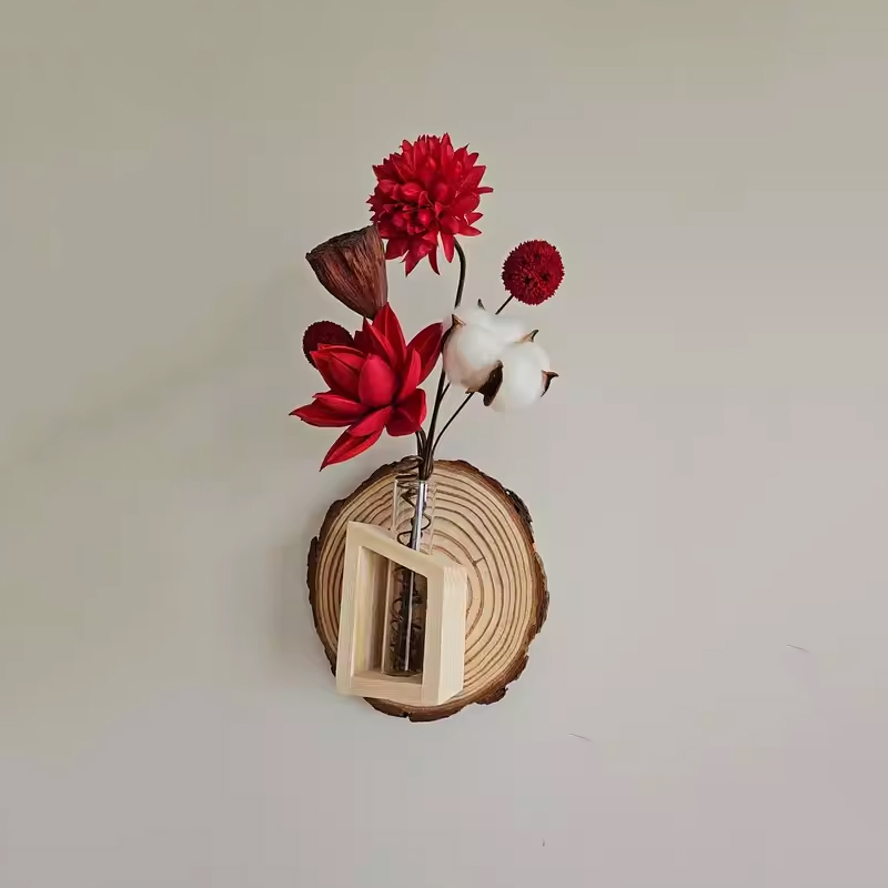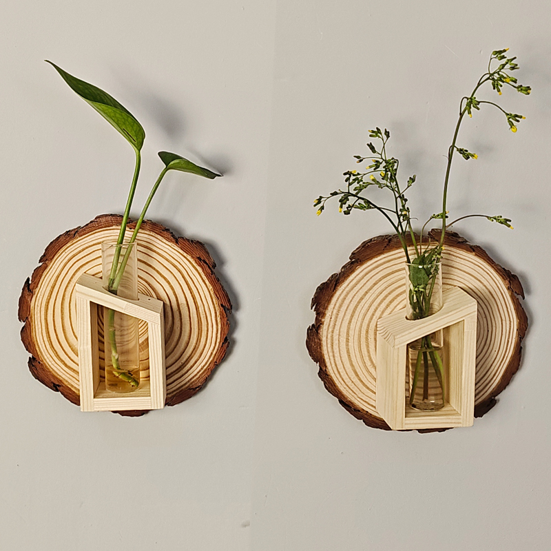 北欧实木绿植墙面装饰品沙发墙上壁饰壁挂小花瓶民宿水培植物挂件