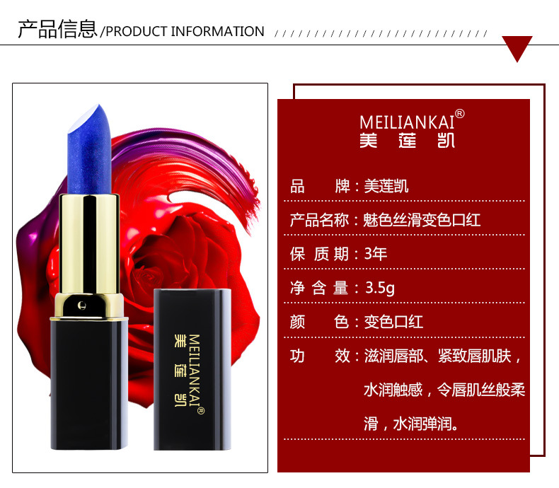变色口红渐变唇膏孕妇可用蓝色润唇膏易上色千人持久滋润口红