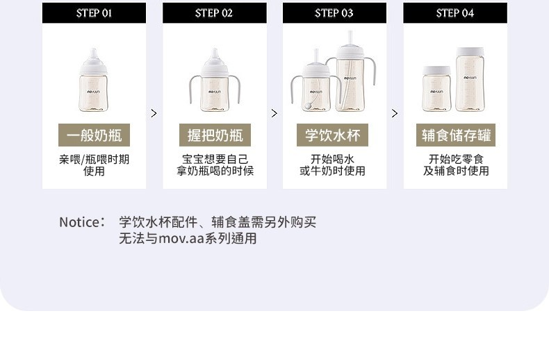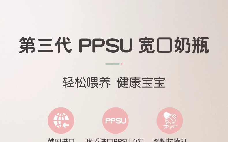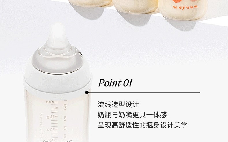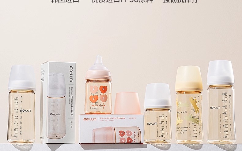 moyuum0-6个月1岁以上防摔耐高温PPSU婴儿奶瓶防胀气大宝宝仿母乳