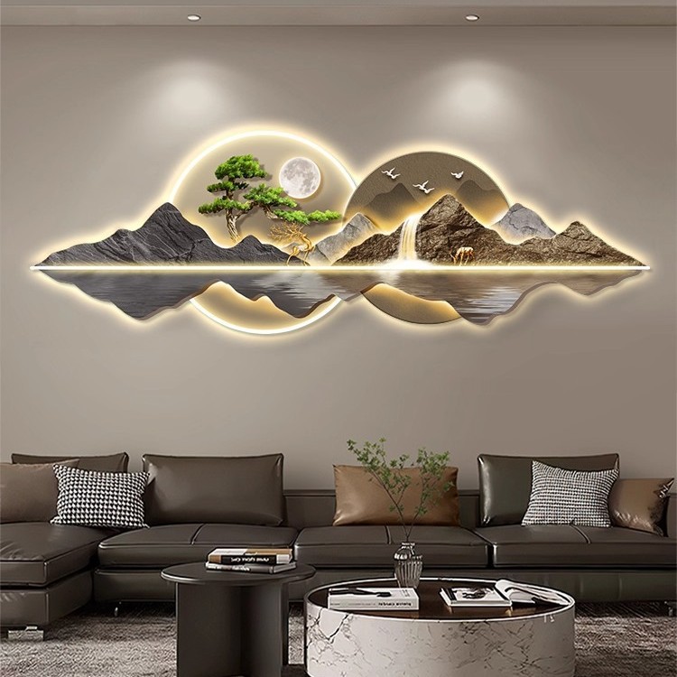 新中式客厅装饰画山水led灯画迎客松沙发背景墙挂画大气高档壁画