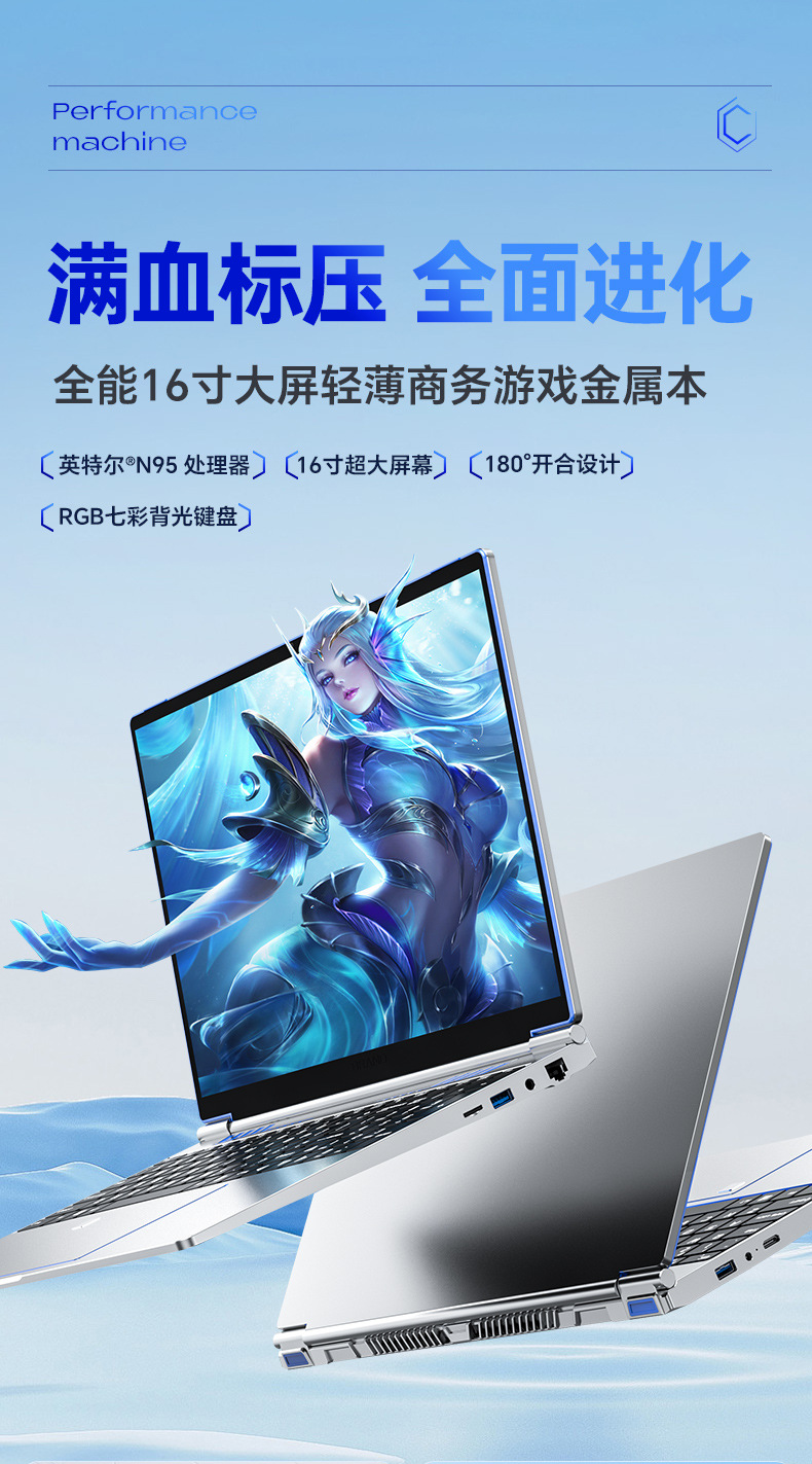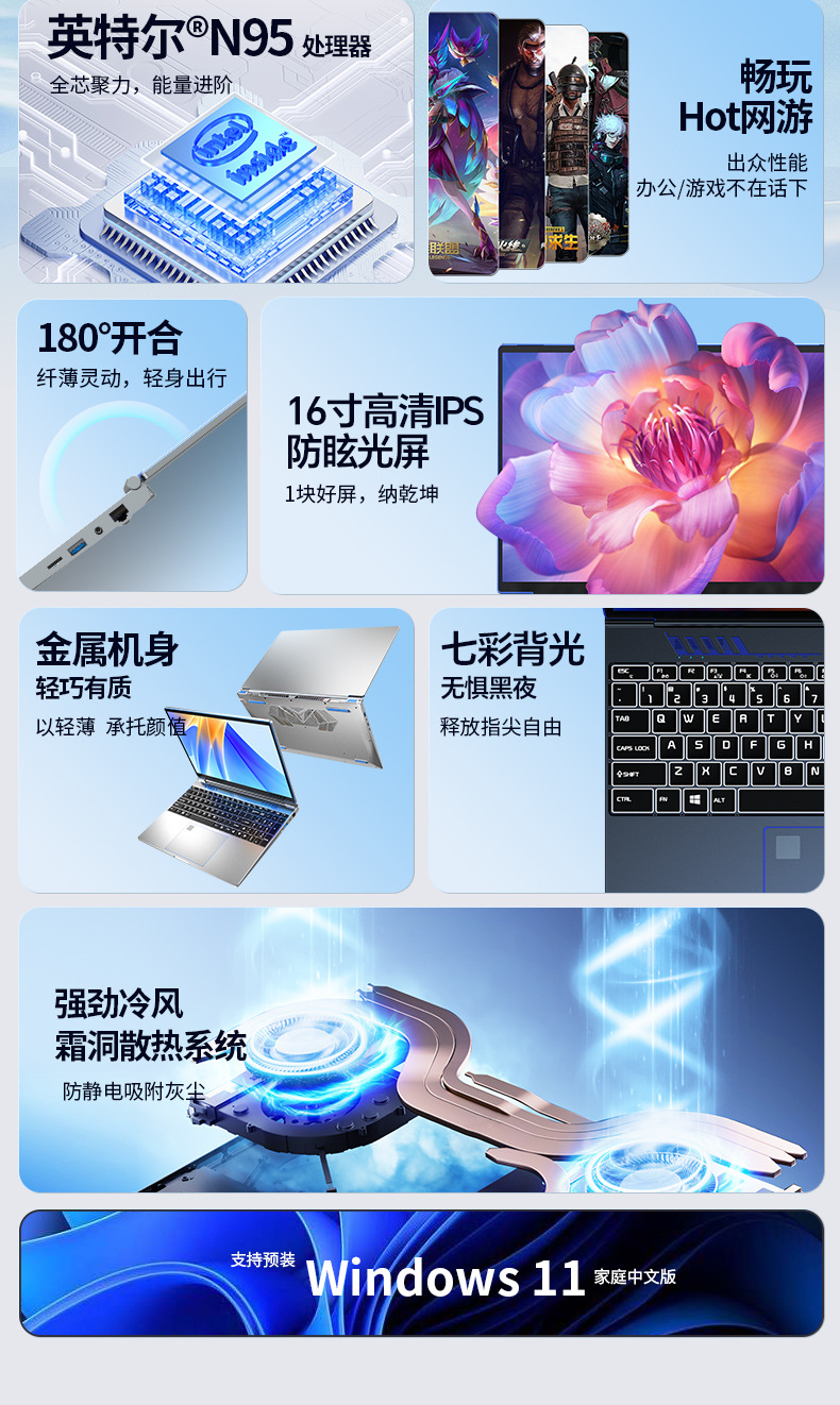 - 16英寸英特尔N95+金属机甲+七彩+指纹