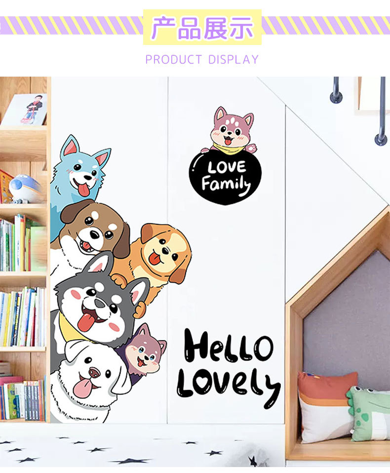 宠物店墙面卡通创意狗狗卧室贴纸墙贴可爱装饰贴画儿童房自粘贴纸