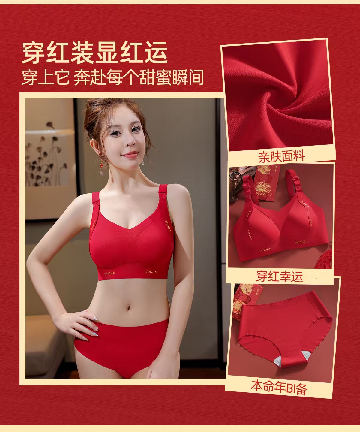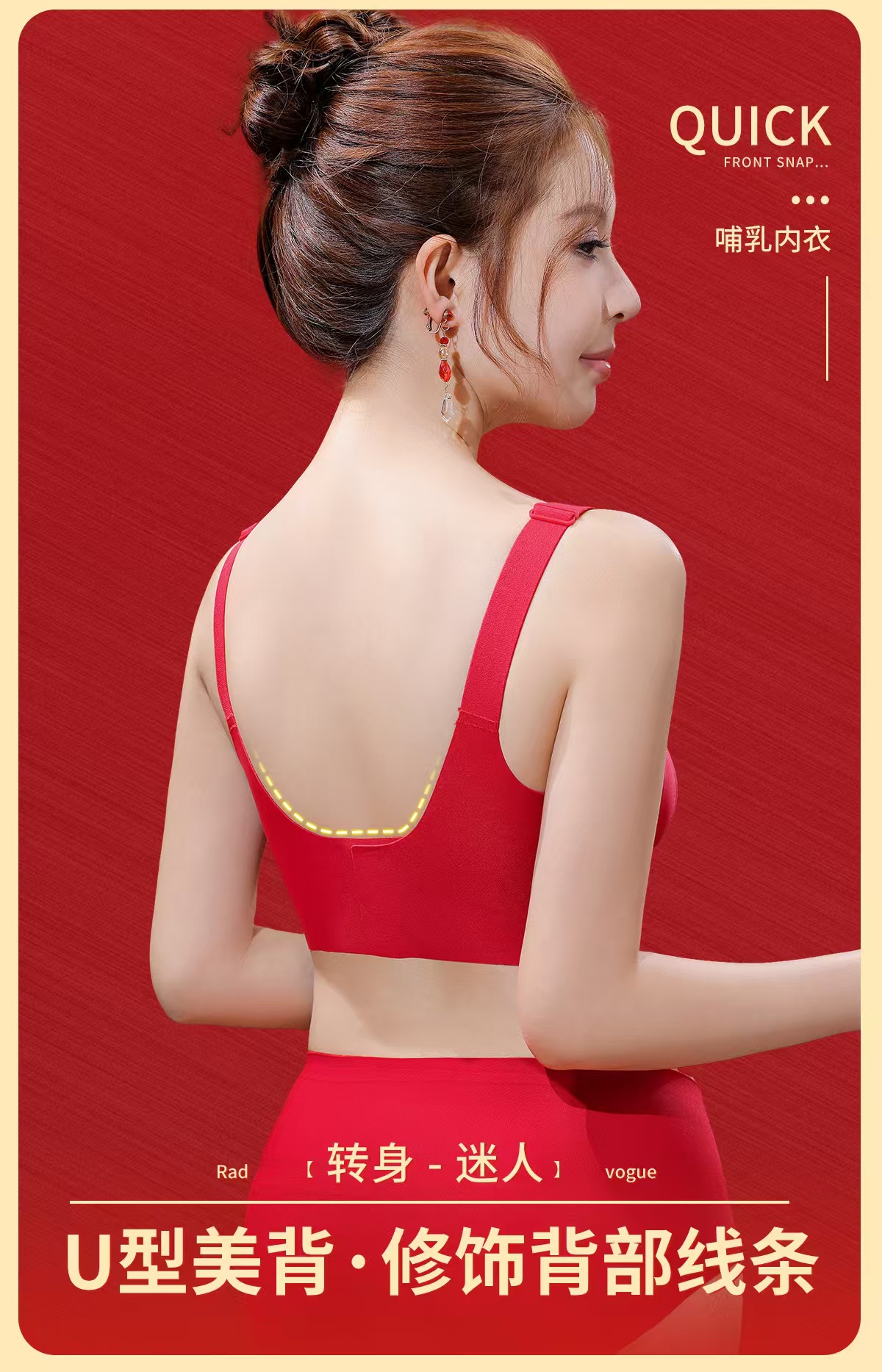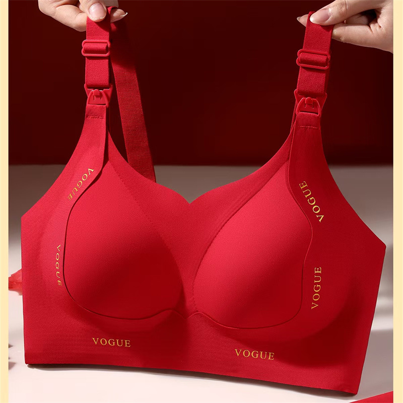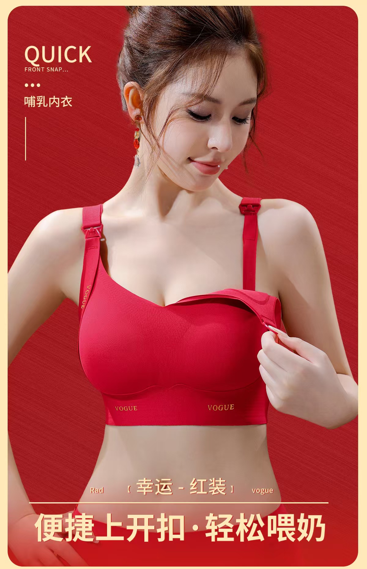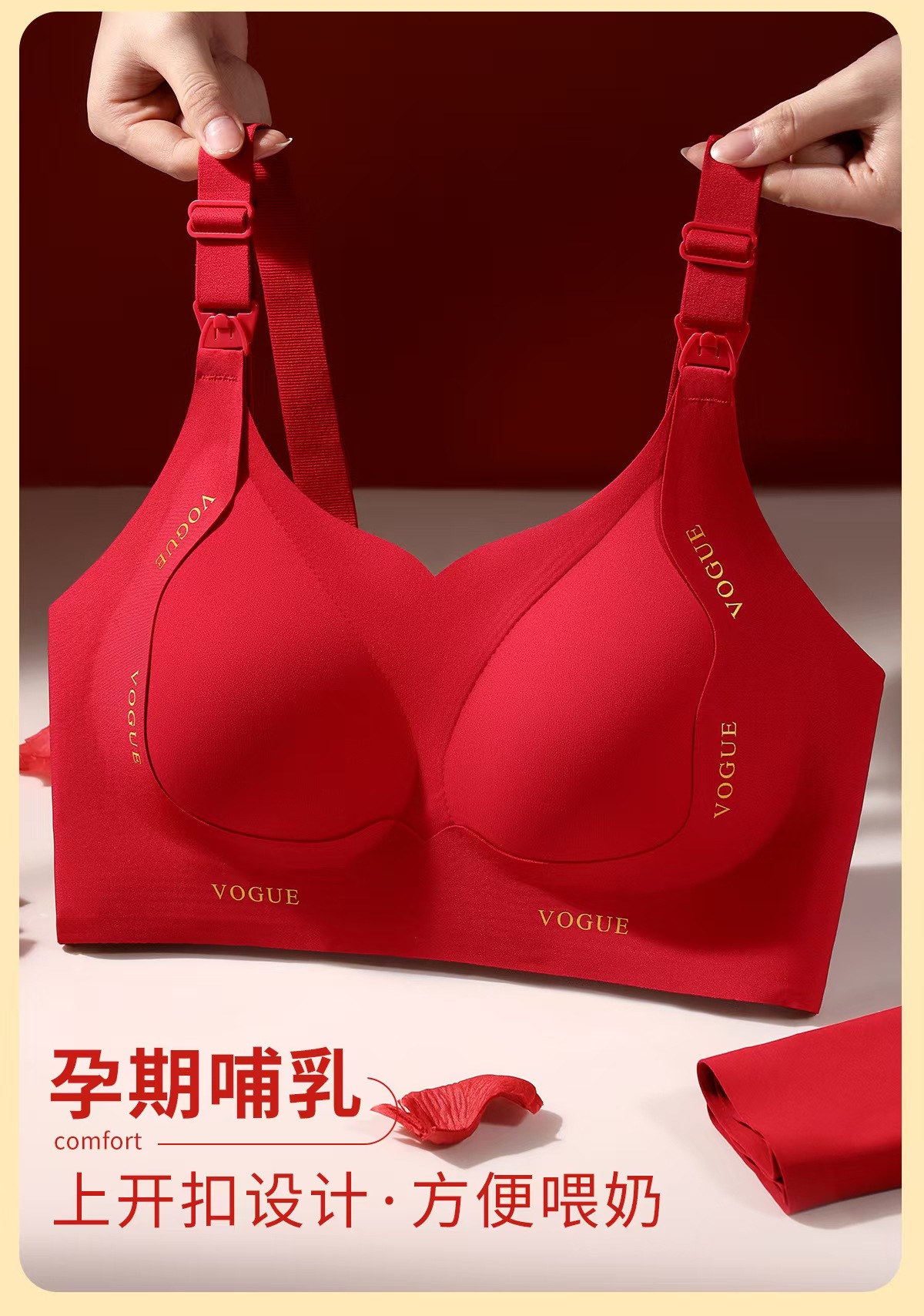 孕妇哺乳前开扣内衣女薄款大胸显小聚拢无钢圈大红色产后喂奶文胸