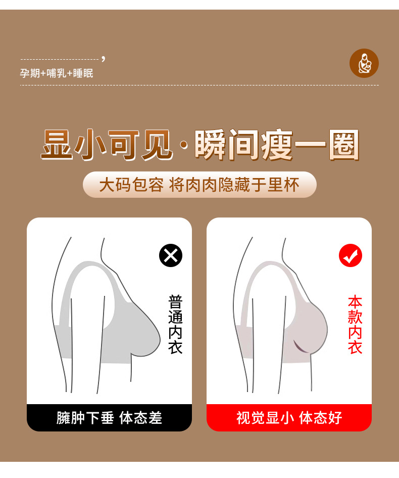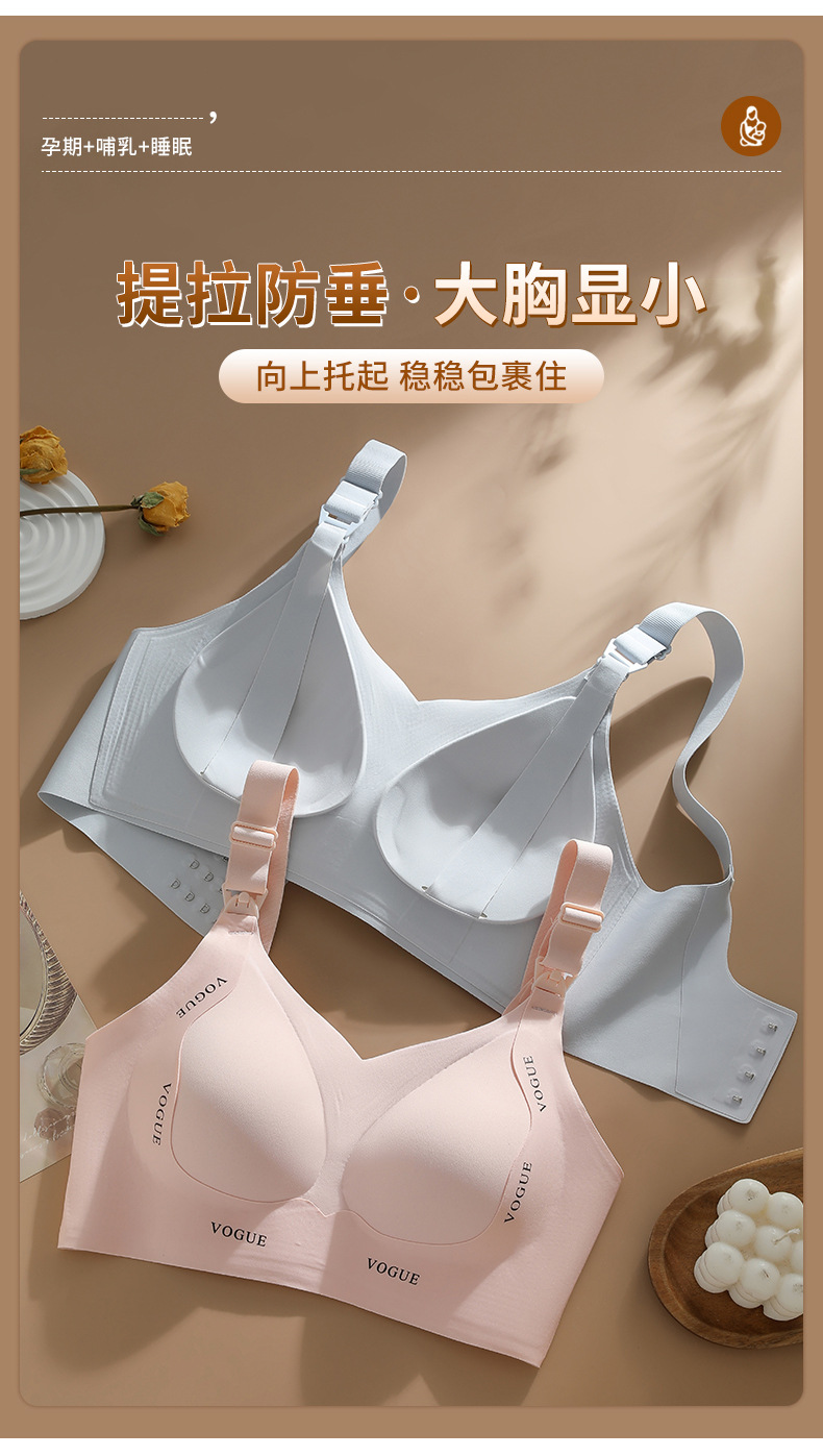 上开扣软支撑无钢圈聚拢大胸显小哺乳文胸孕期哺乳期孕妇喂奶内衣