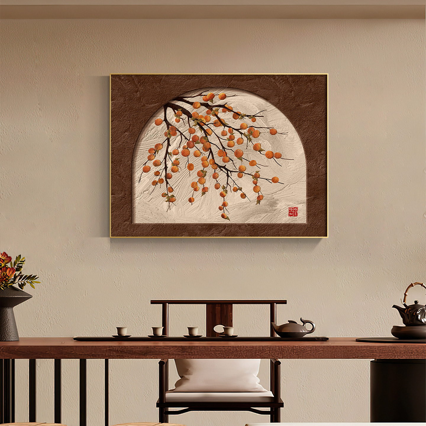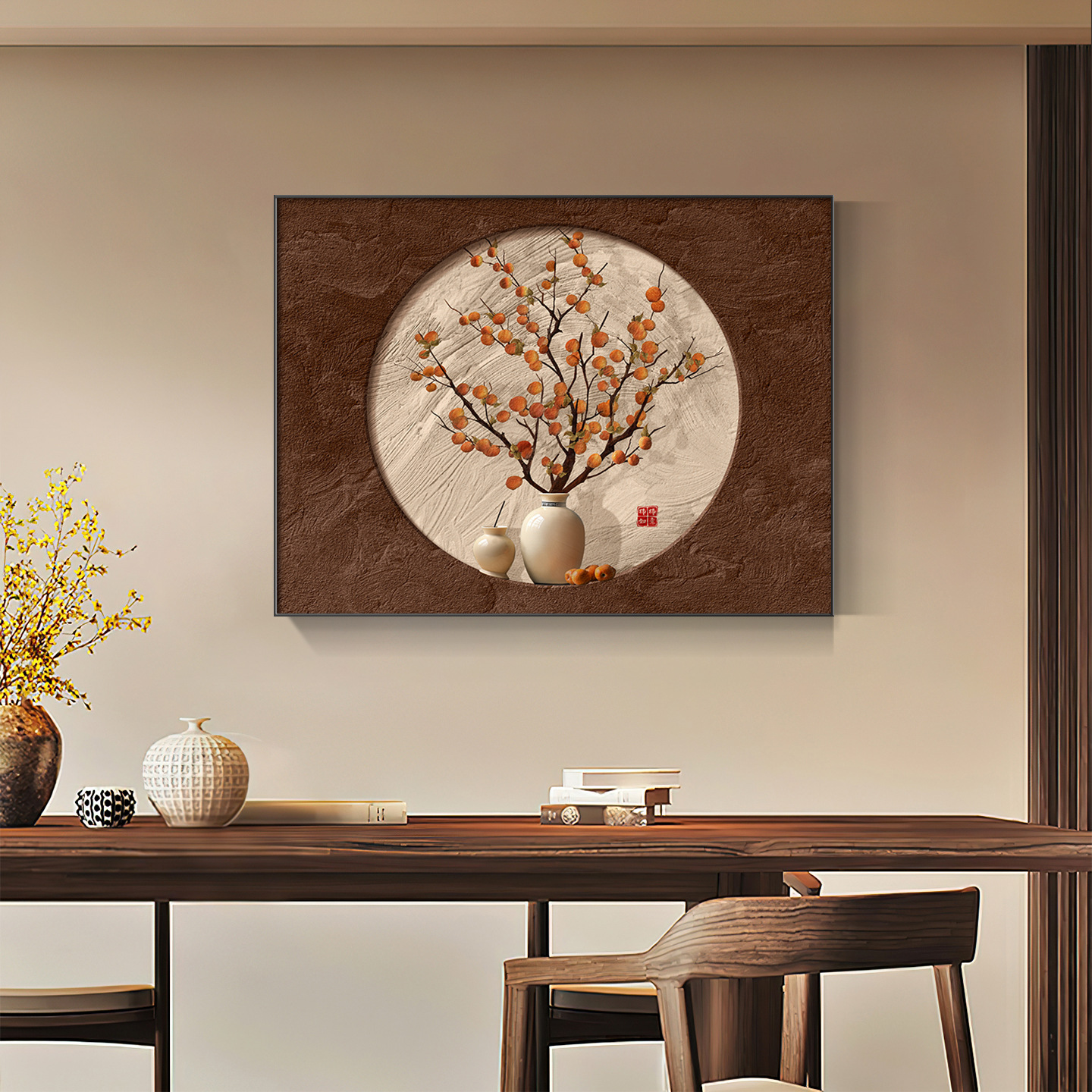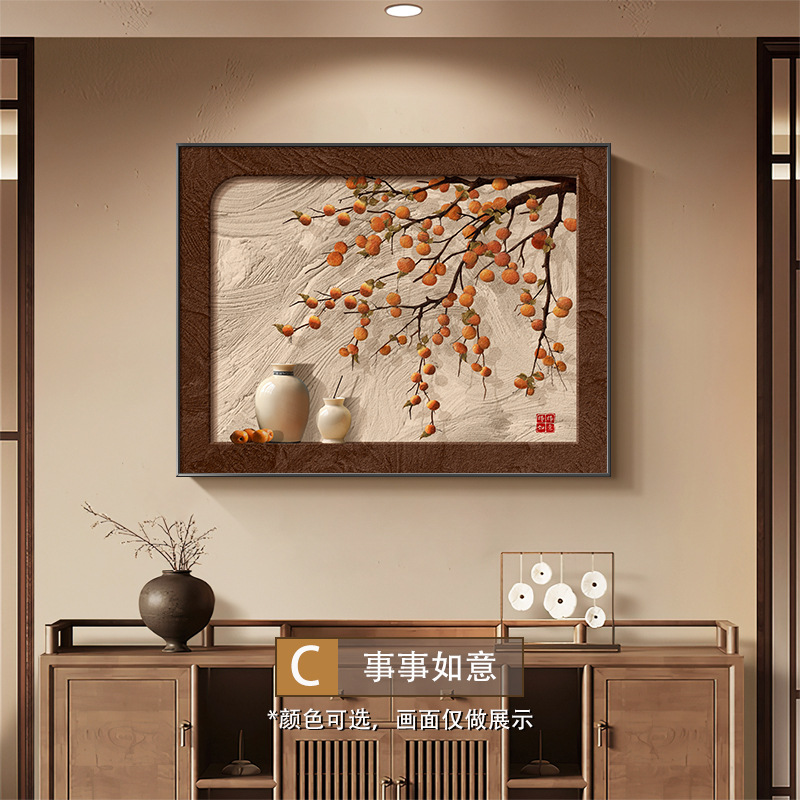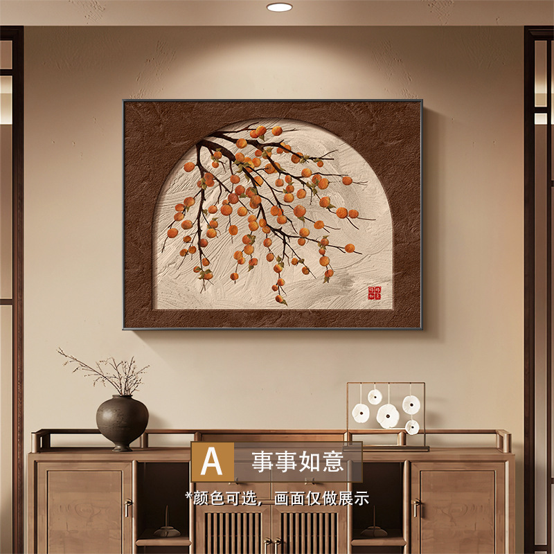 中古风柿柿如意电表箱装饰画2025新款配电箱遮挡挂画电闸盒壁画