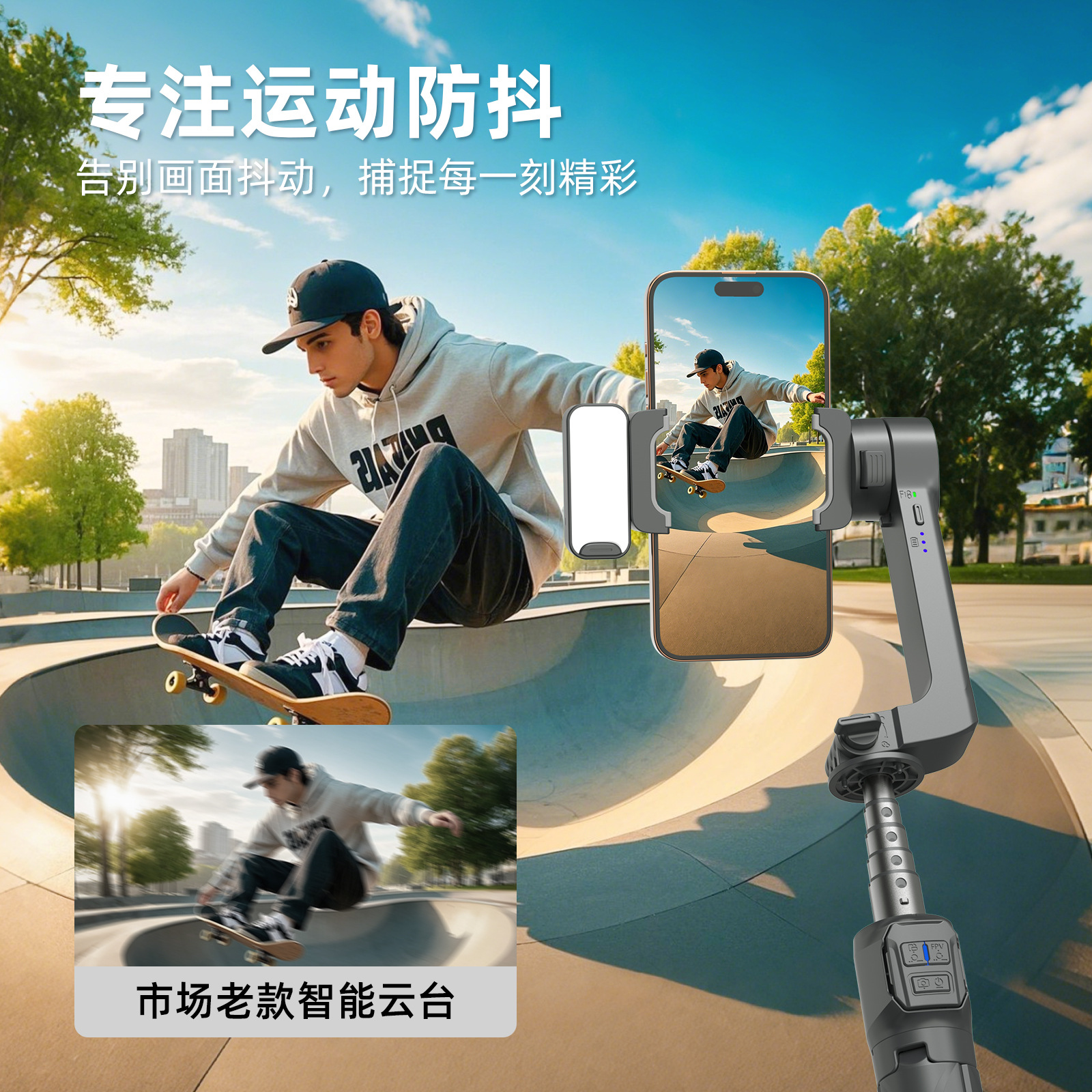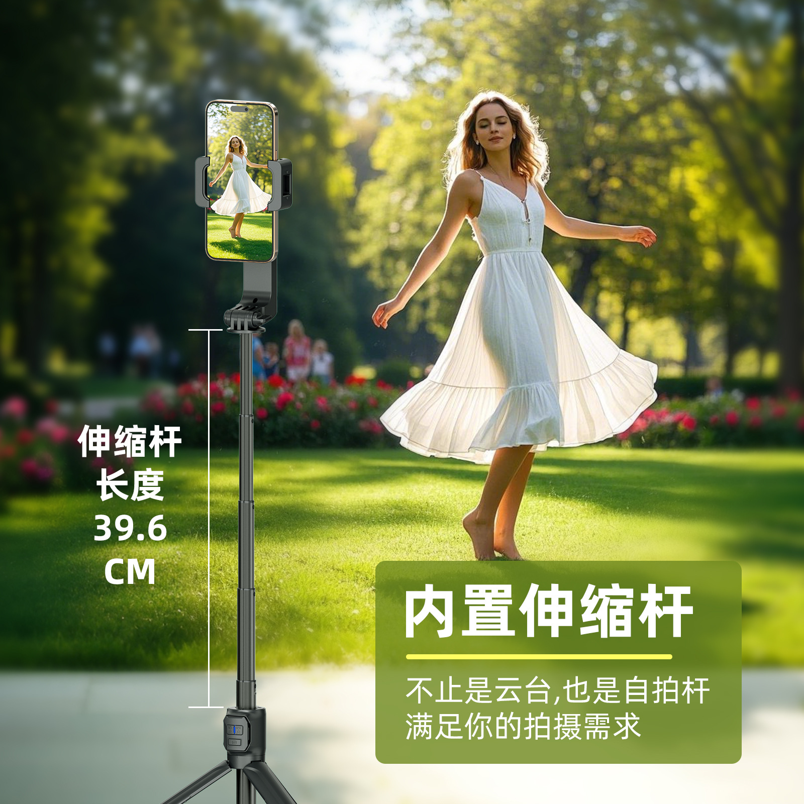 单轴云台2轴防抖自拍杆器手机支架内置39.5CM延长杆遥控器