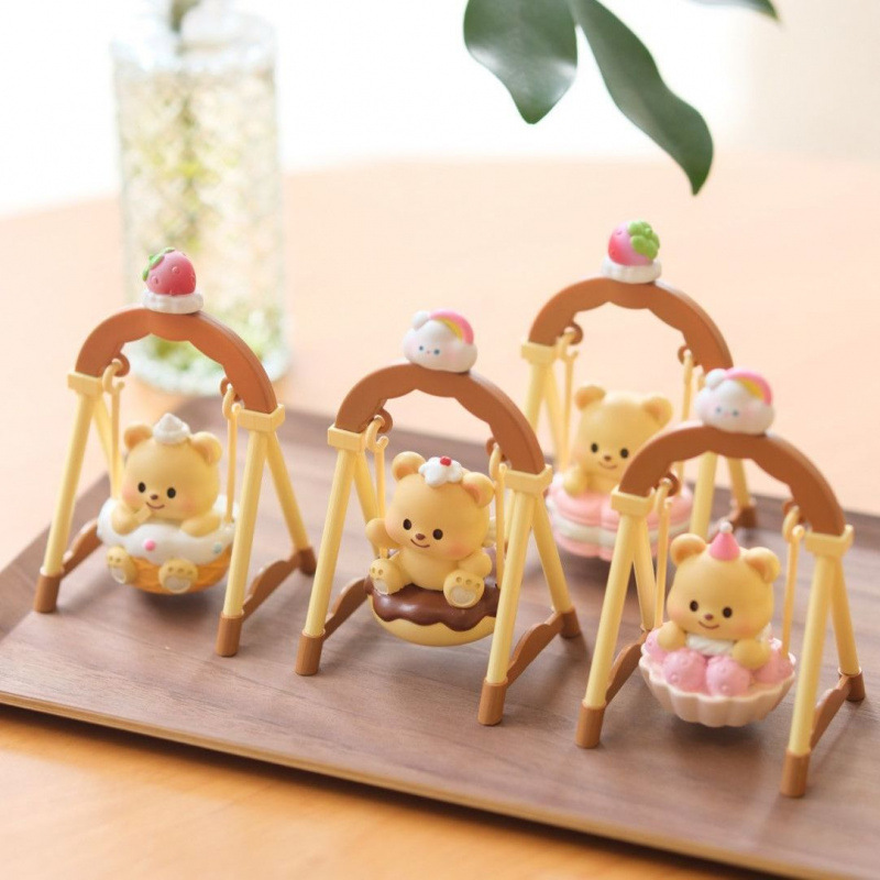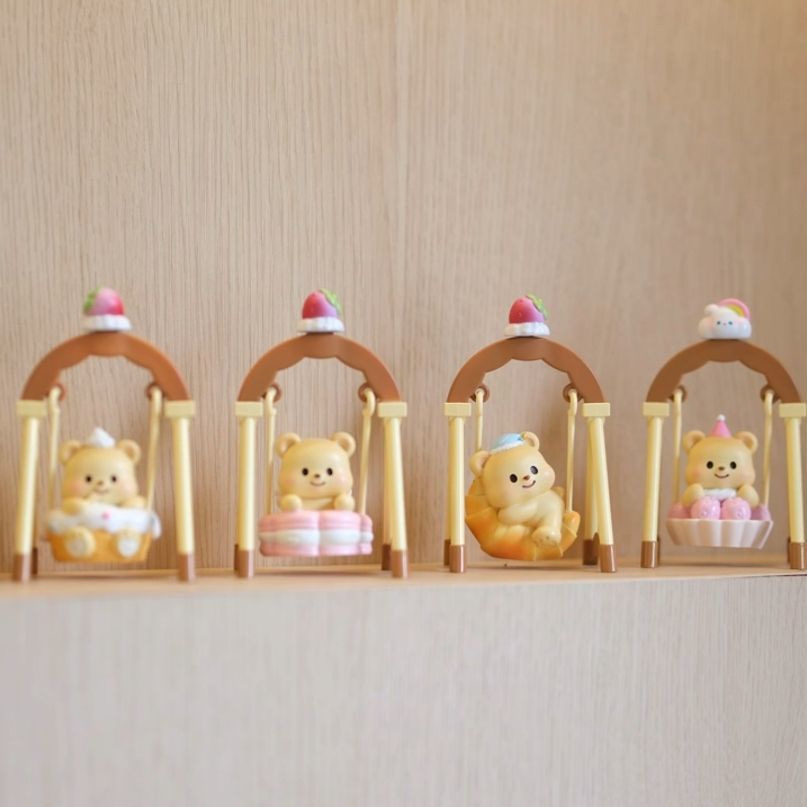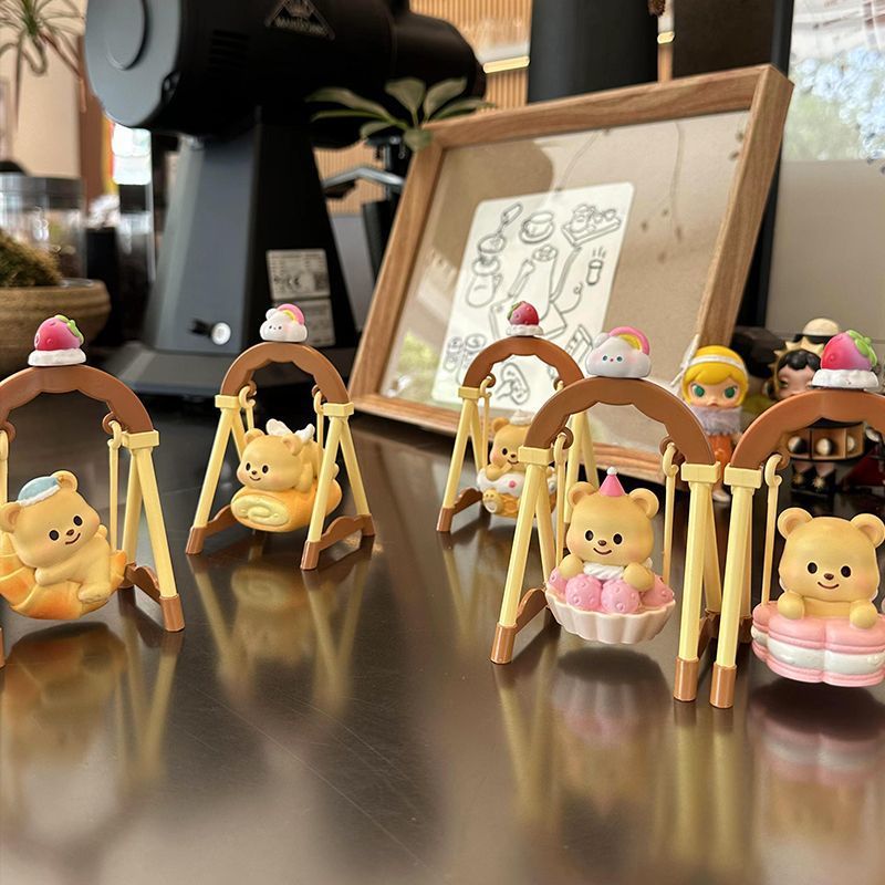 黄油小熊荡秋千盲盒奶油熊公仔治愈系桌面摆件可爱少女心生日礼物