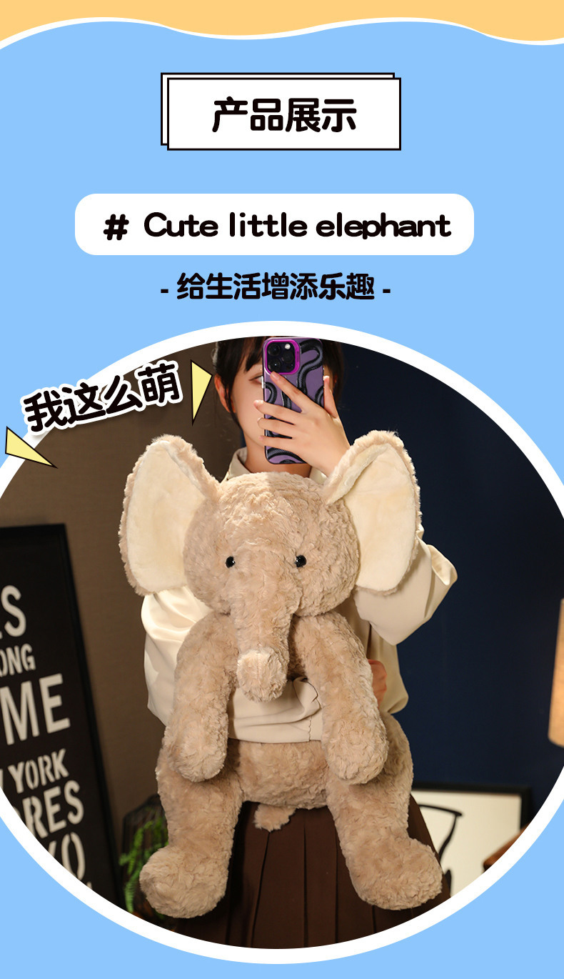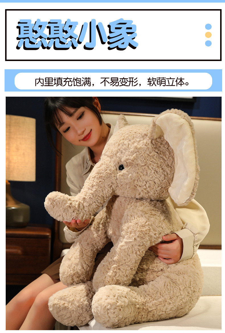 可爱憨小象公仔毛绒玩具娃娃卡其色玩偶儿童睡觉安抚抱枕礼物
