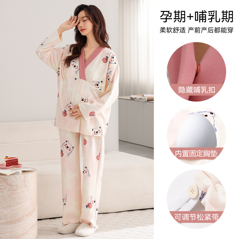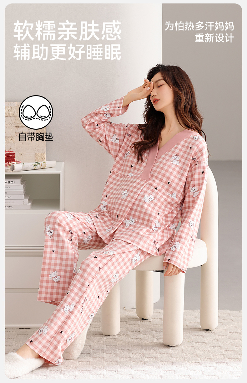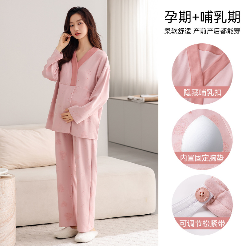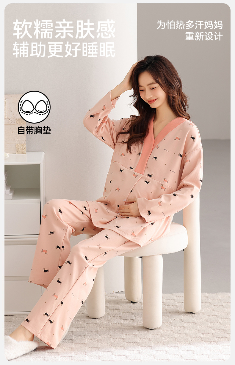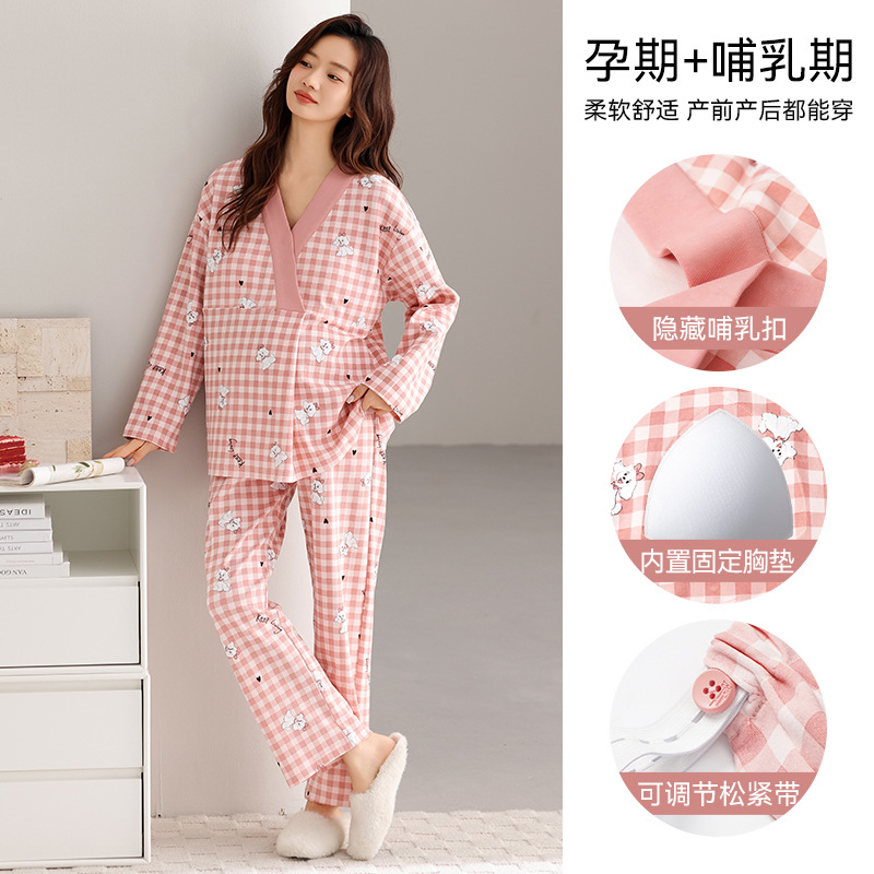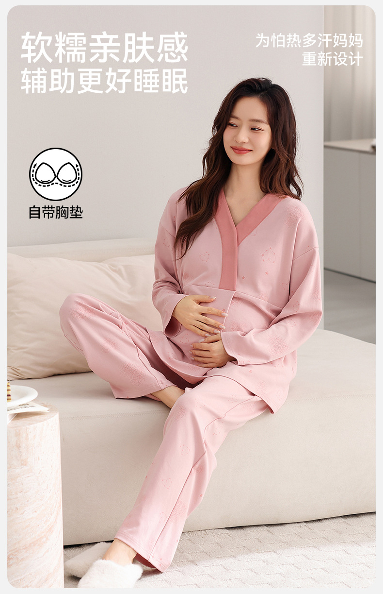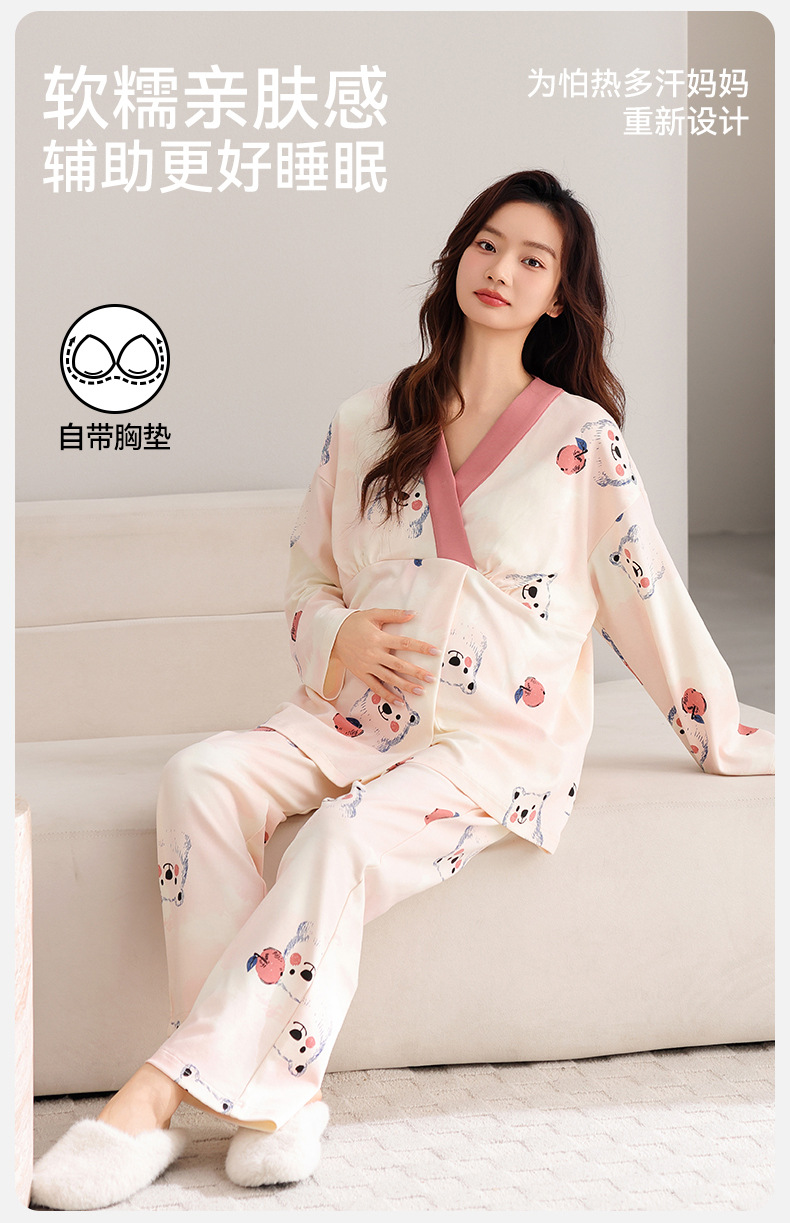 孕妇睡衣女春秋款纯棉长袖怀孕期2025新款月子服产后带胸垫家居服