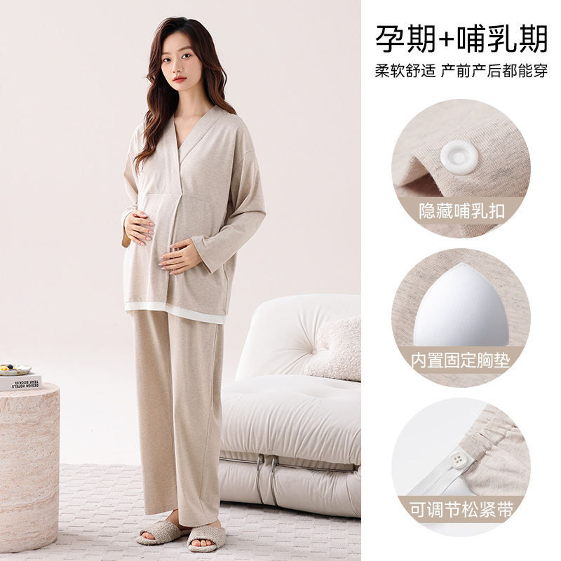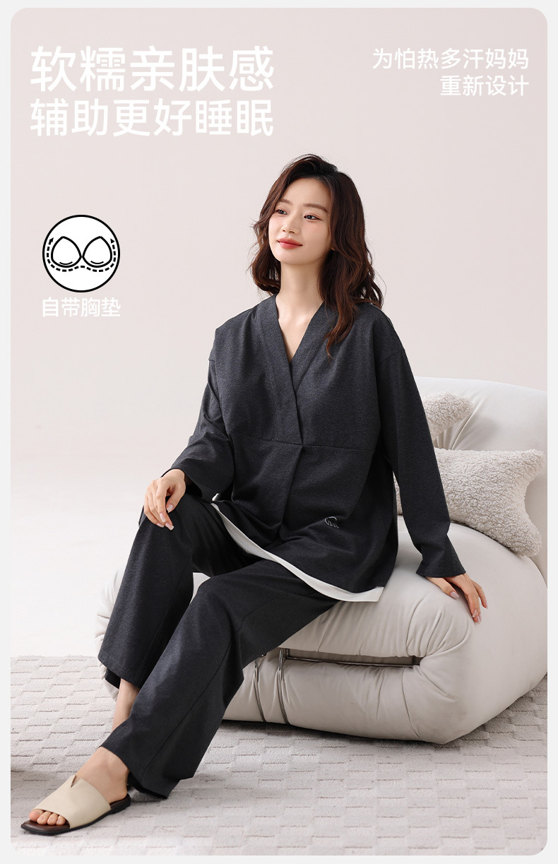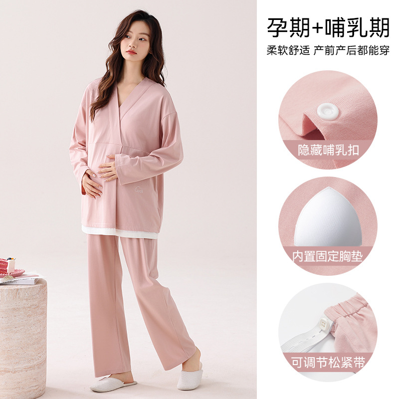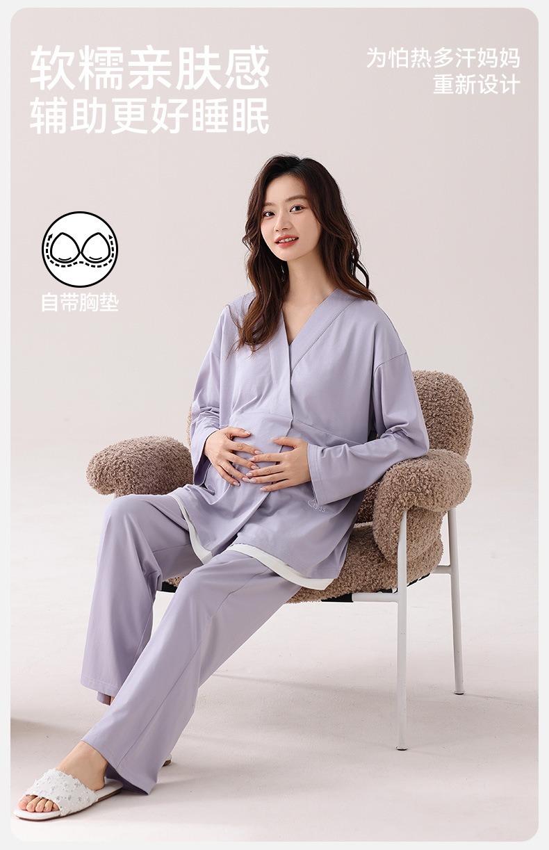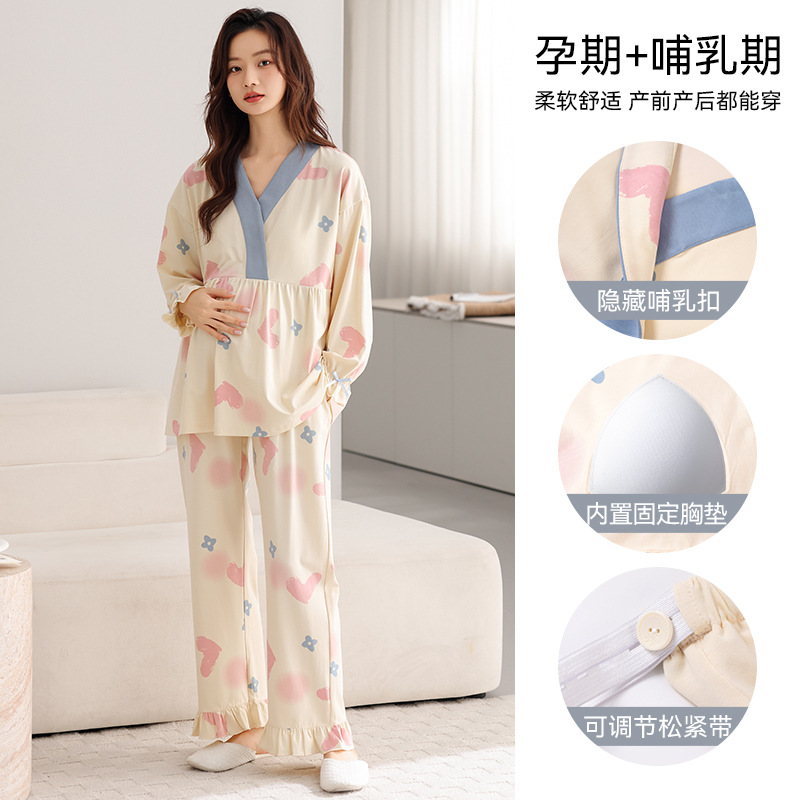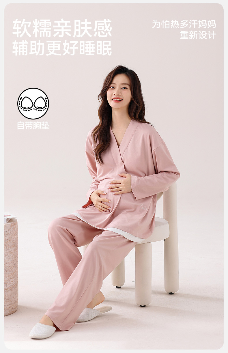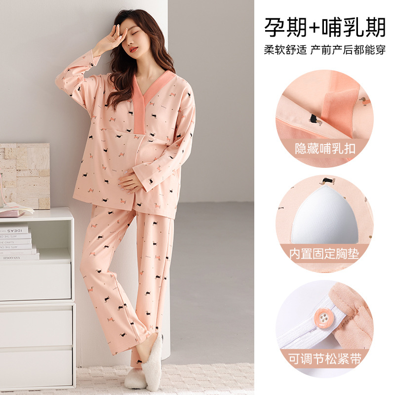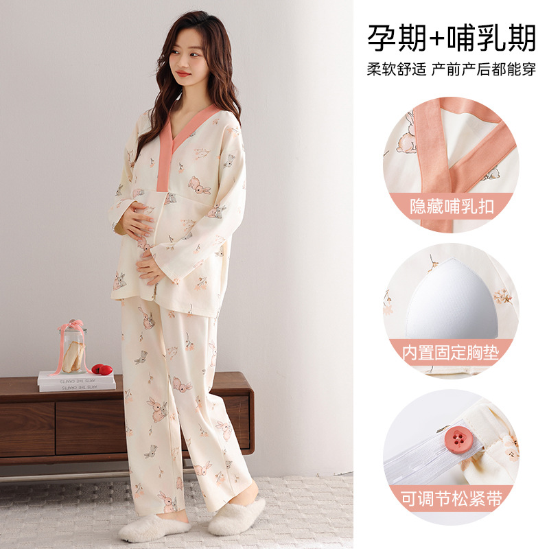 孕妇睡衣女春秋款纯棉长袖怀孕期2025新款月子服产后带胸垫家居服