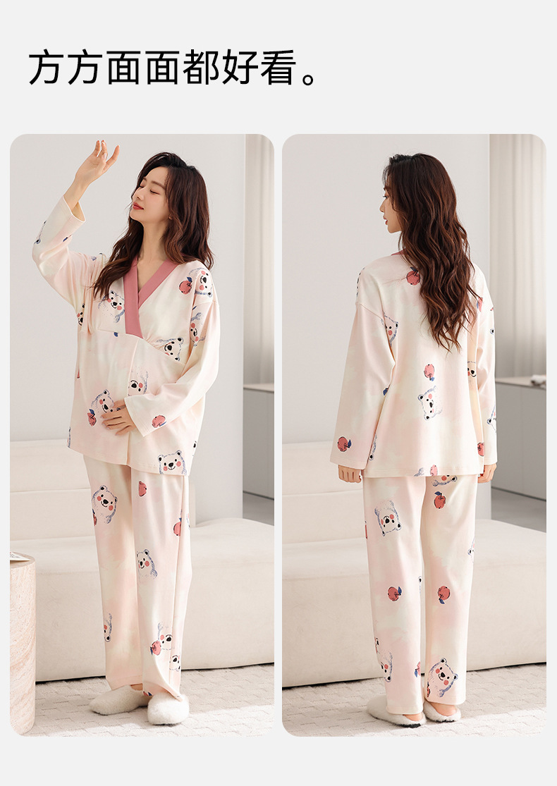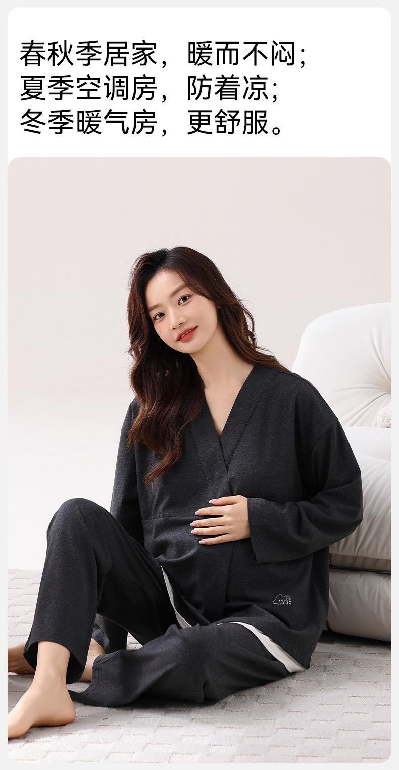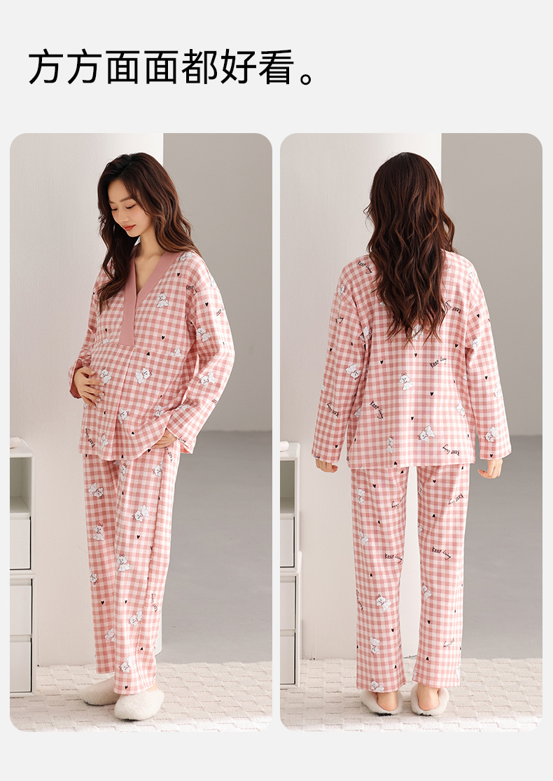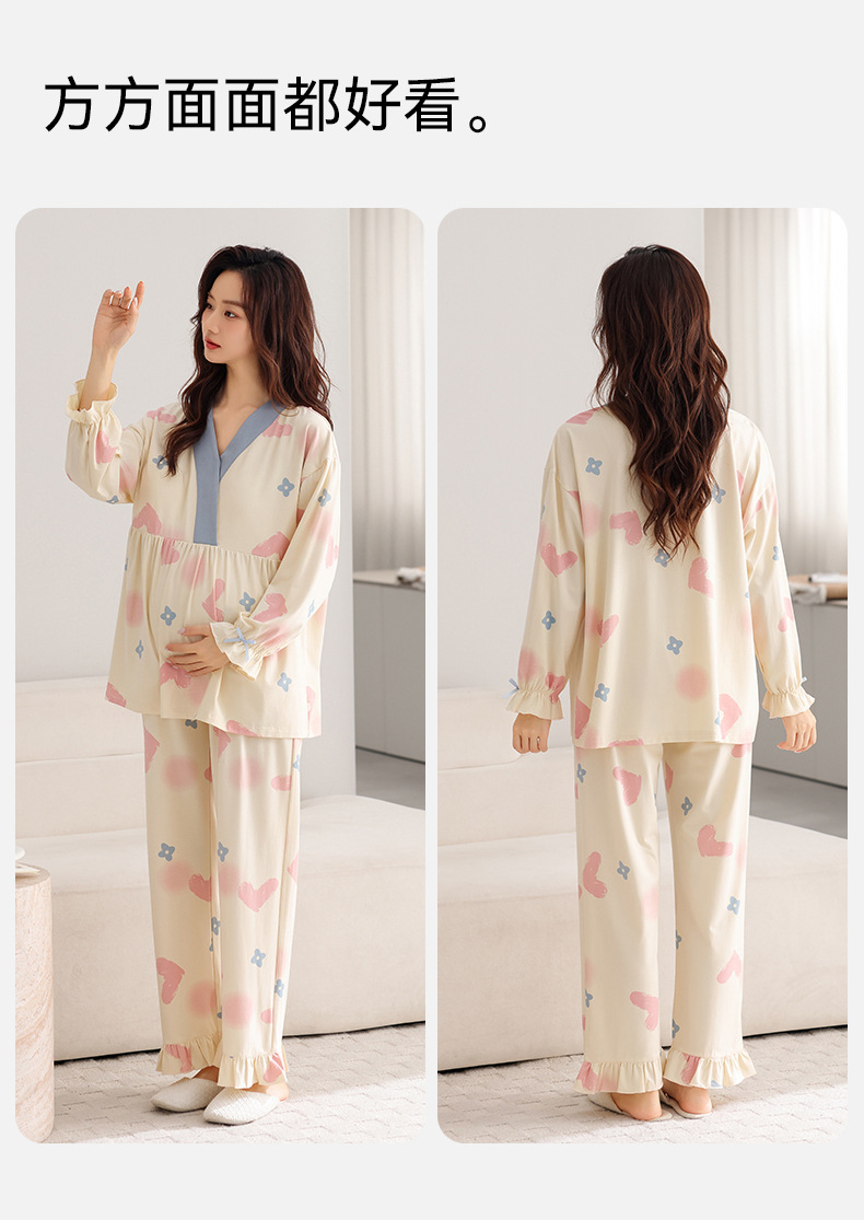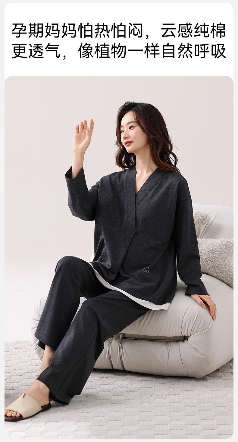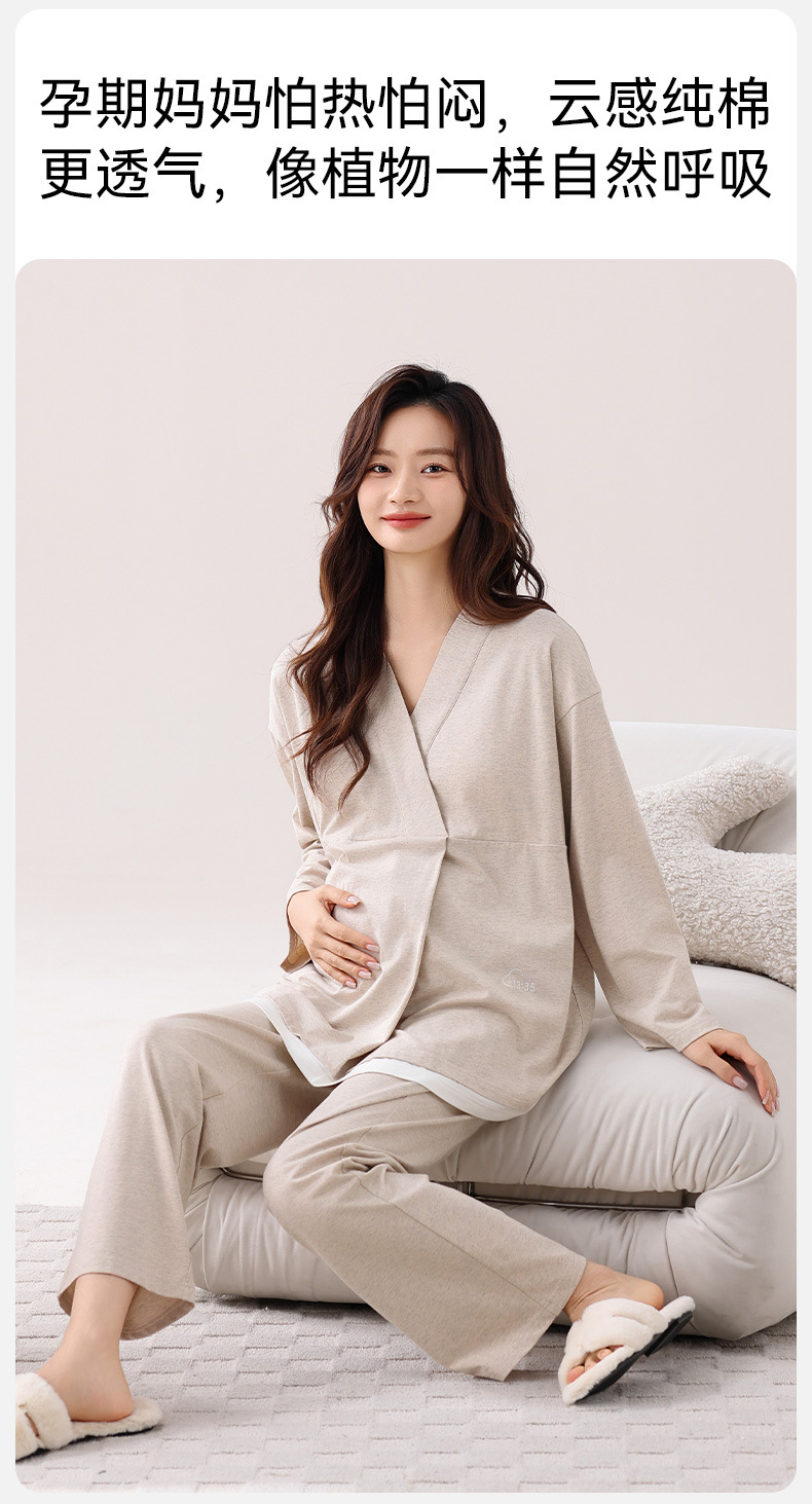 孕妇睡衣女春秋款纯棉长袖怀孕期2025新款月子服产后带胸垫家居服