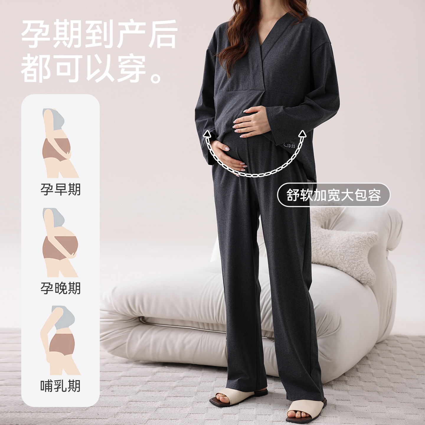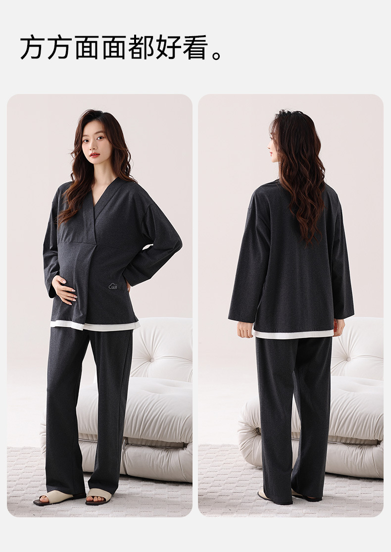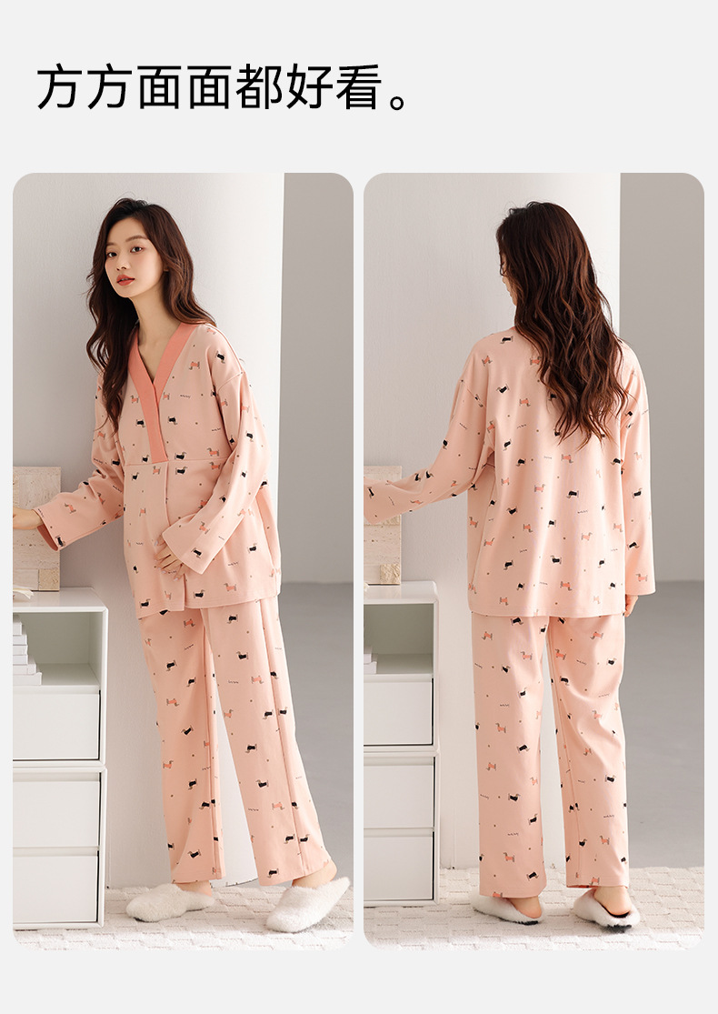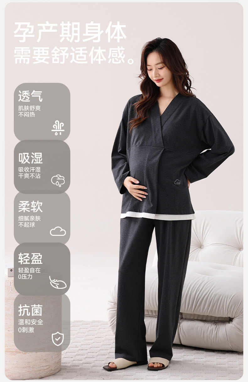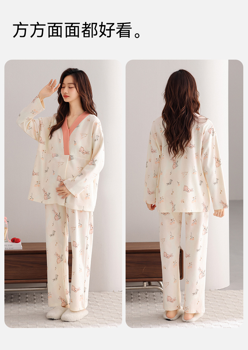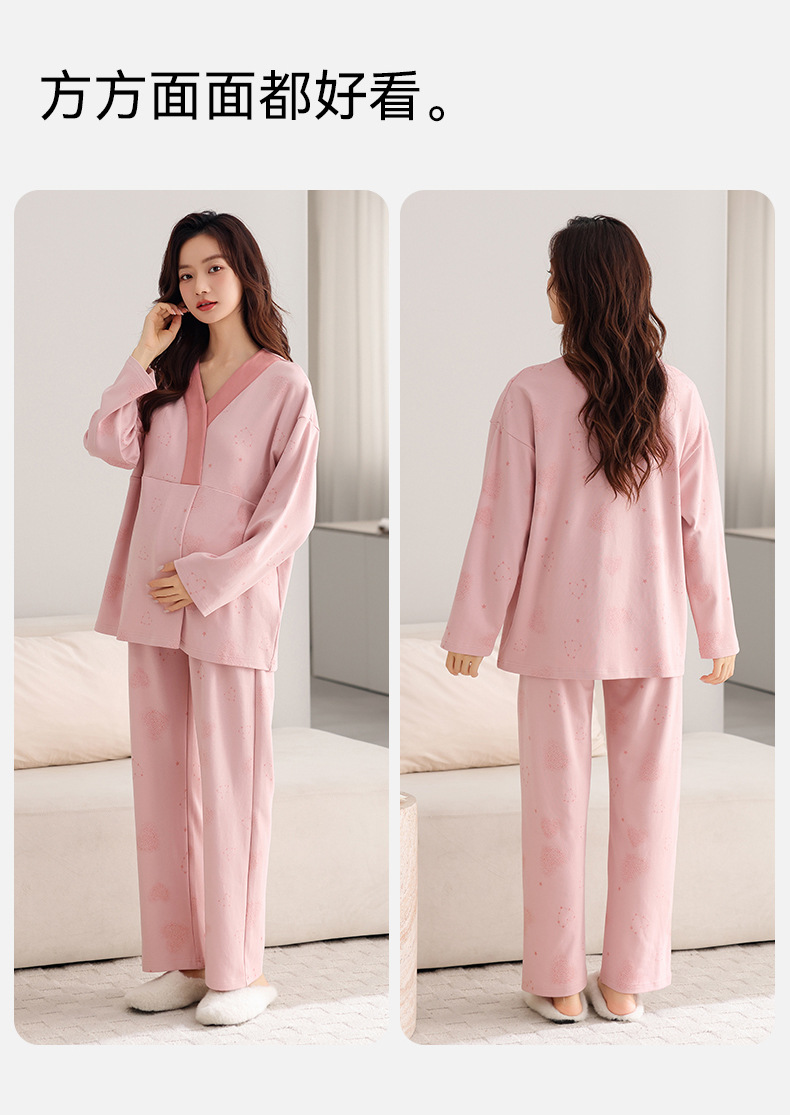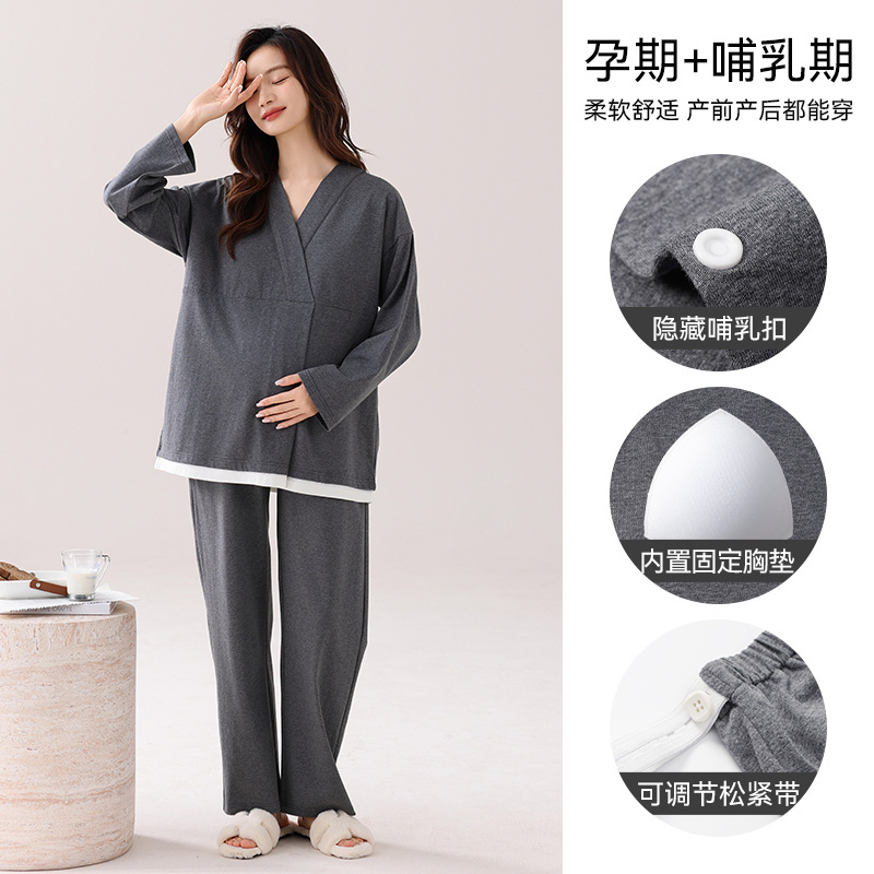 孕妇睡衣女春秋款纯棉长袖怀孕期2025新款月子服产后带胸垫家居服