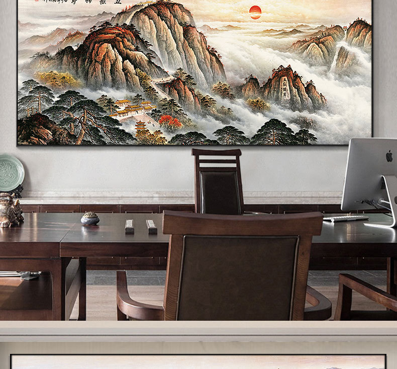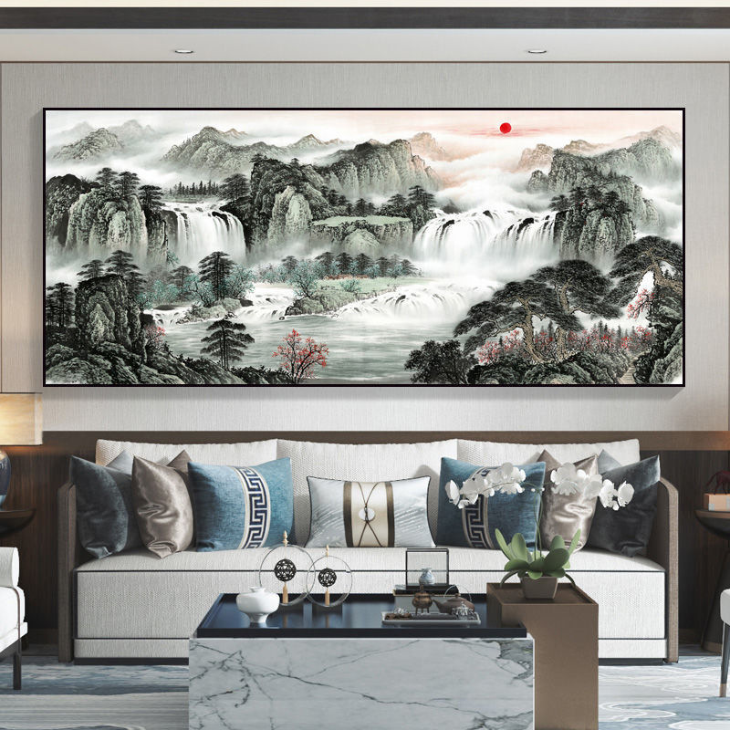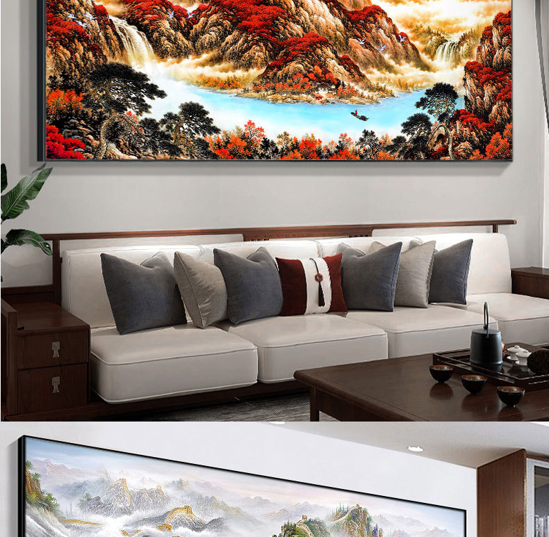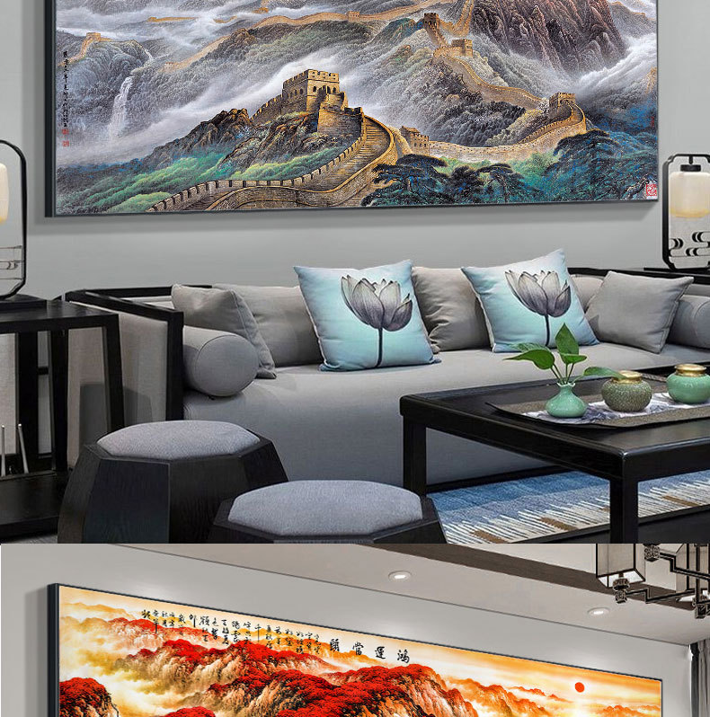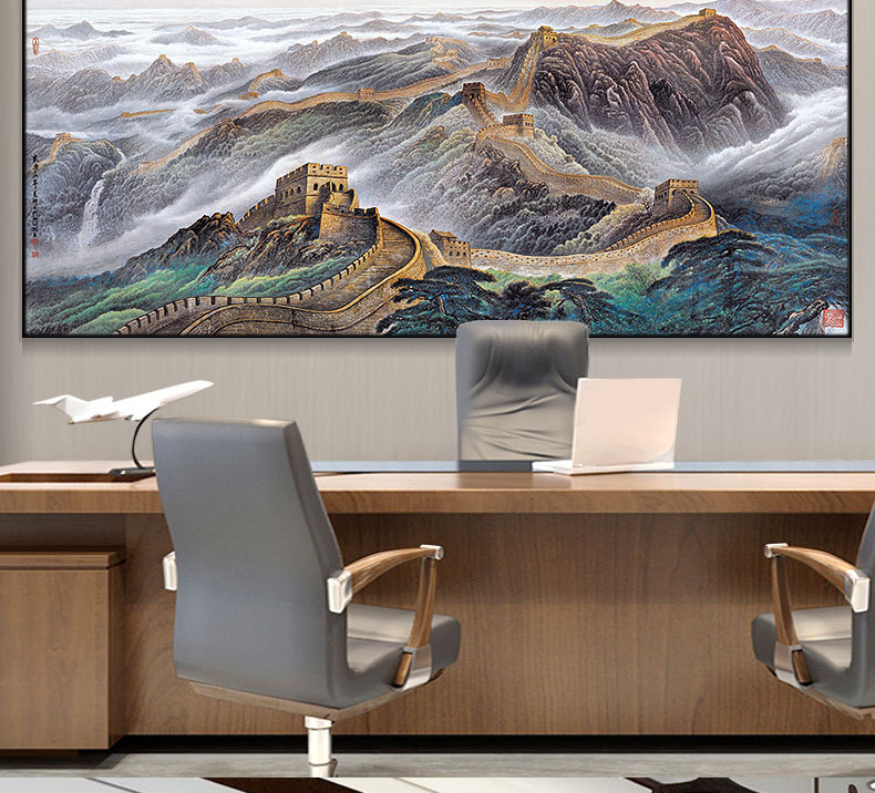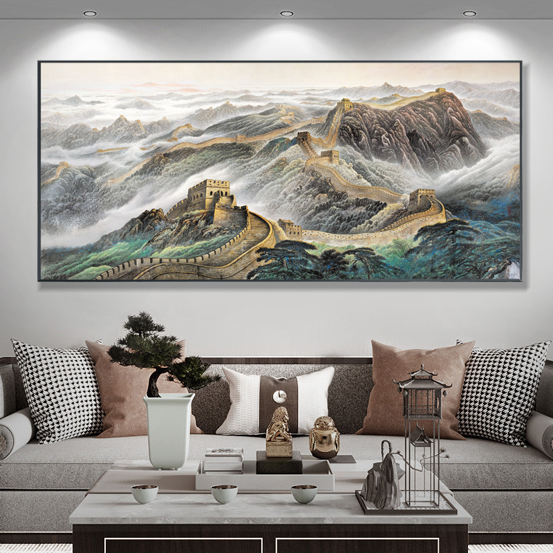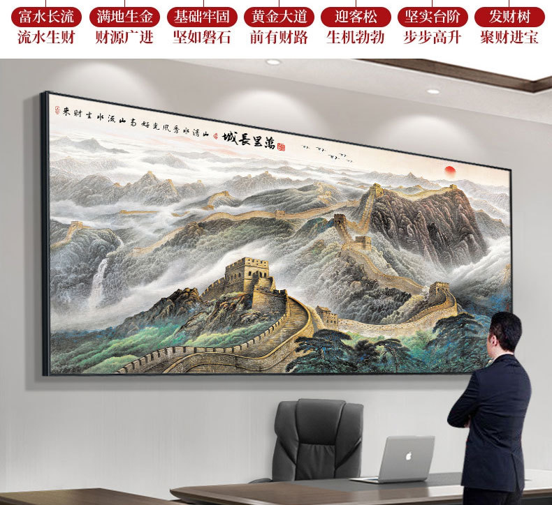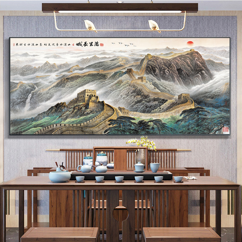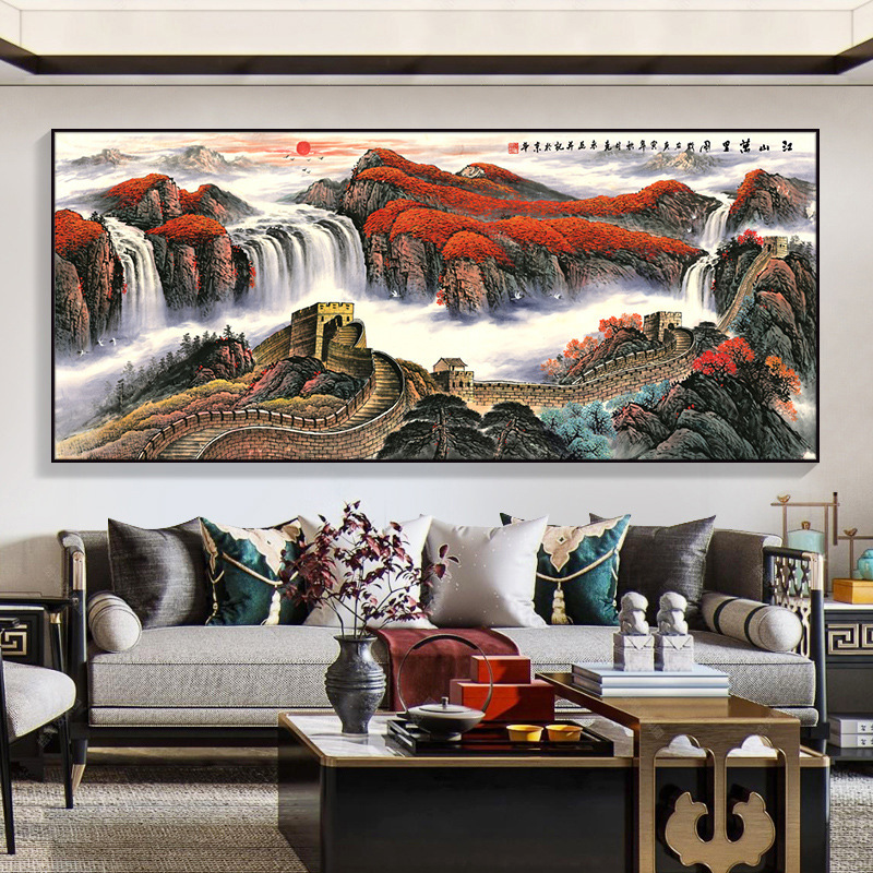 客厅挂画高级感沙发背景墙装饰画长城山水画背有靠山画芯大尺寸画