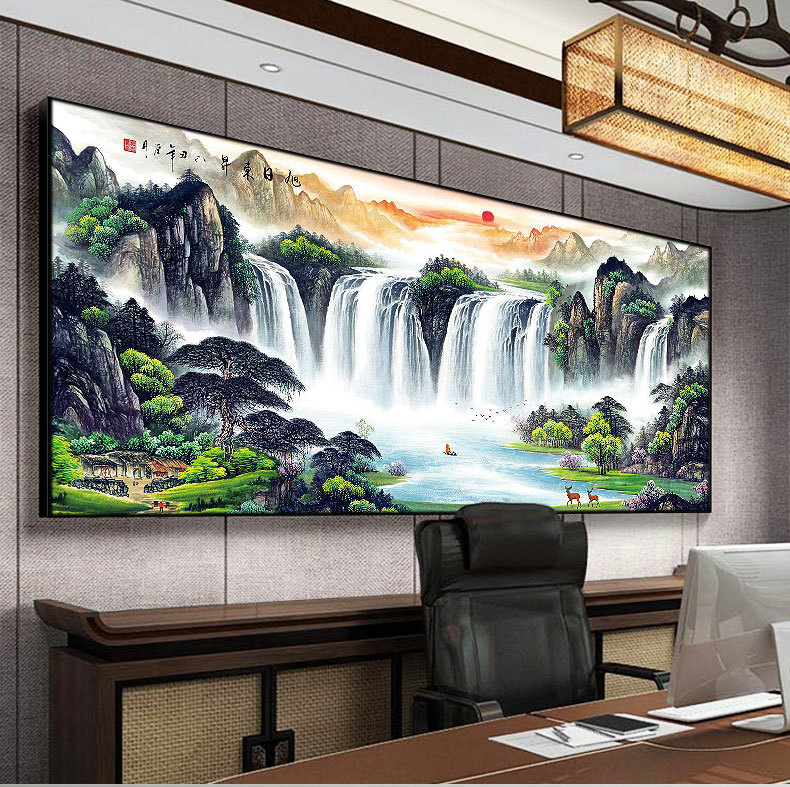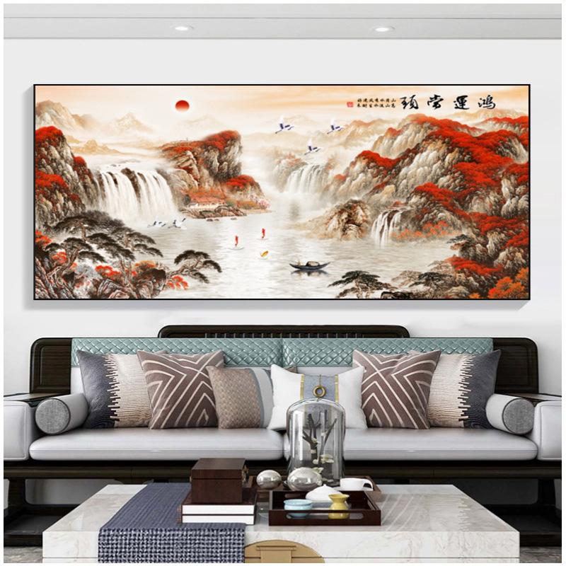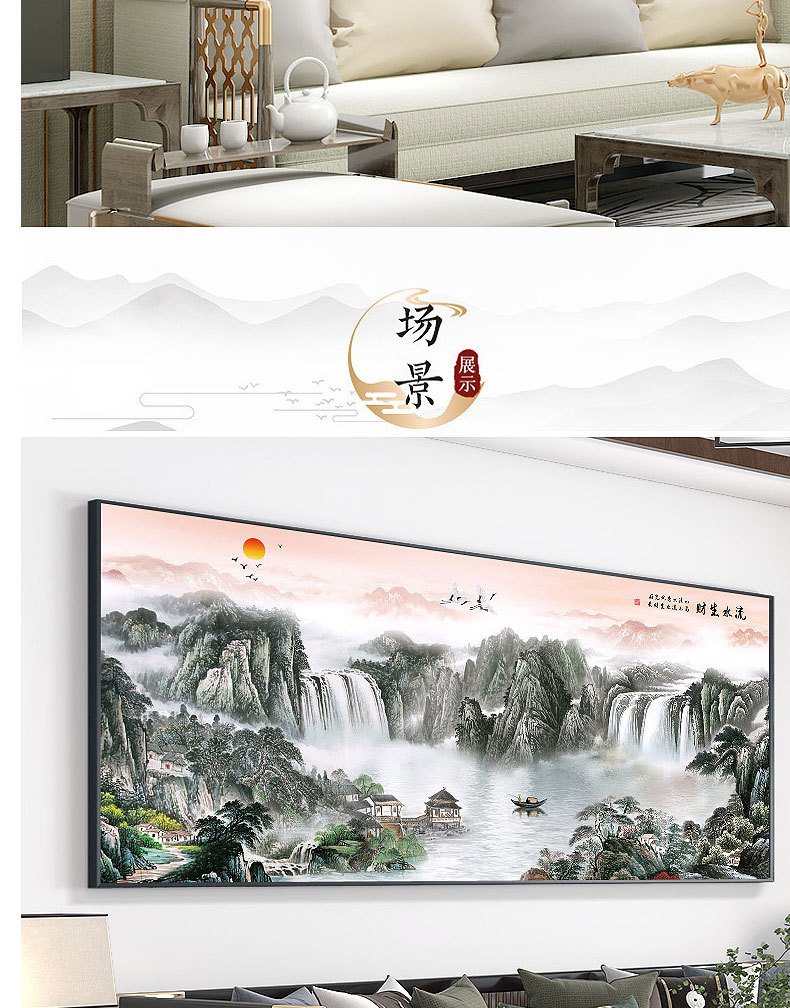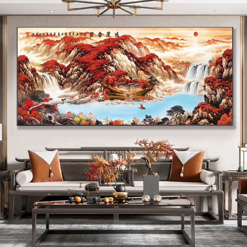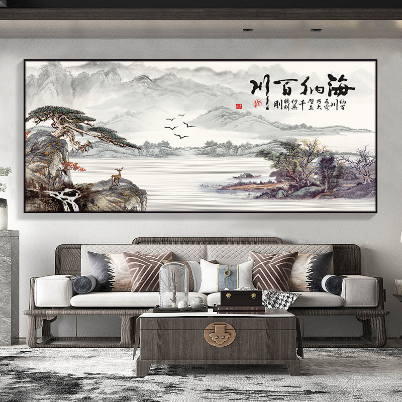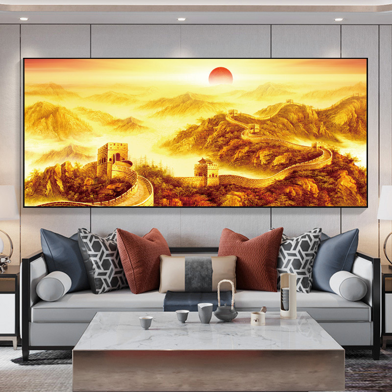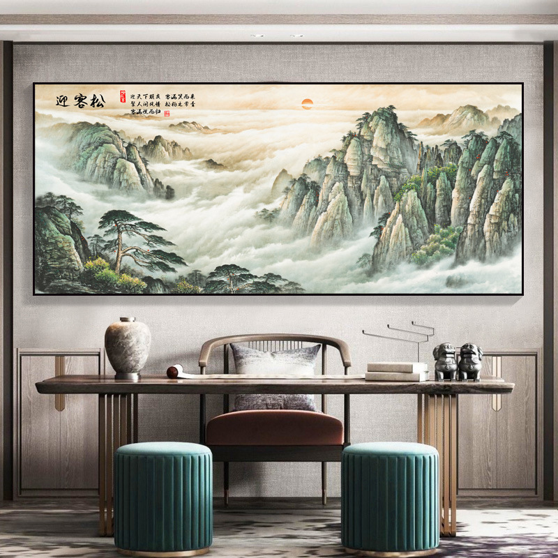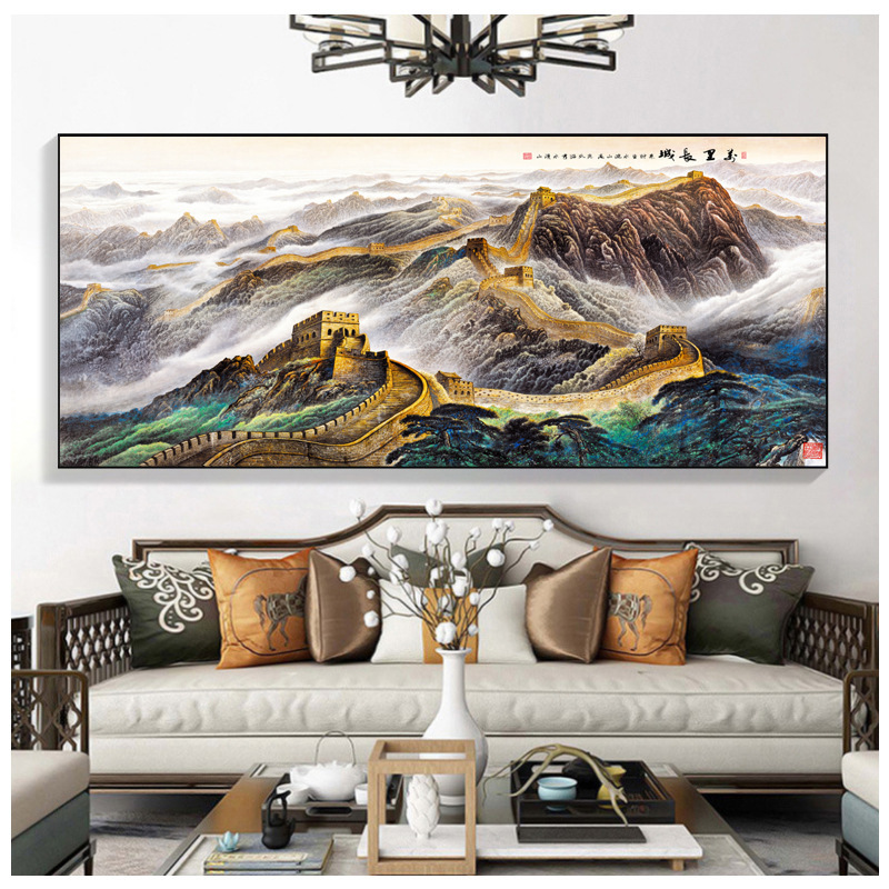 客厅挂画高级感沙发背景墙装饰画长城山水画背有靠山画芯大尺寸画