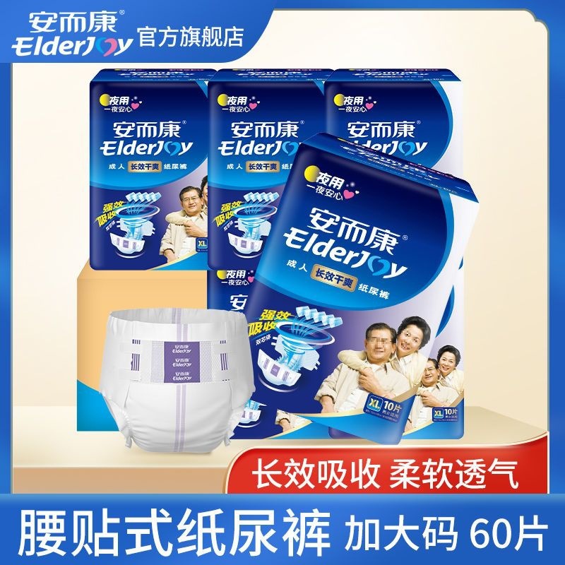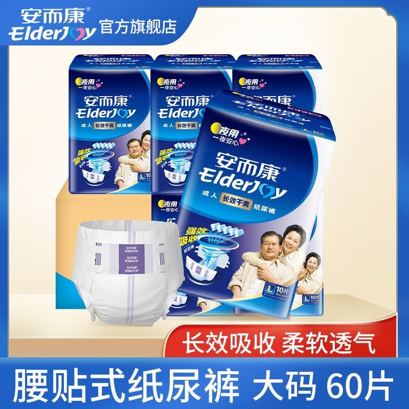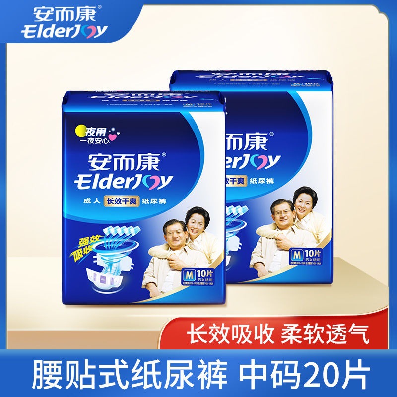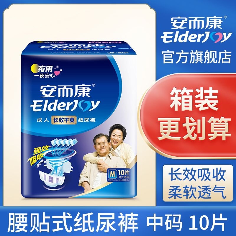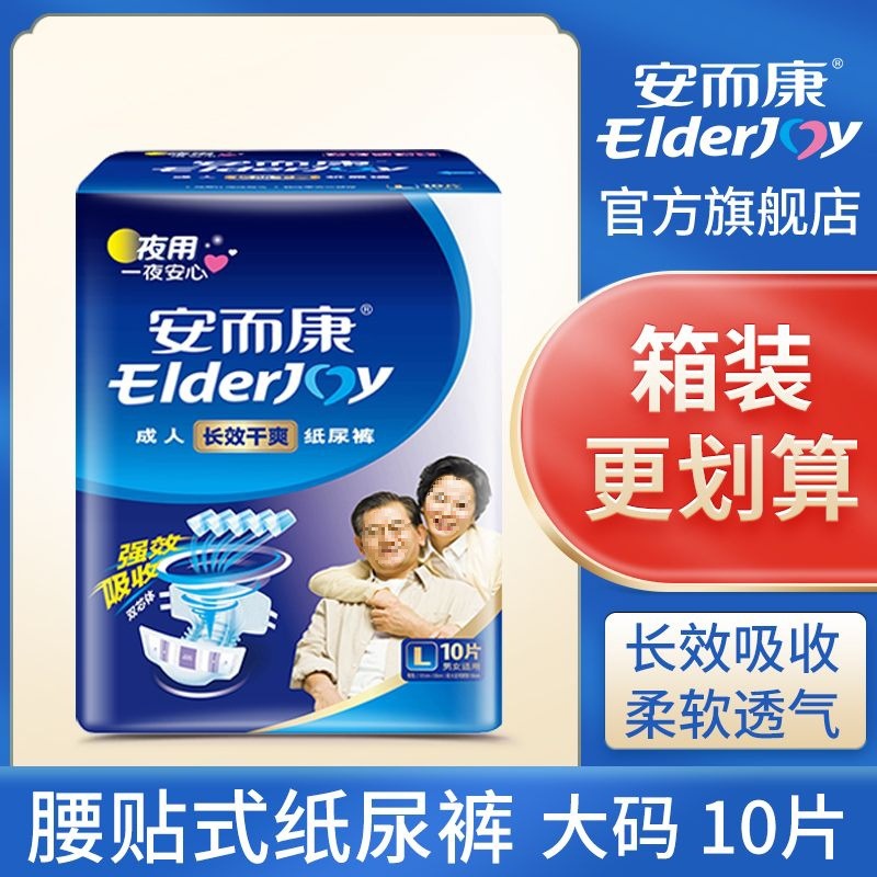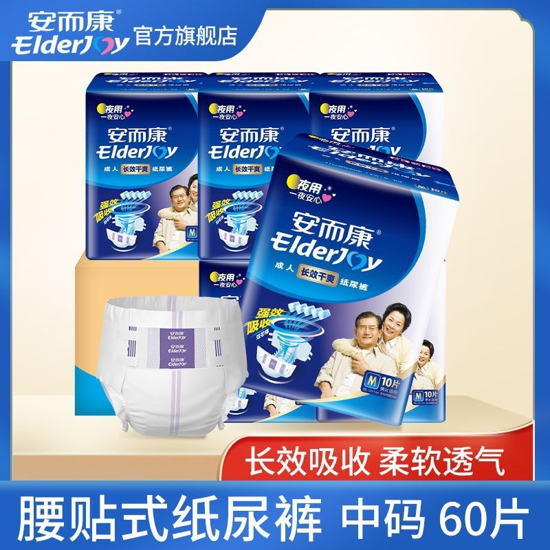 安而康成人纸尿裤夜用干爽老年人老人用尿不湿M/L/XL腰贴加厚