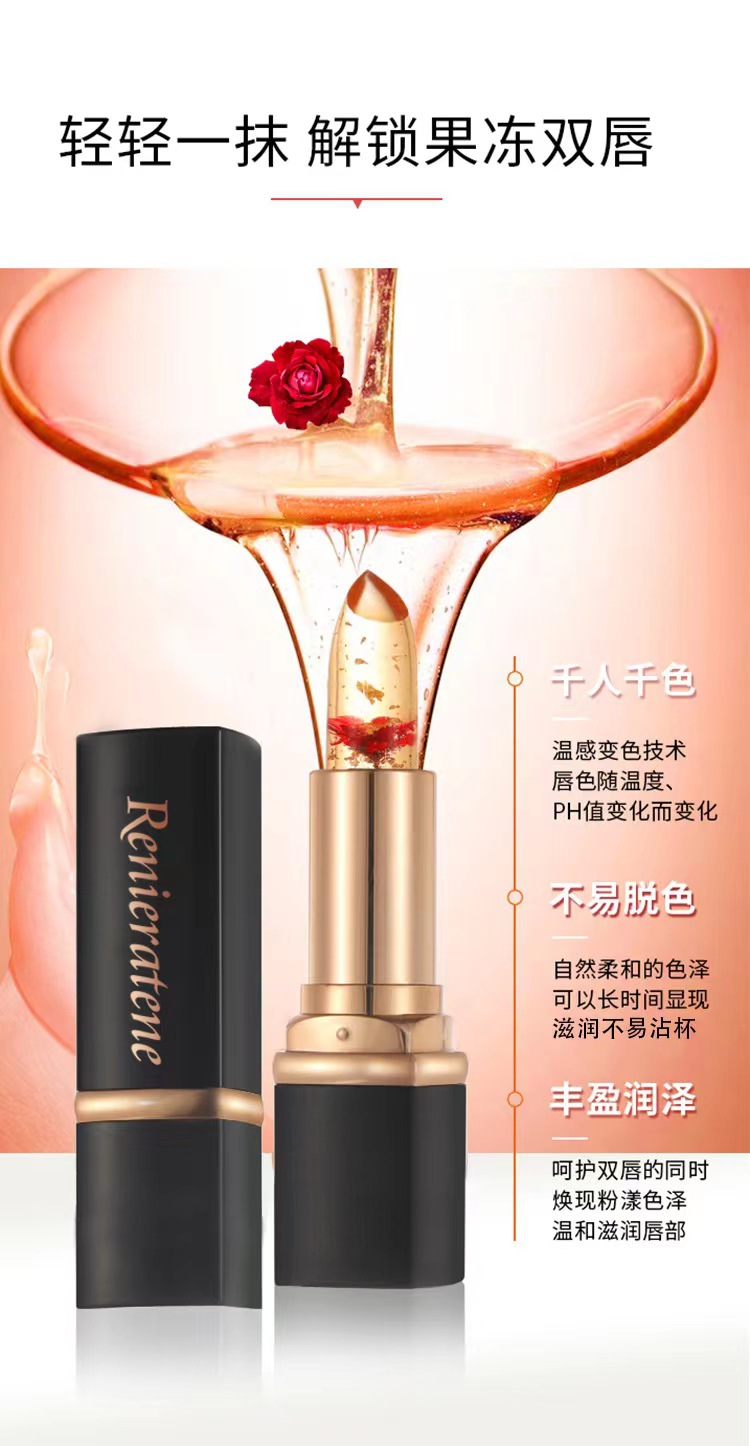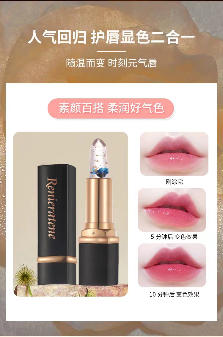 果冻鲜花变色口红女滋润保湿持久不沾杯不掉色温变润唇膏孕妇可用