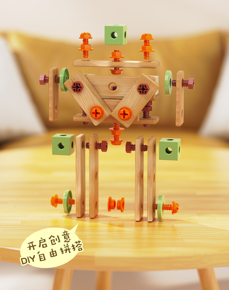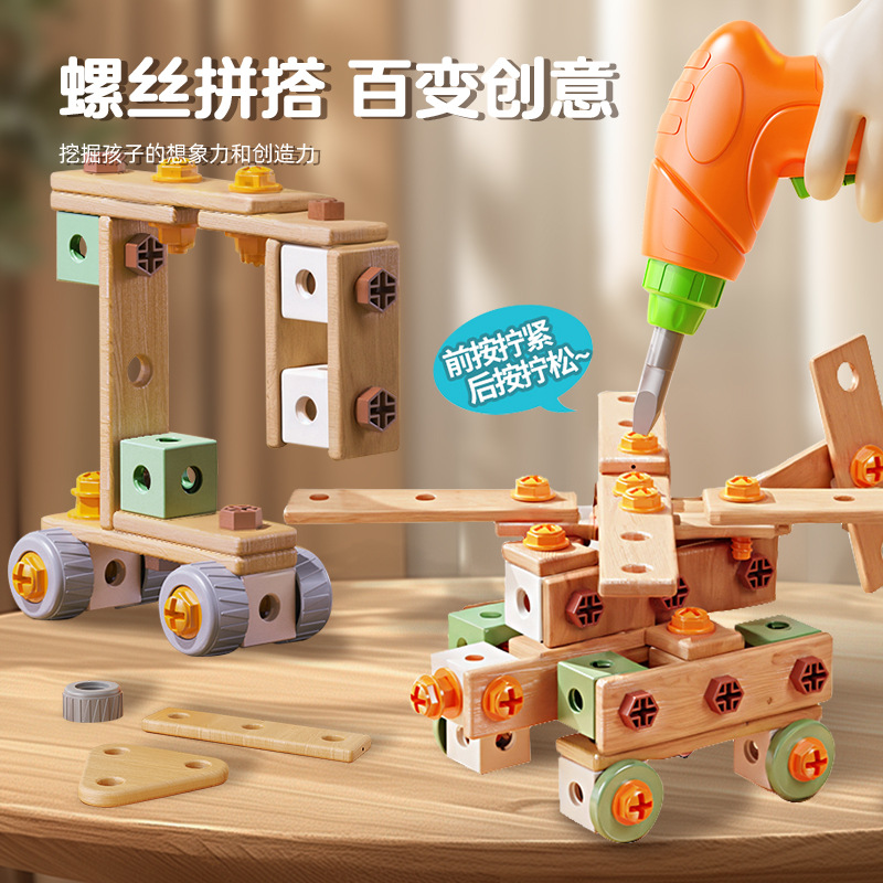儿童手动拆卸工具箱螺母DIY立体拼盘拧螺丝拼装积木玩具早教