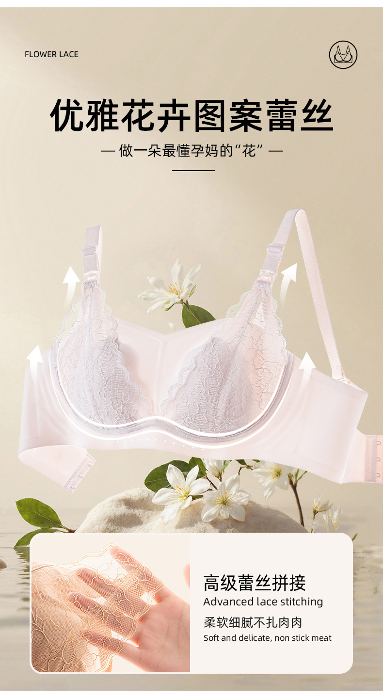 山茶花精油A类上开扣哺乳文胸无钢圈聚拢孕哺期孕妇内衣舒适薄款