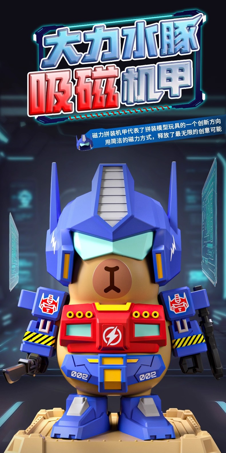 卡皮巴拉高达机甲磁吸变形机器人水豚公仔手办小玩具