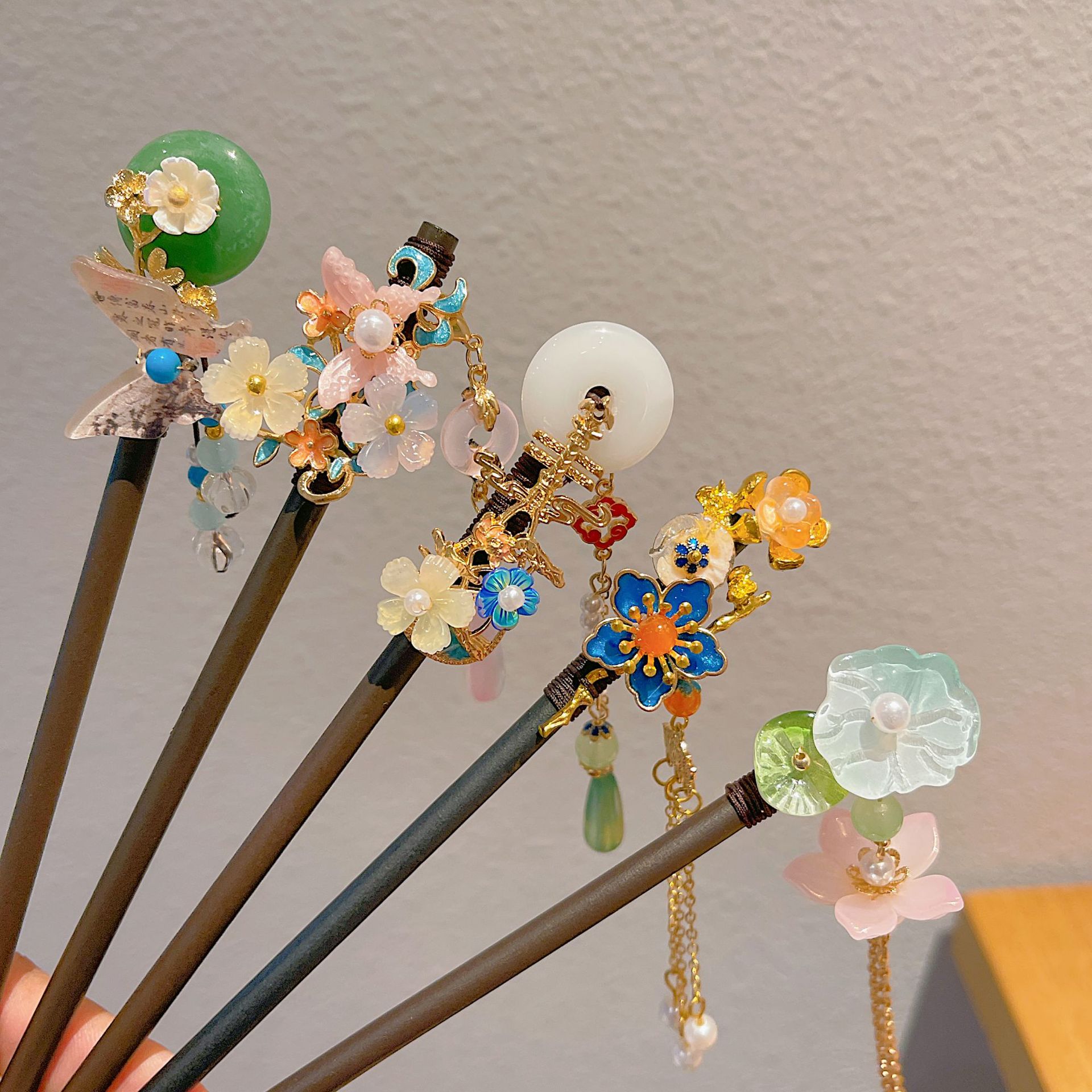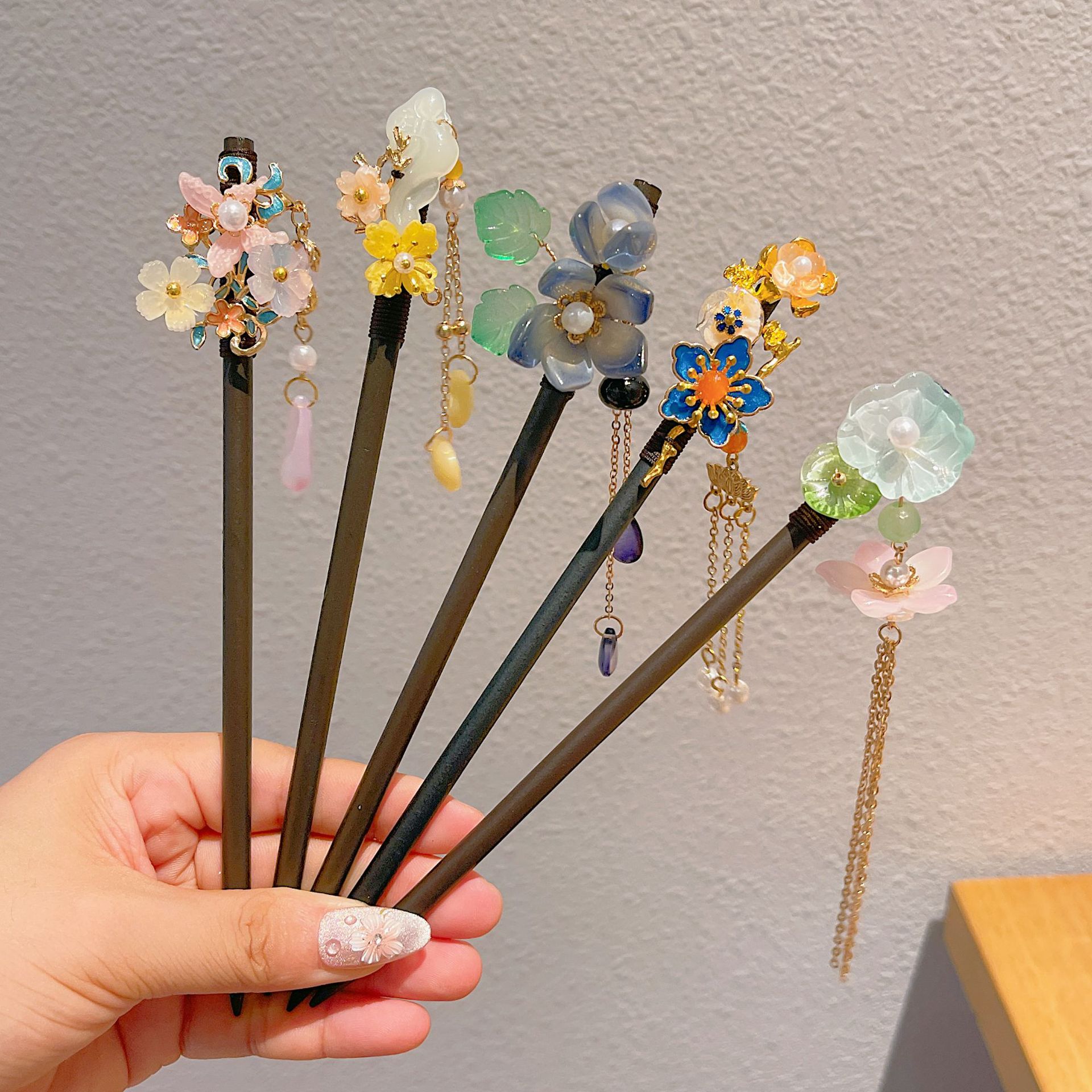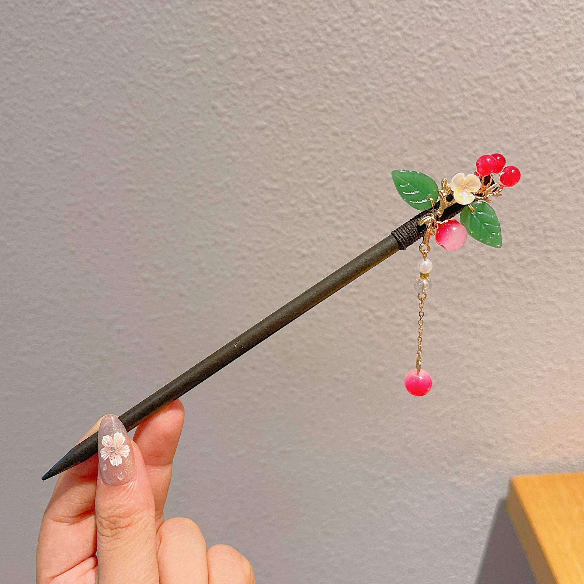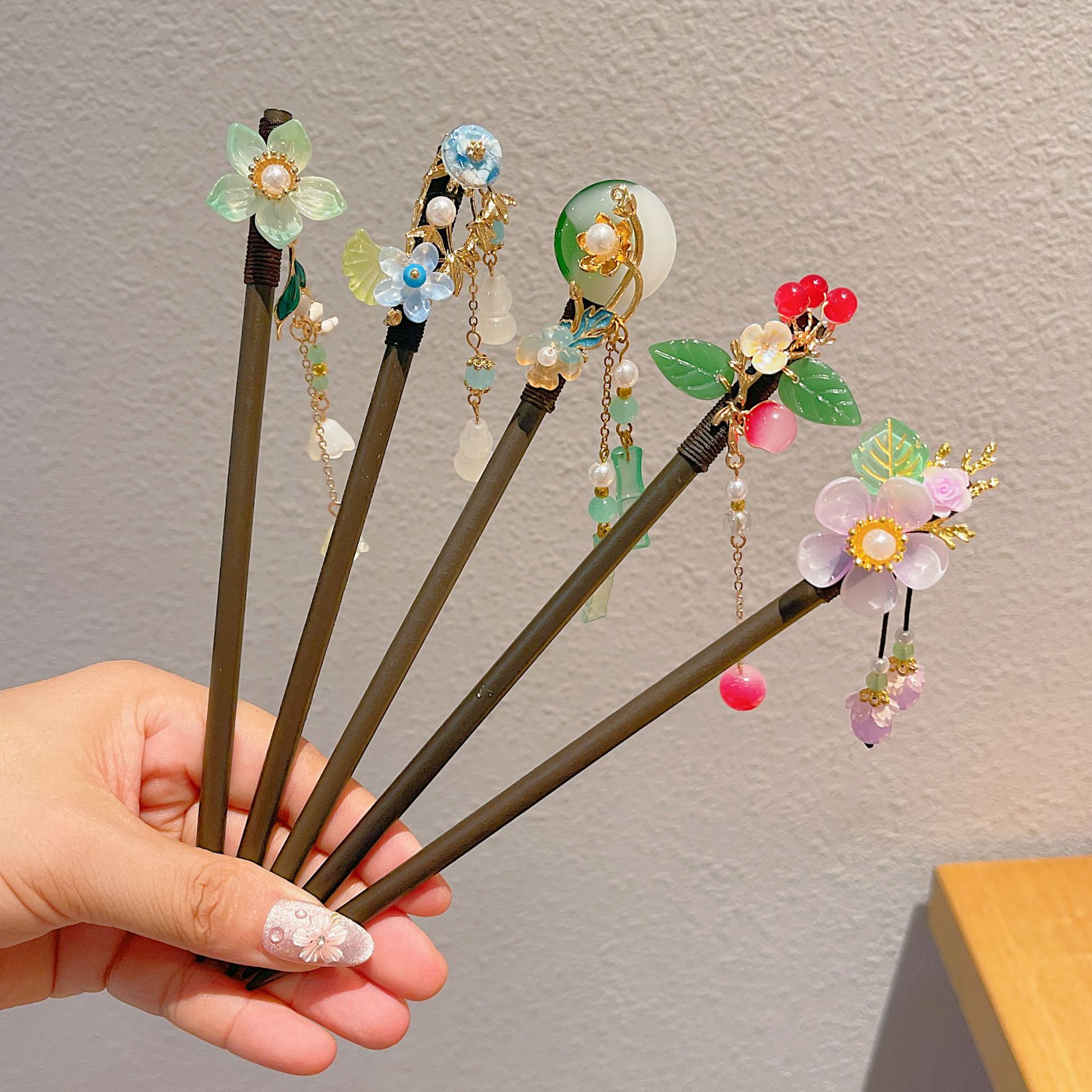 发簪古风发饰木质簪子步摇流苏汉服头饰女孩古装发钗配饰国风爆款