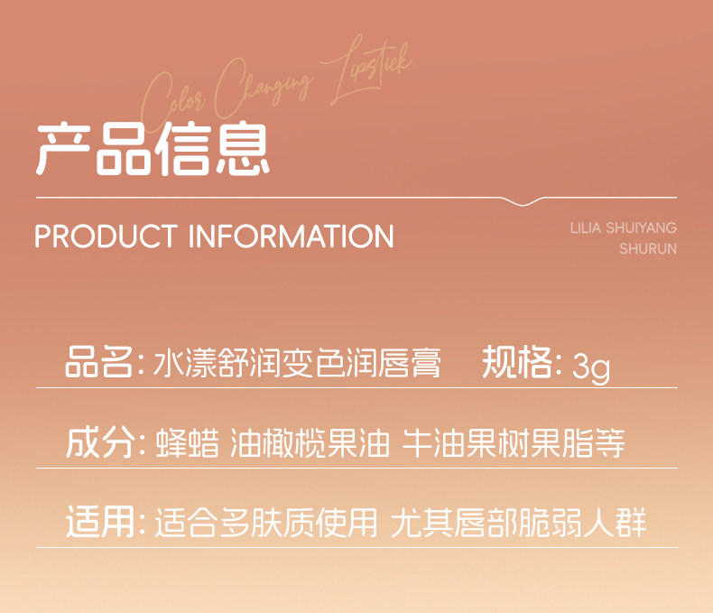 【唇膏气垫组合】LILIA水漾舒润变色唇膏*1+自然色气垫*1