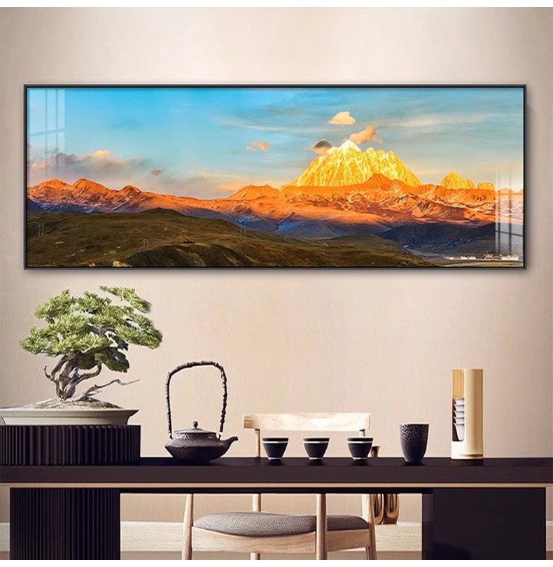 日照金山客厅装饰画背有靠山沙发背景墙壁画高级感山水风景挂画