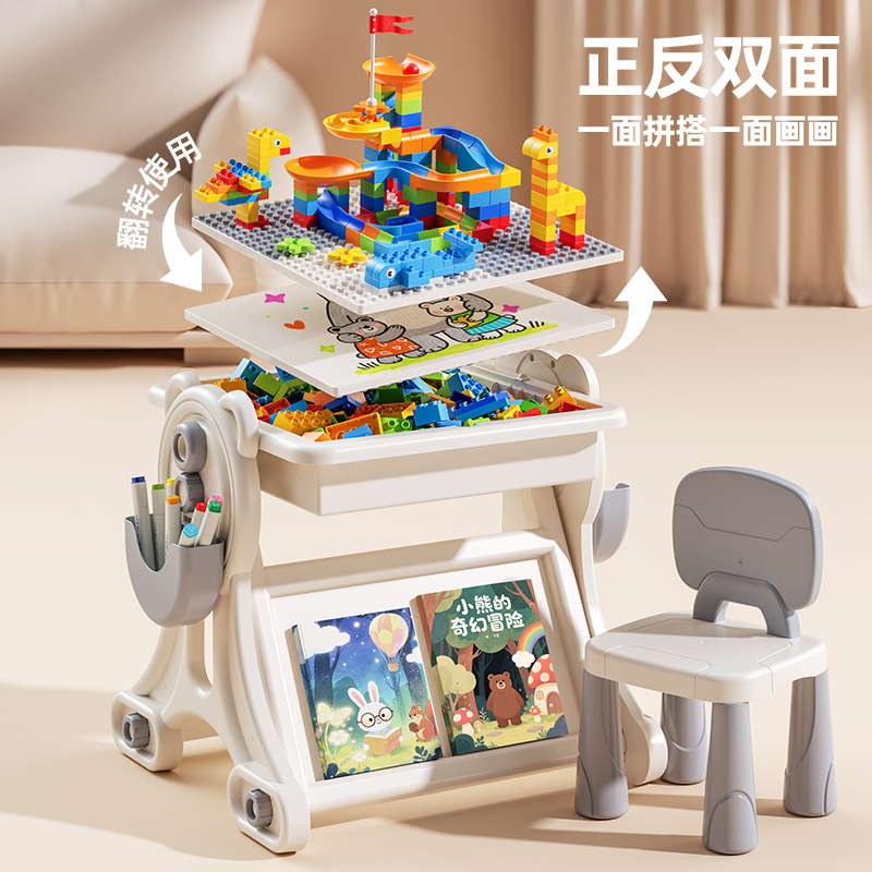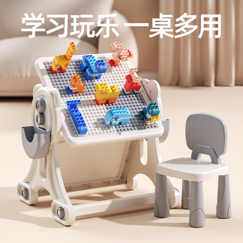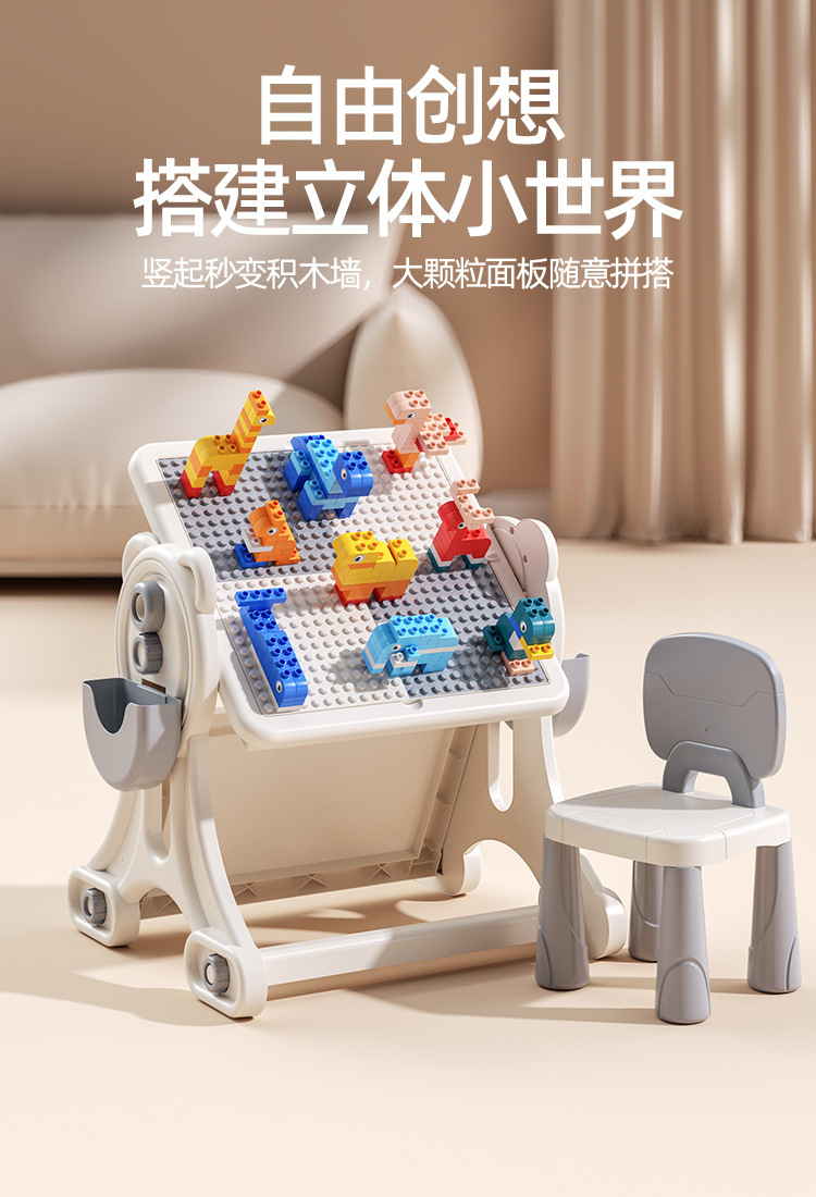儿童幼儿园卡通积木椅兼容乐高积木桌小凳子拼插装玩具学习桌椅子