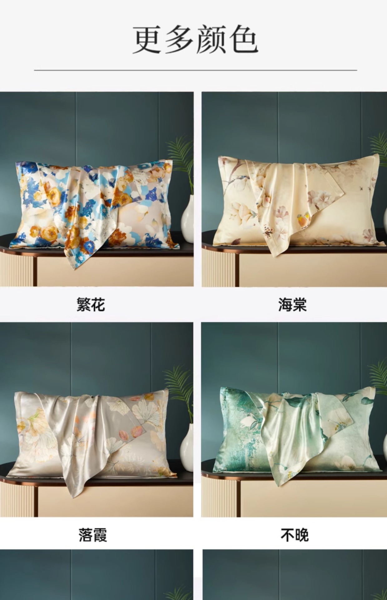 40姆米6A级真丝数码印花枕头套100%桑蚕丝48X74cm单人丝绸枕芯套