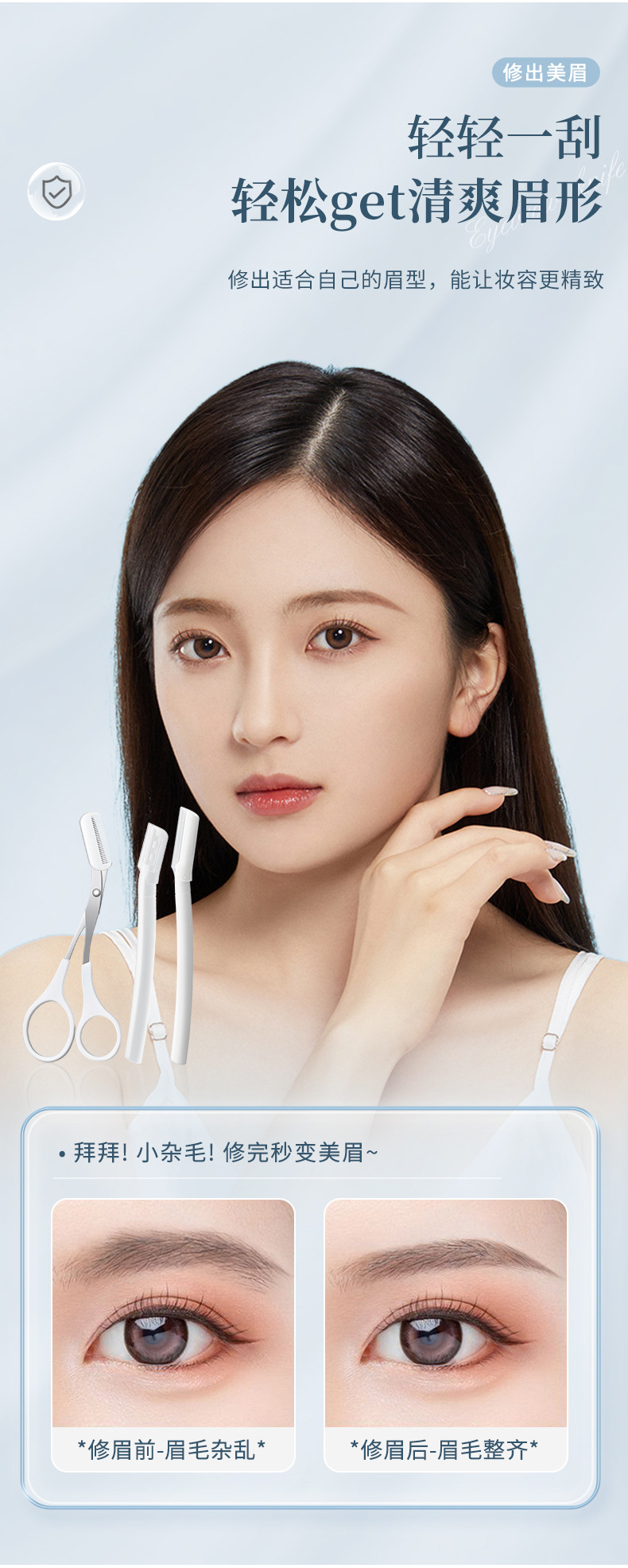 女士安全型微距修眉刀套装不锈钢刀片刮毛刀眉剪修眉美妆工具