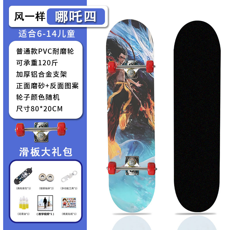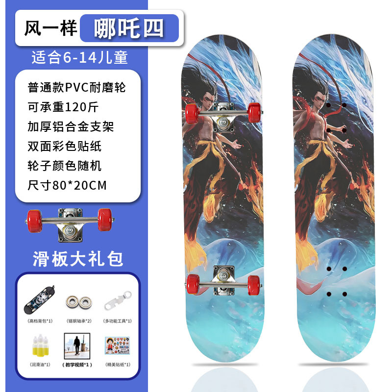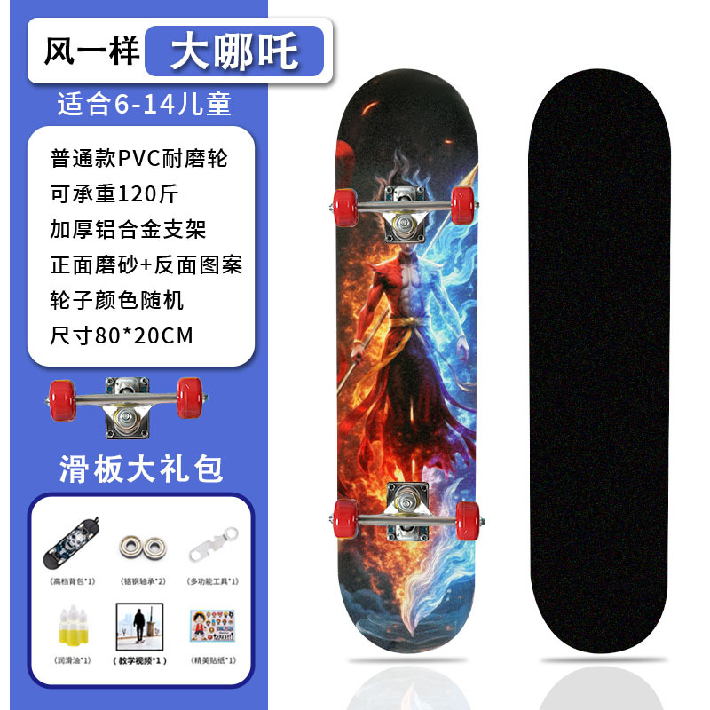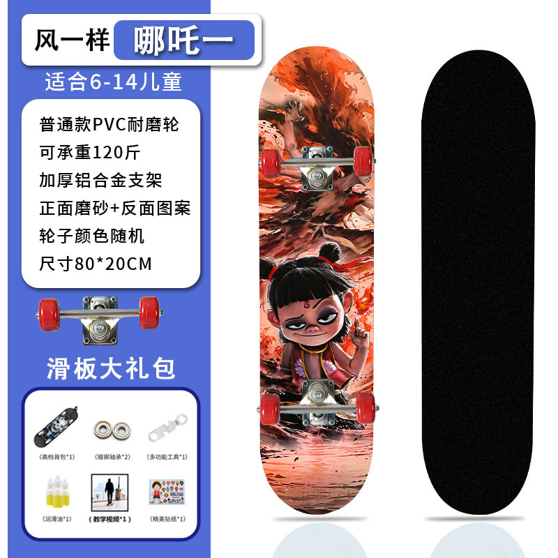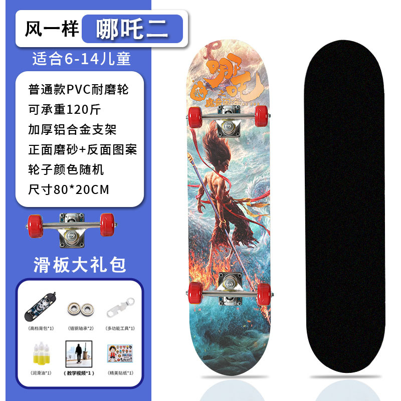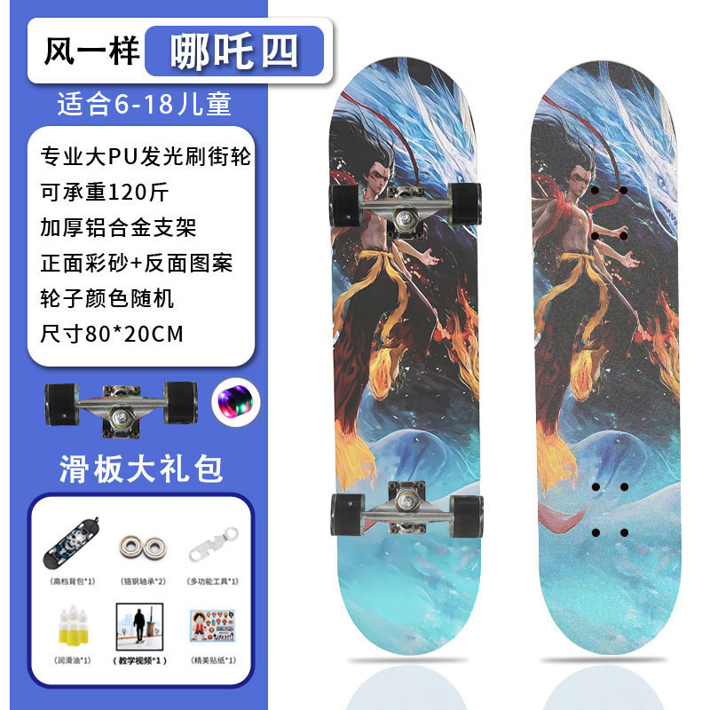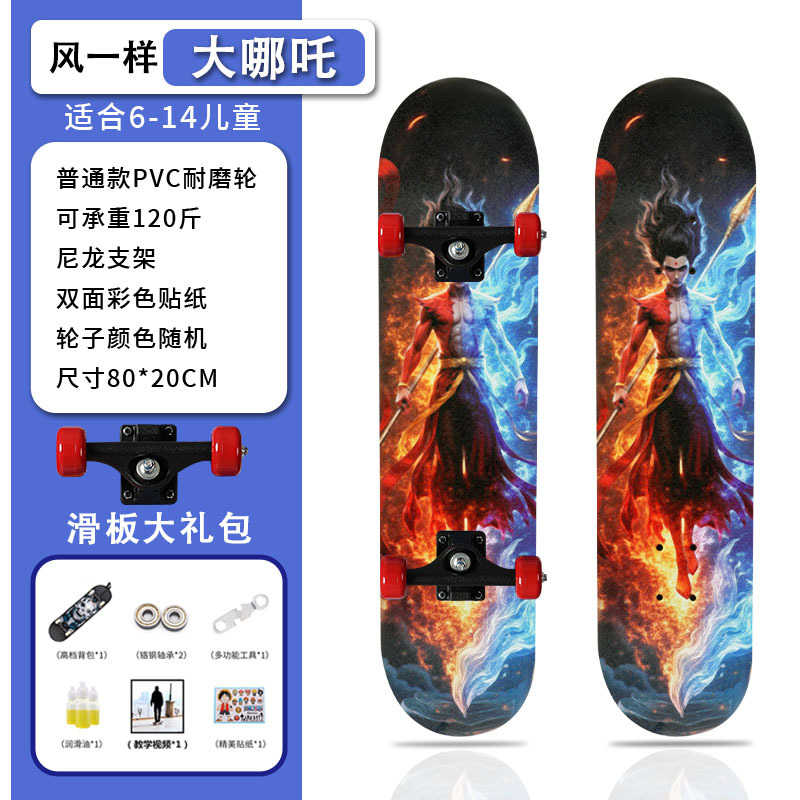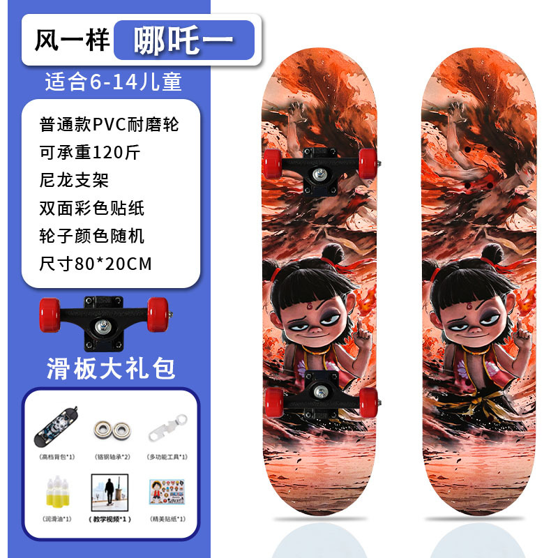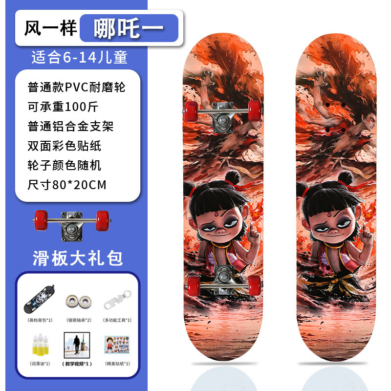 滑板创意哪吒2卡通发光轮平板滑板车青少年儿童通用初学者滑板
