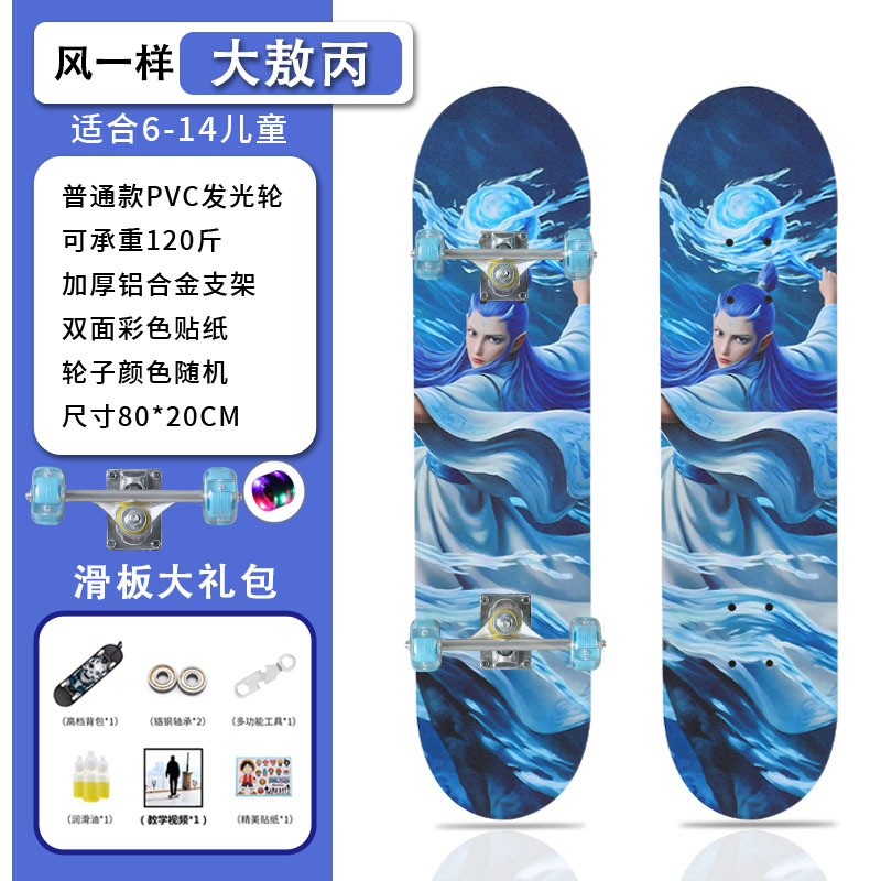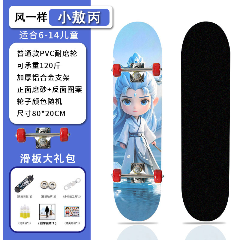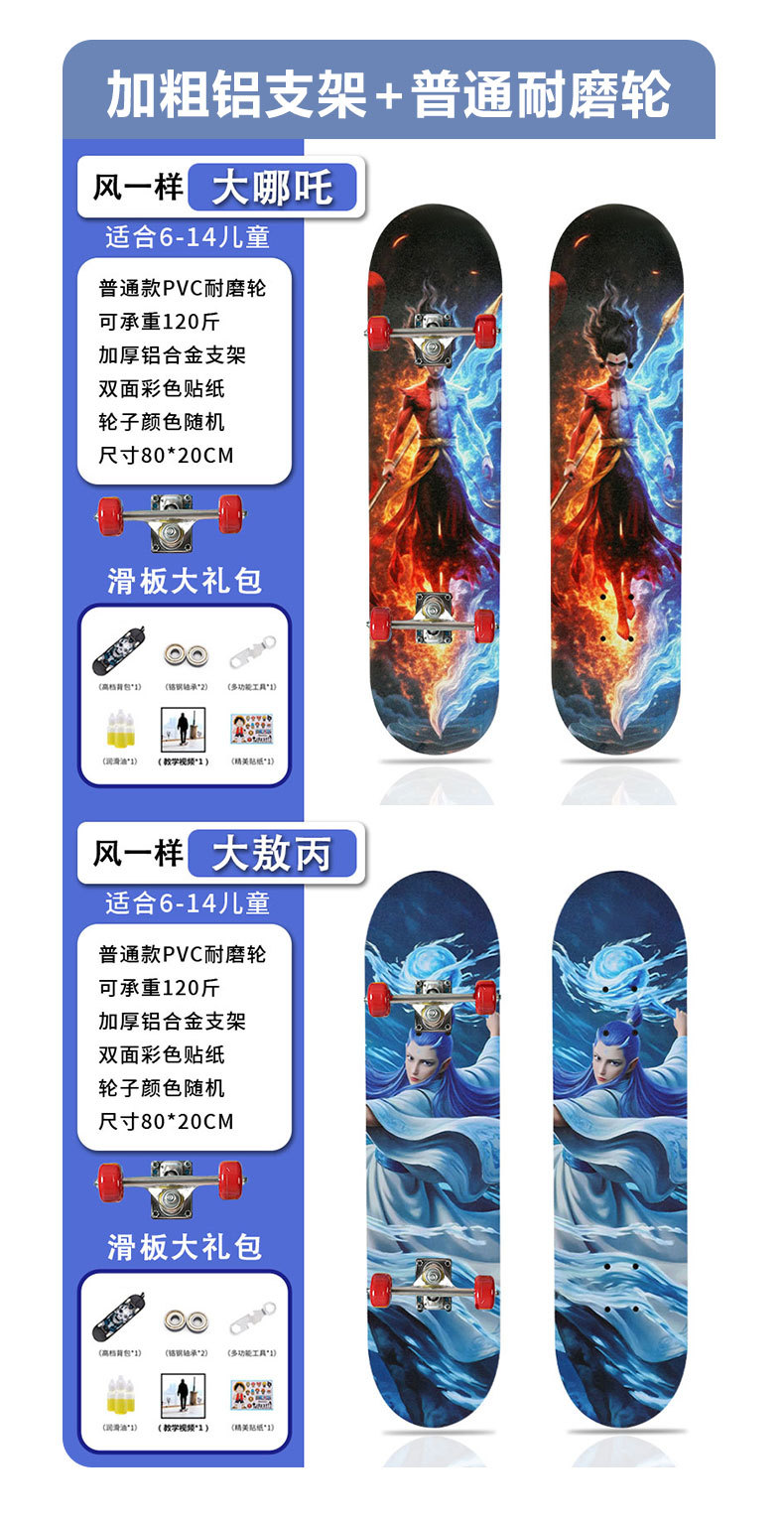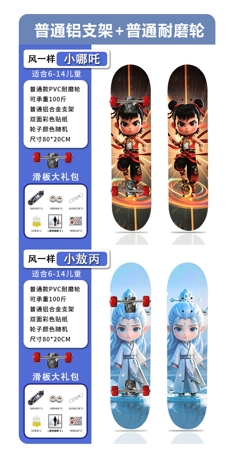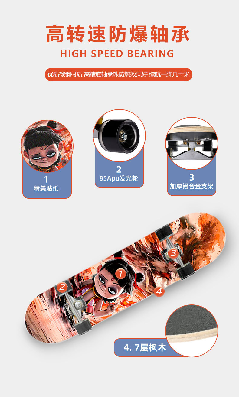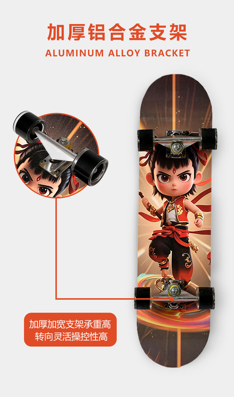 滑板创意哪吒2卡通发光轮平板滑板车青少年儿童通用初学者滑板