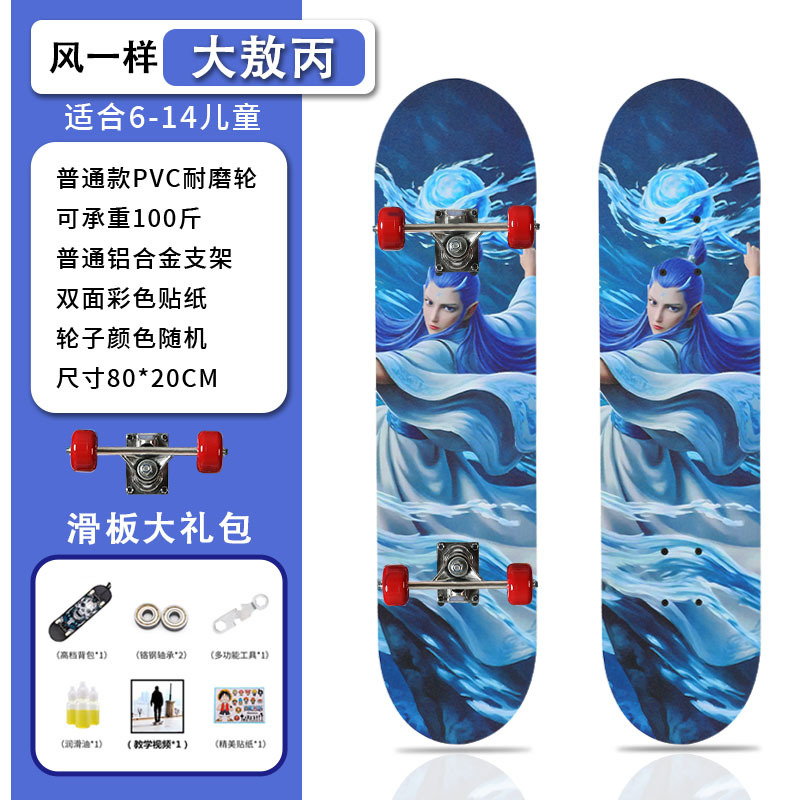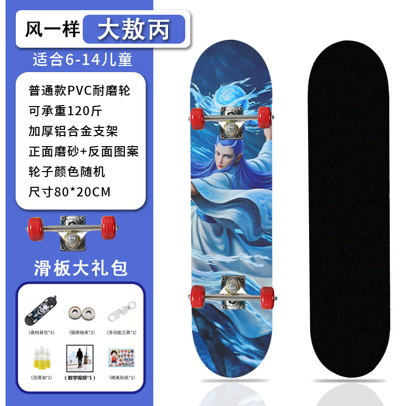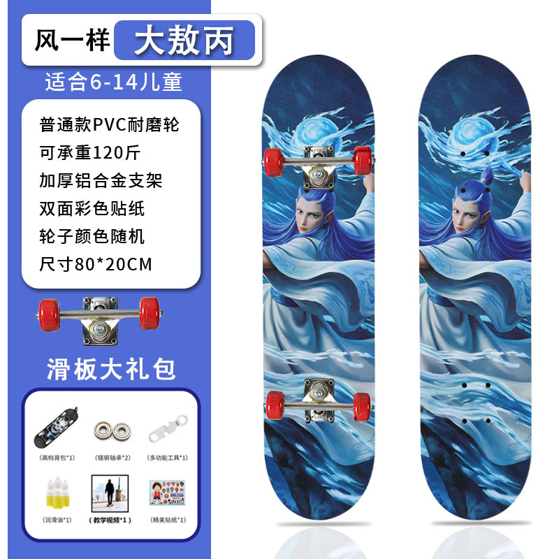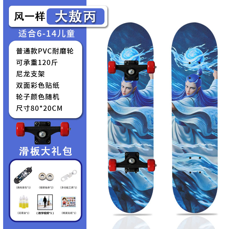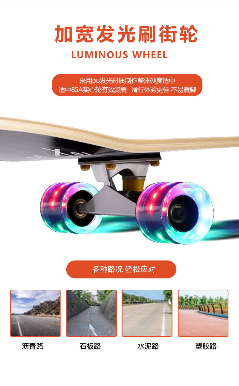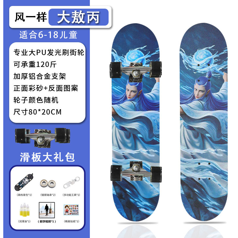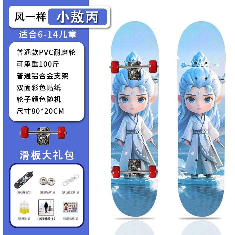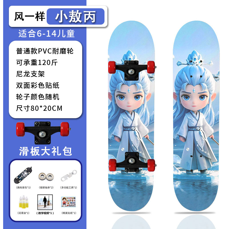 滑板创意哪吒2卡通发光轮平板滑板车青少年儿童通用初学者滑板