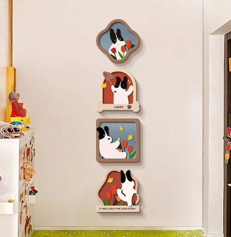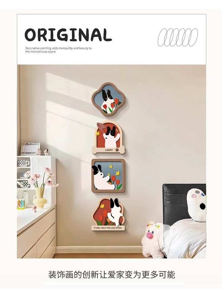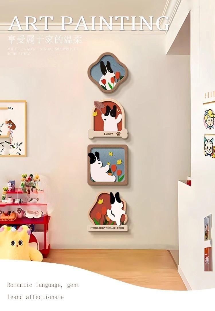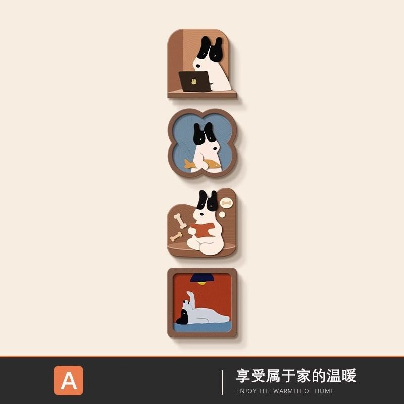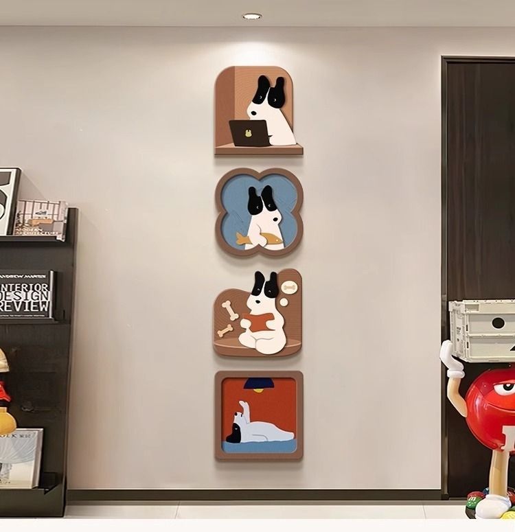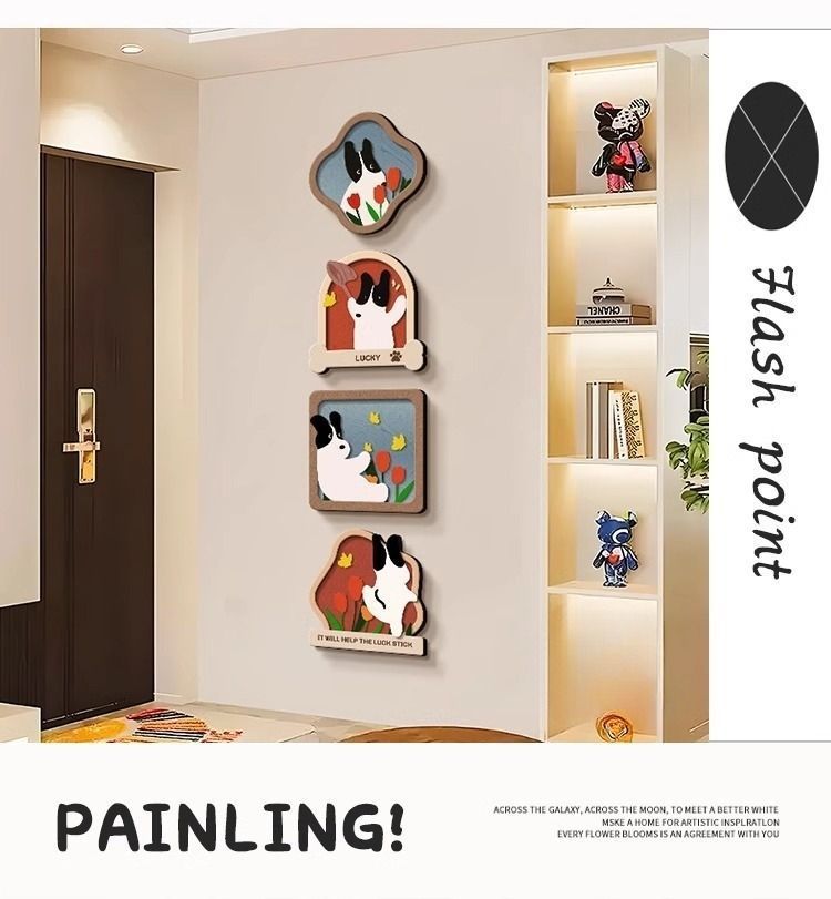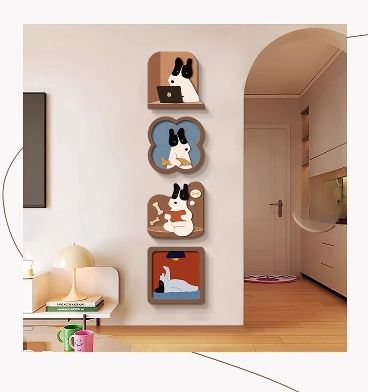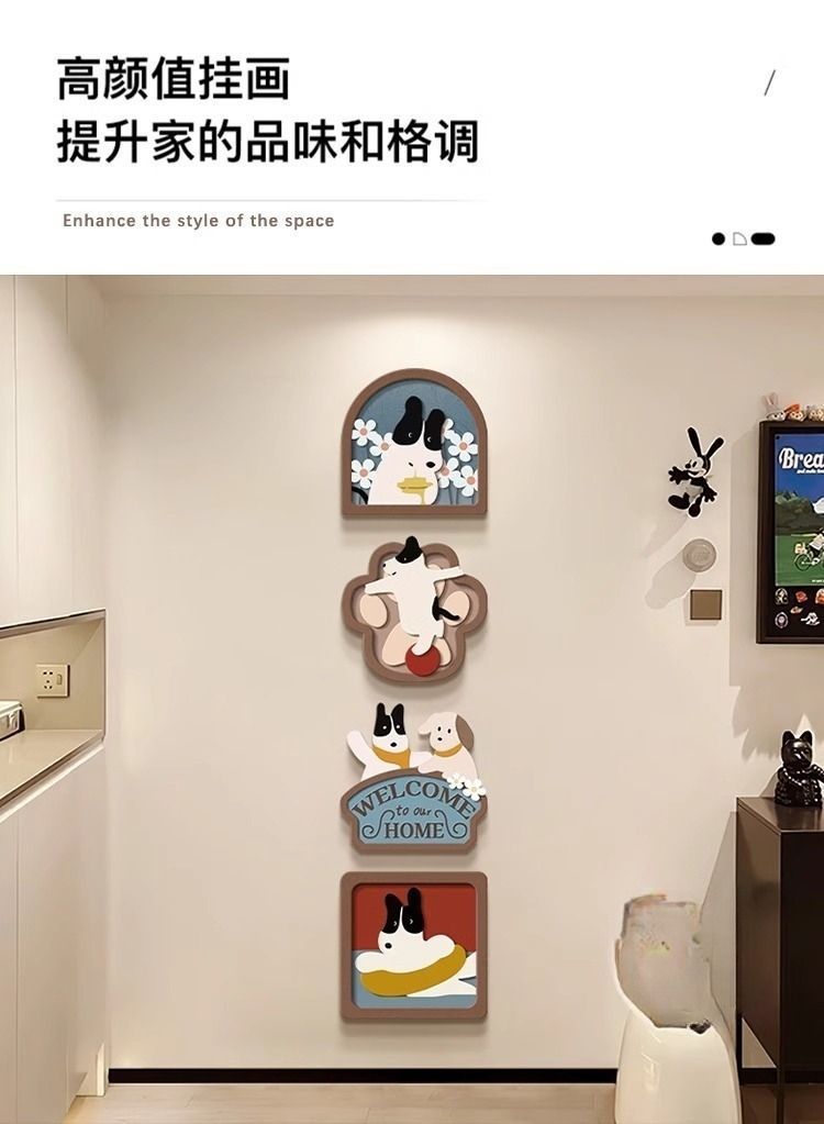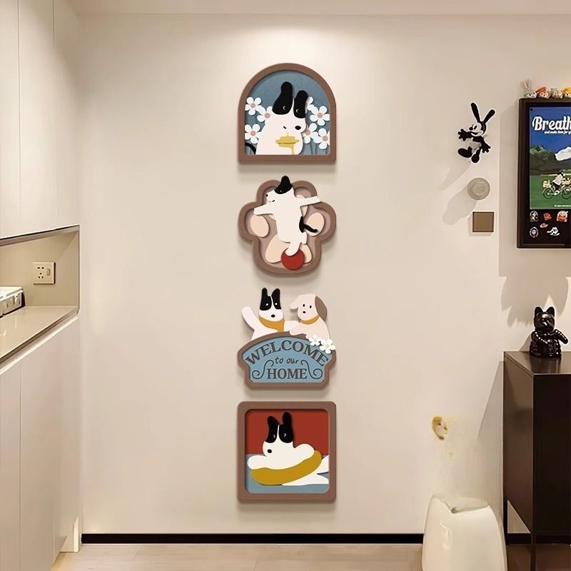 玄关装饰画趣味卡通小狗客厅电视背景墙挂画入户正对门壁画