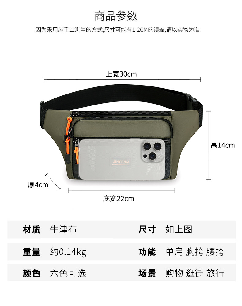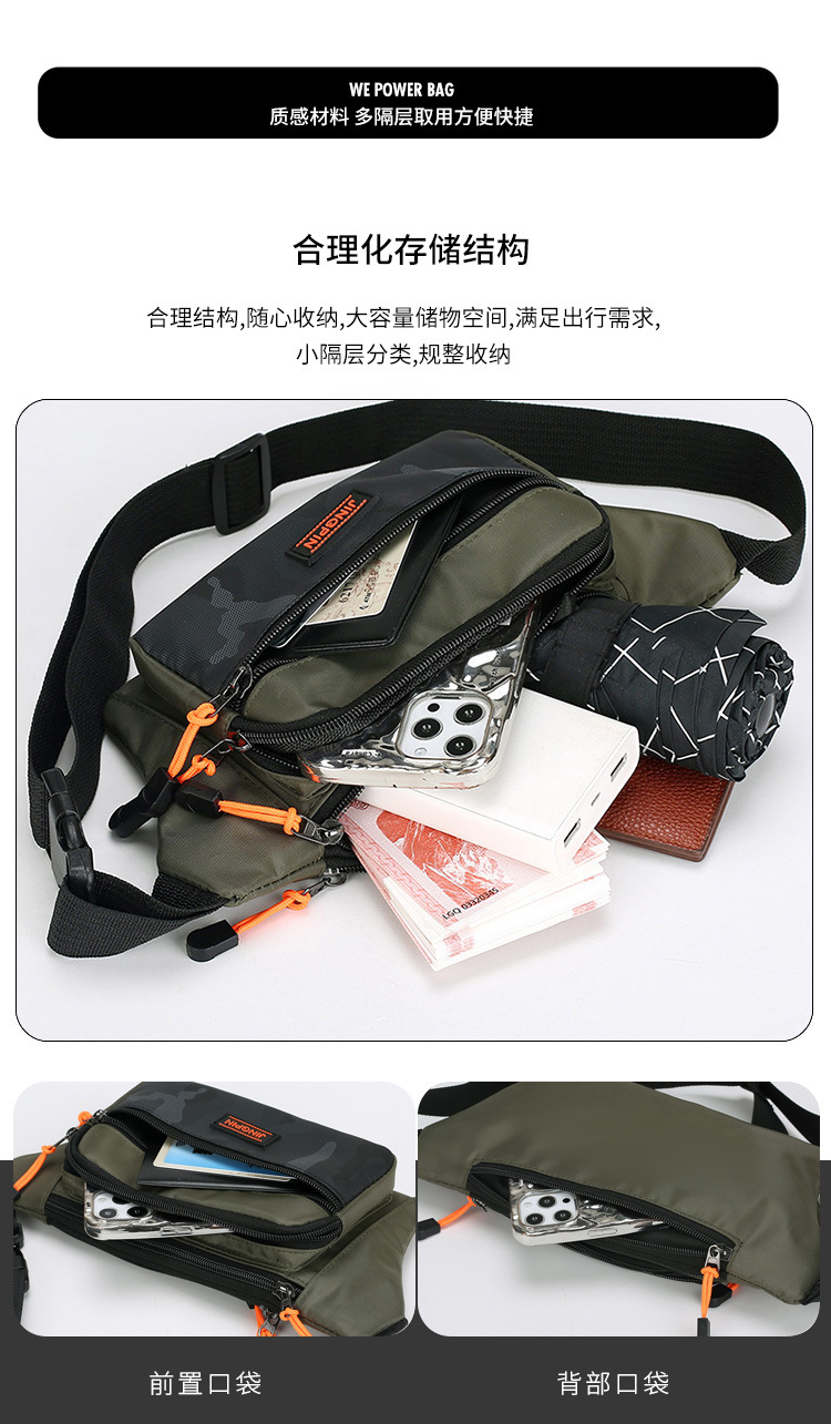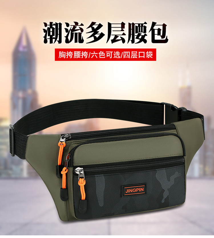 男士新款腰包多隔层手机包时尚休闲大容量防泼水工地干活零钱男包